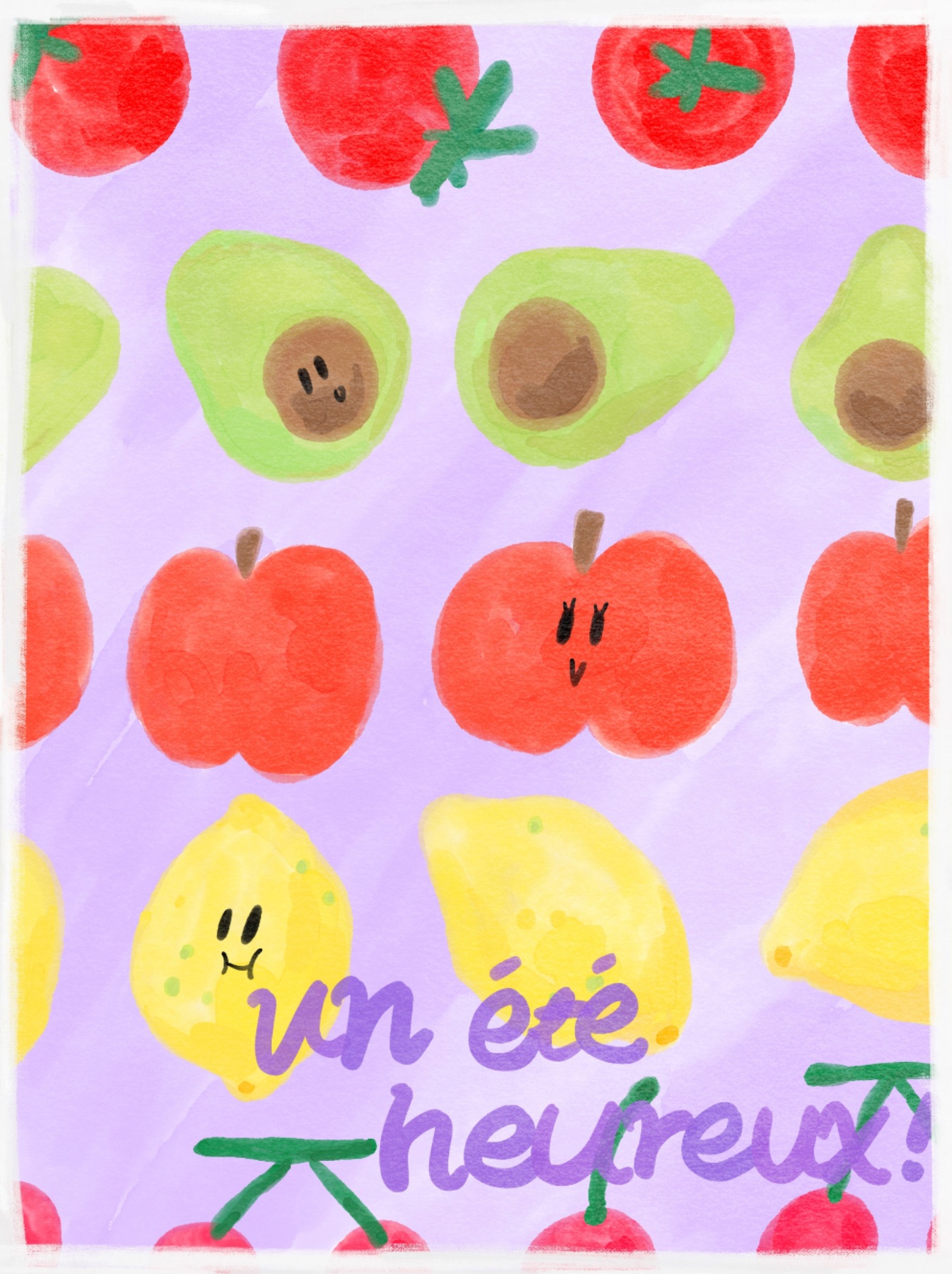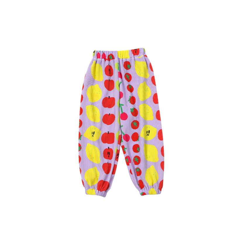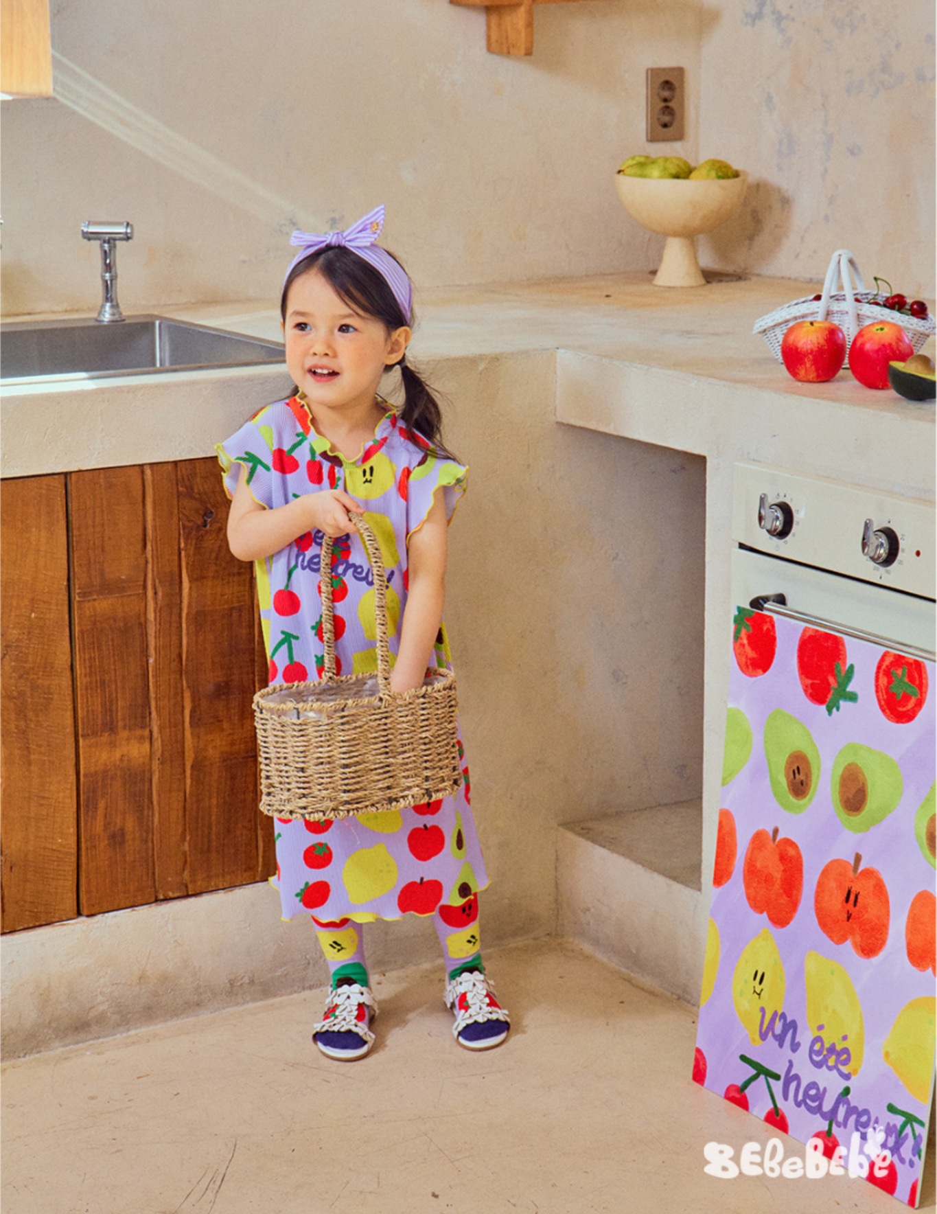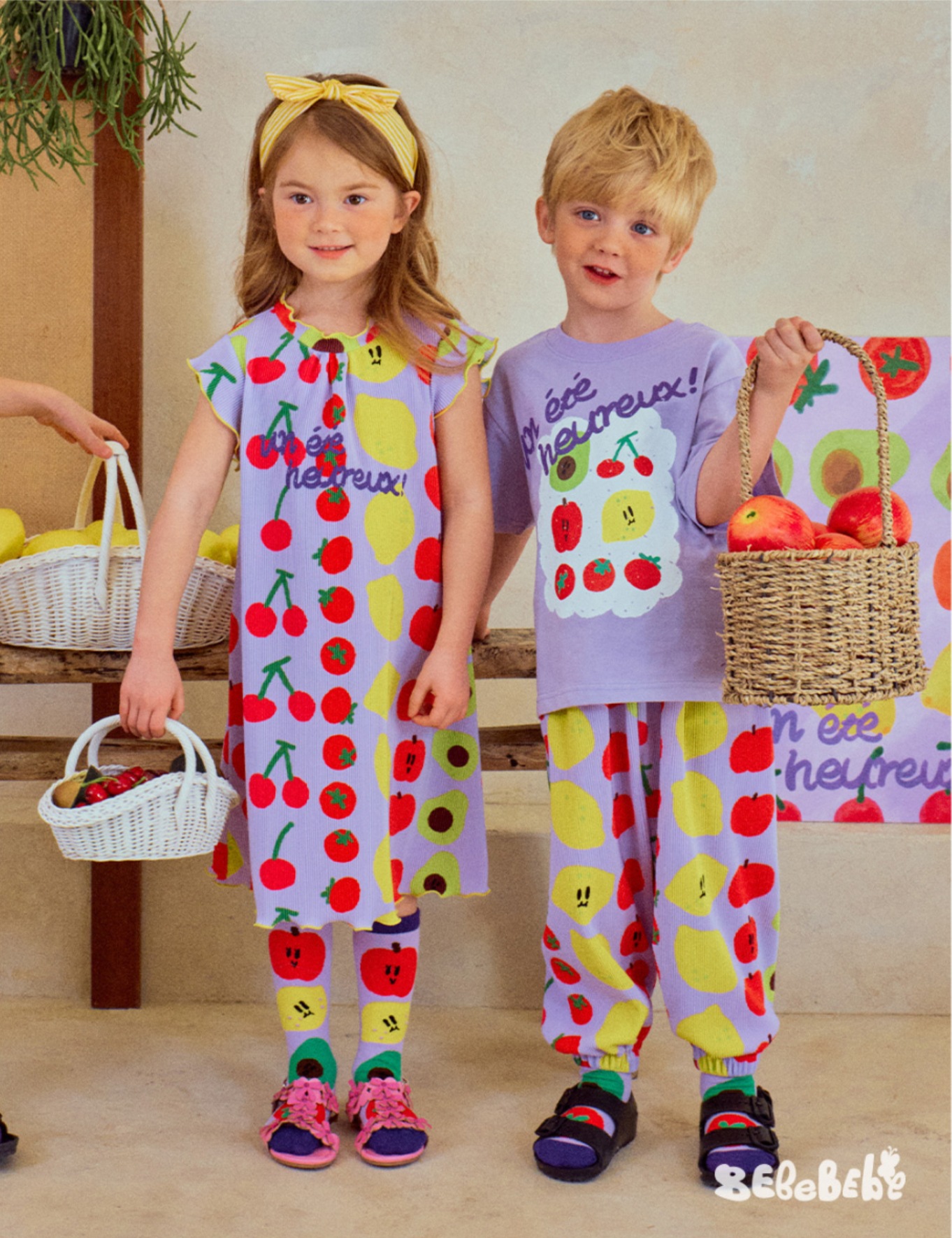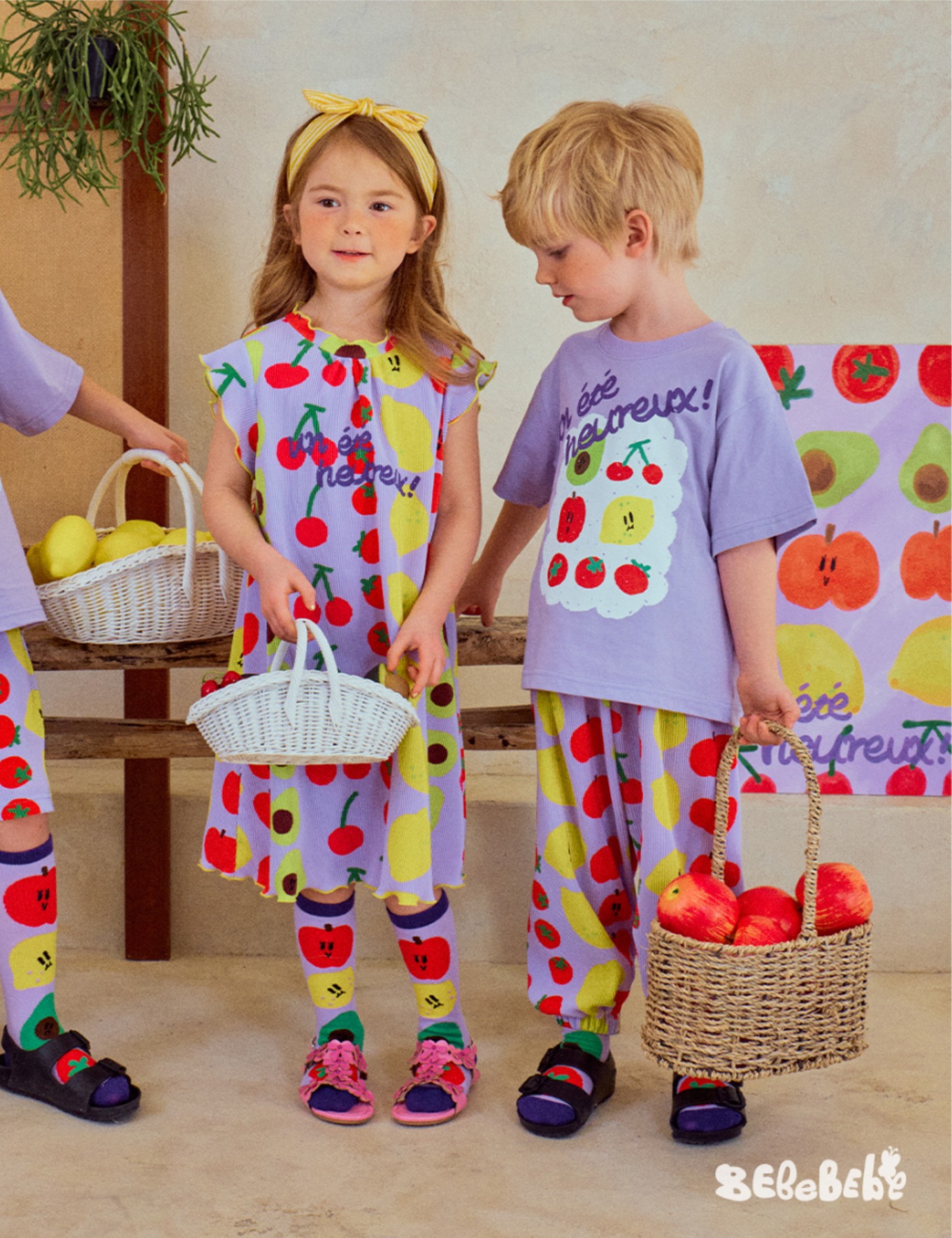 • BE 보라색 과일 프린트 티셔츠 + 바지 정장