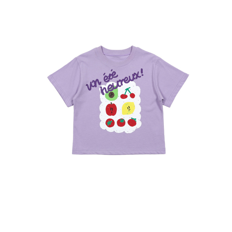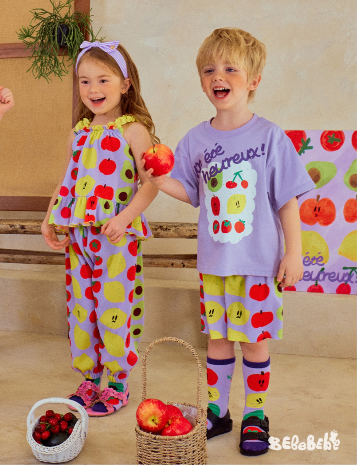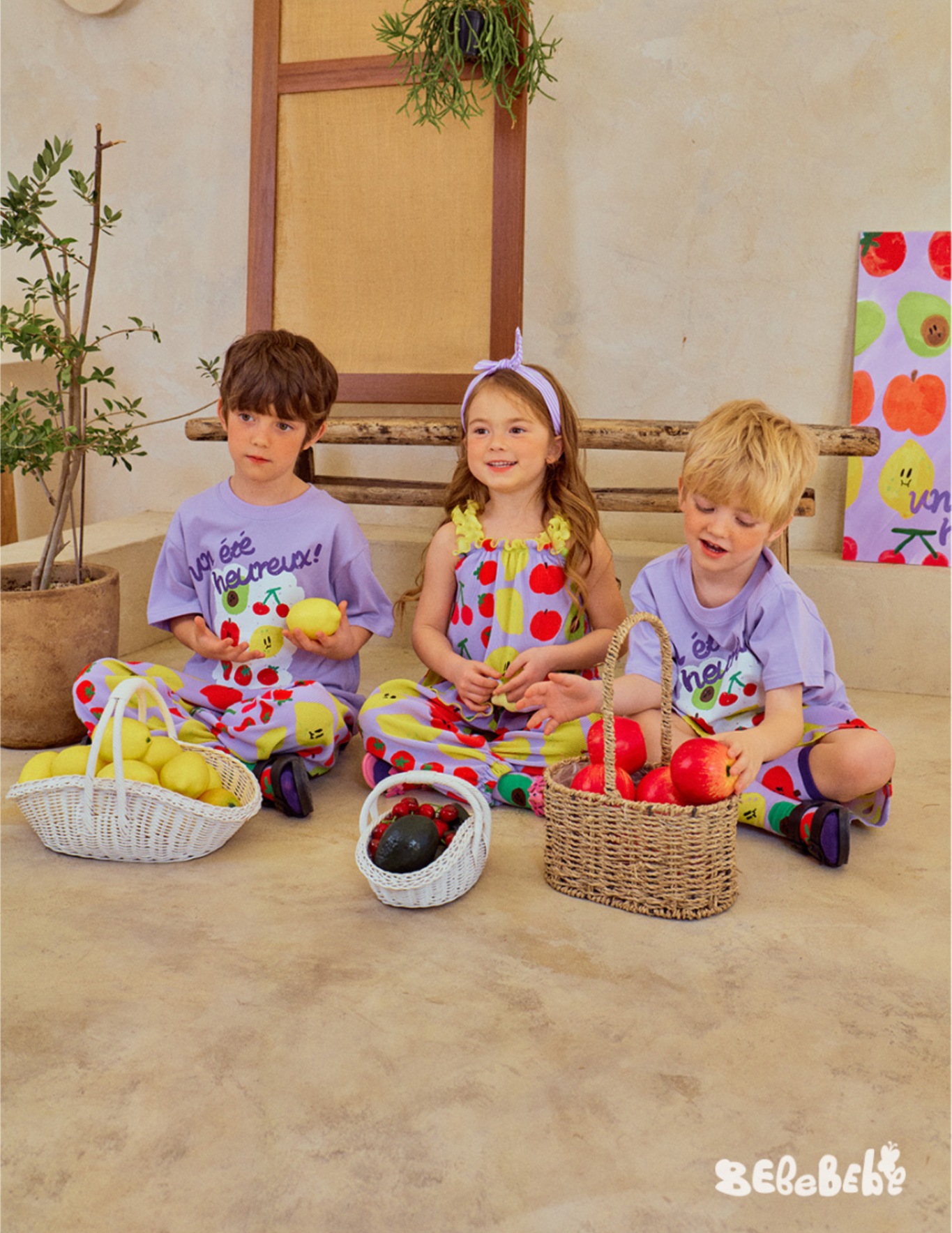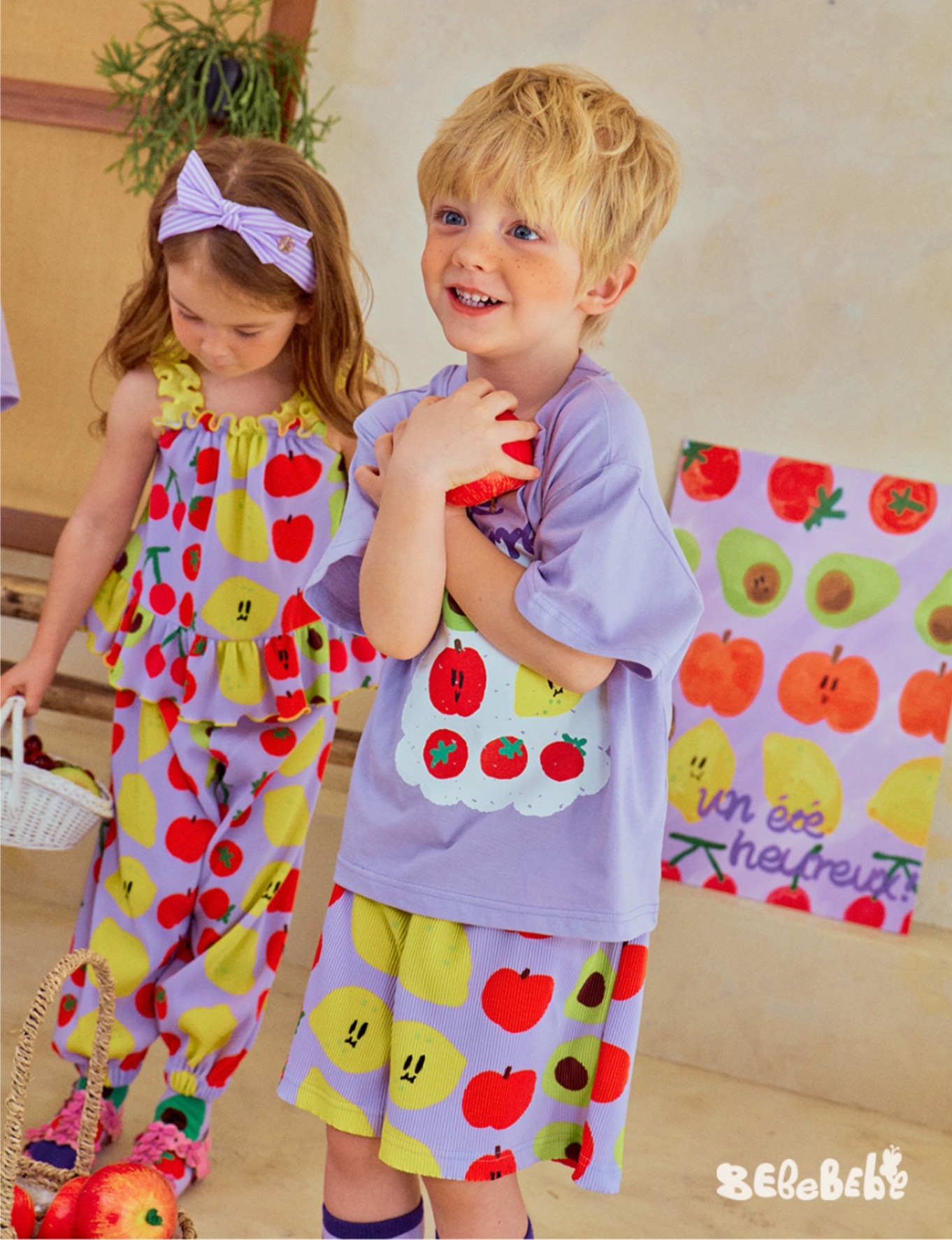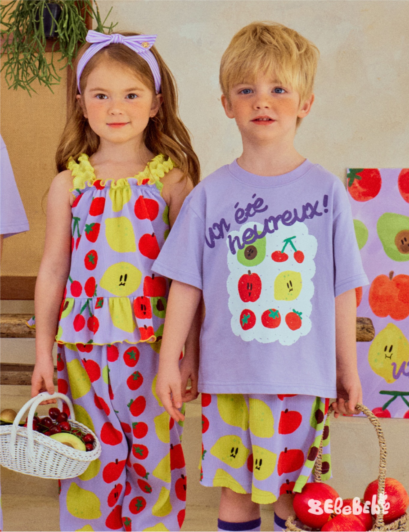 • BE 보라색 과일 프린트 티셔츠 + 반바지 세트