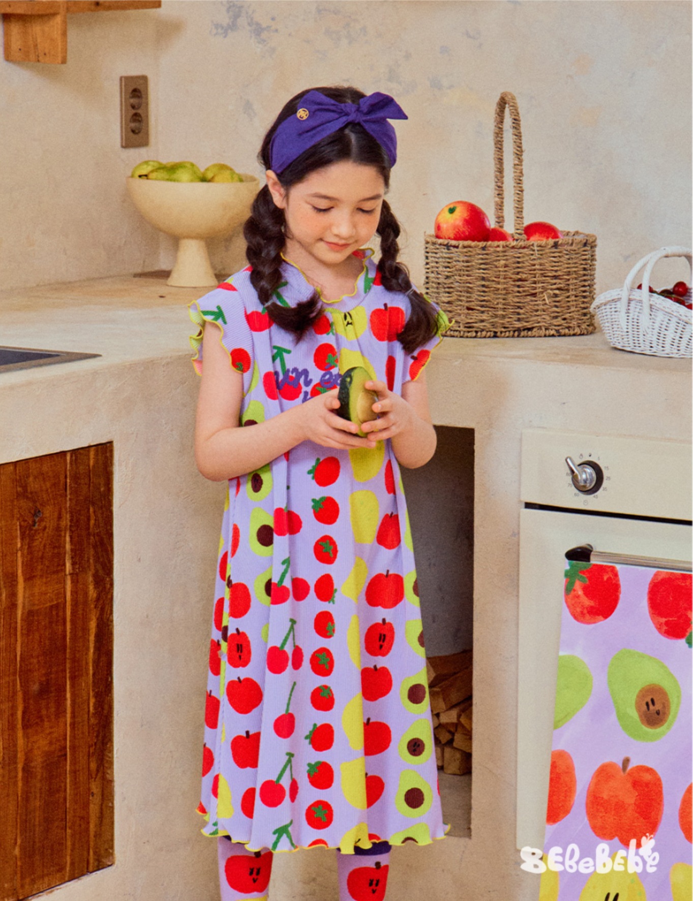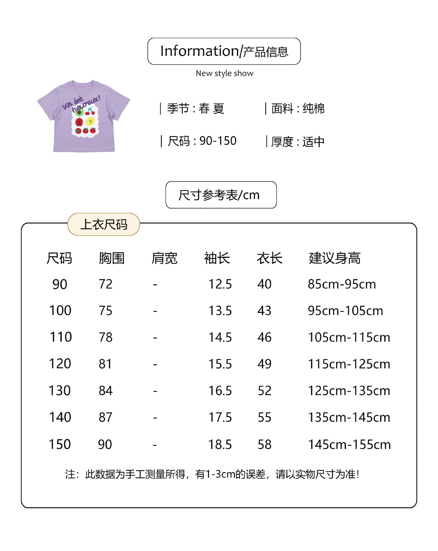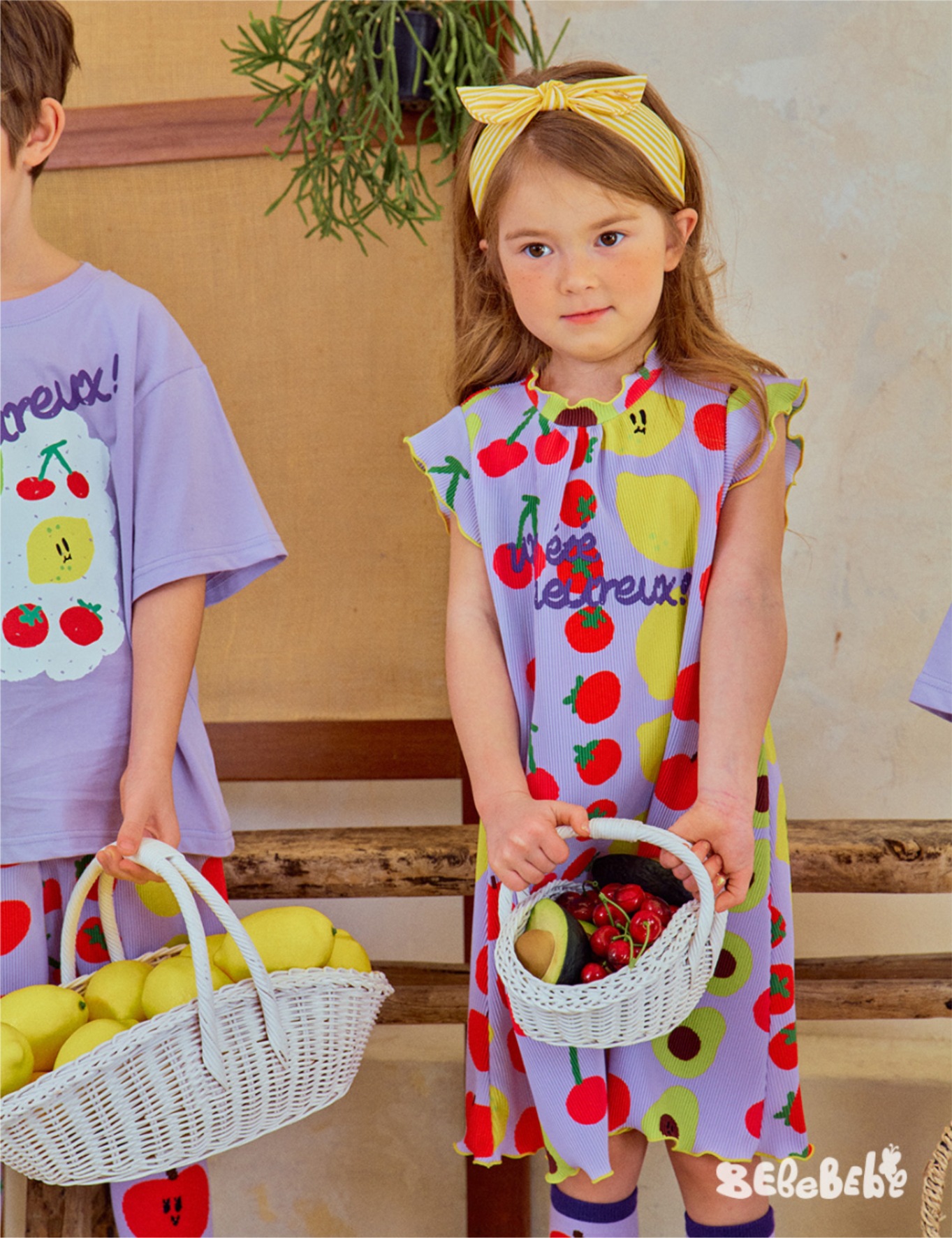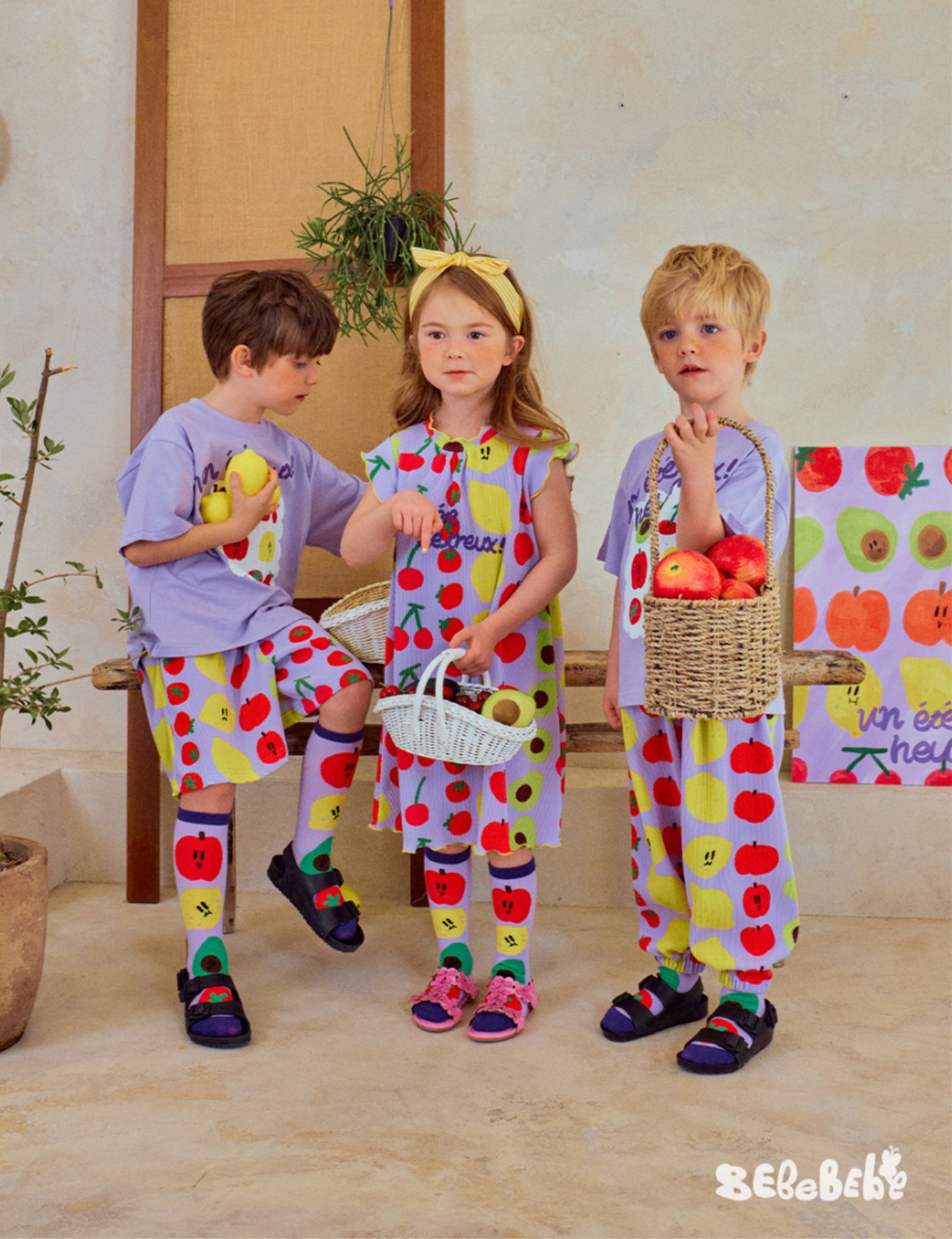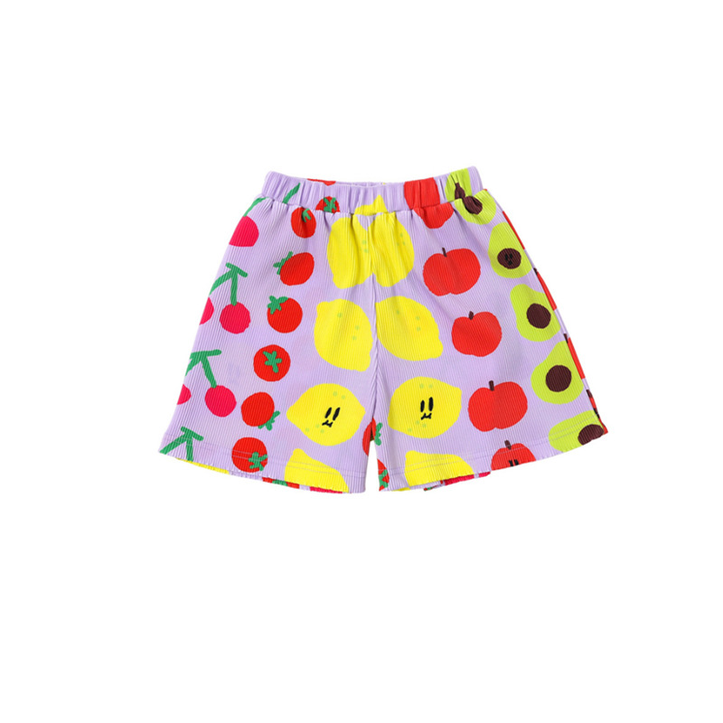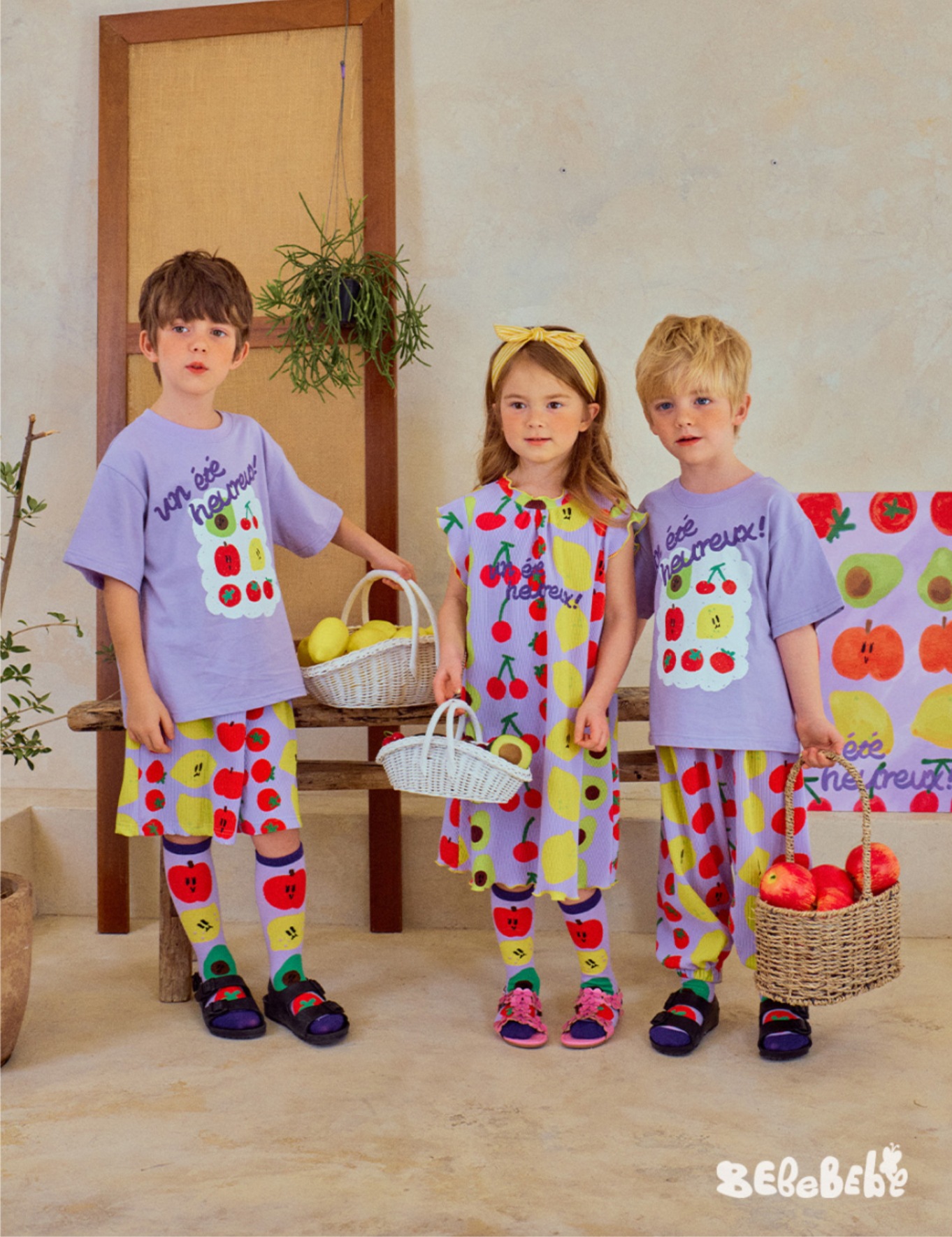 • BE 보라색 과일 프린트 티셔츠 + 반바지 세트