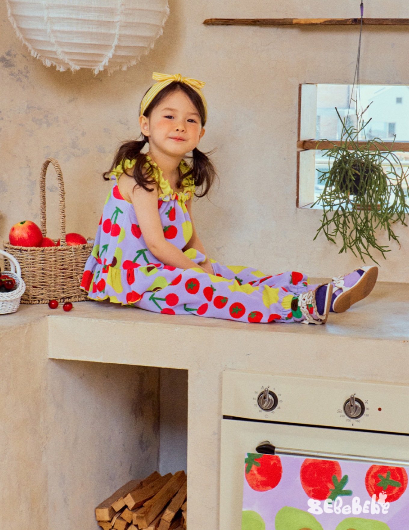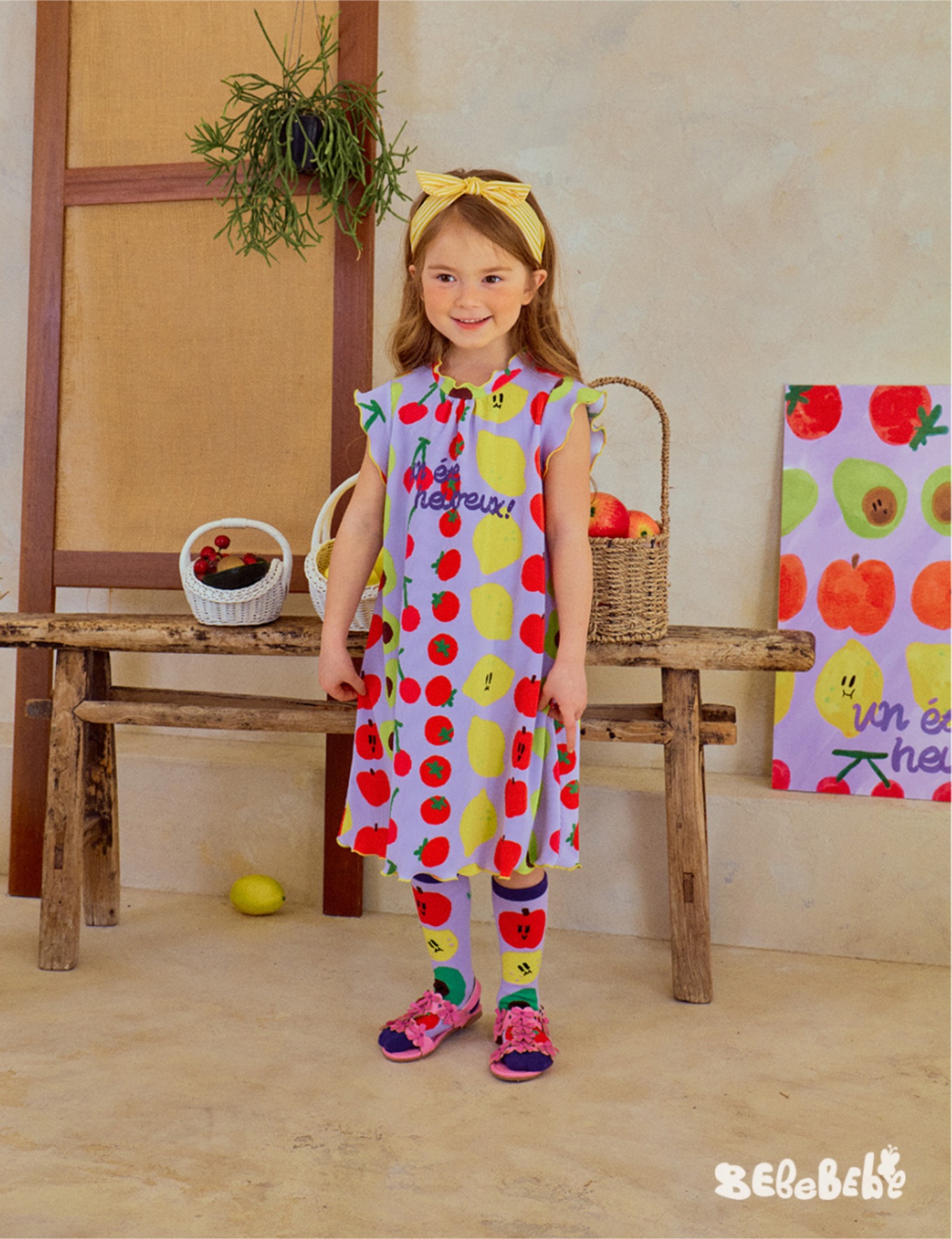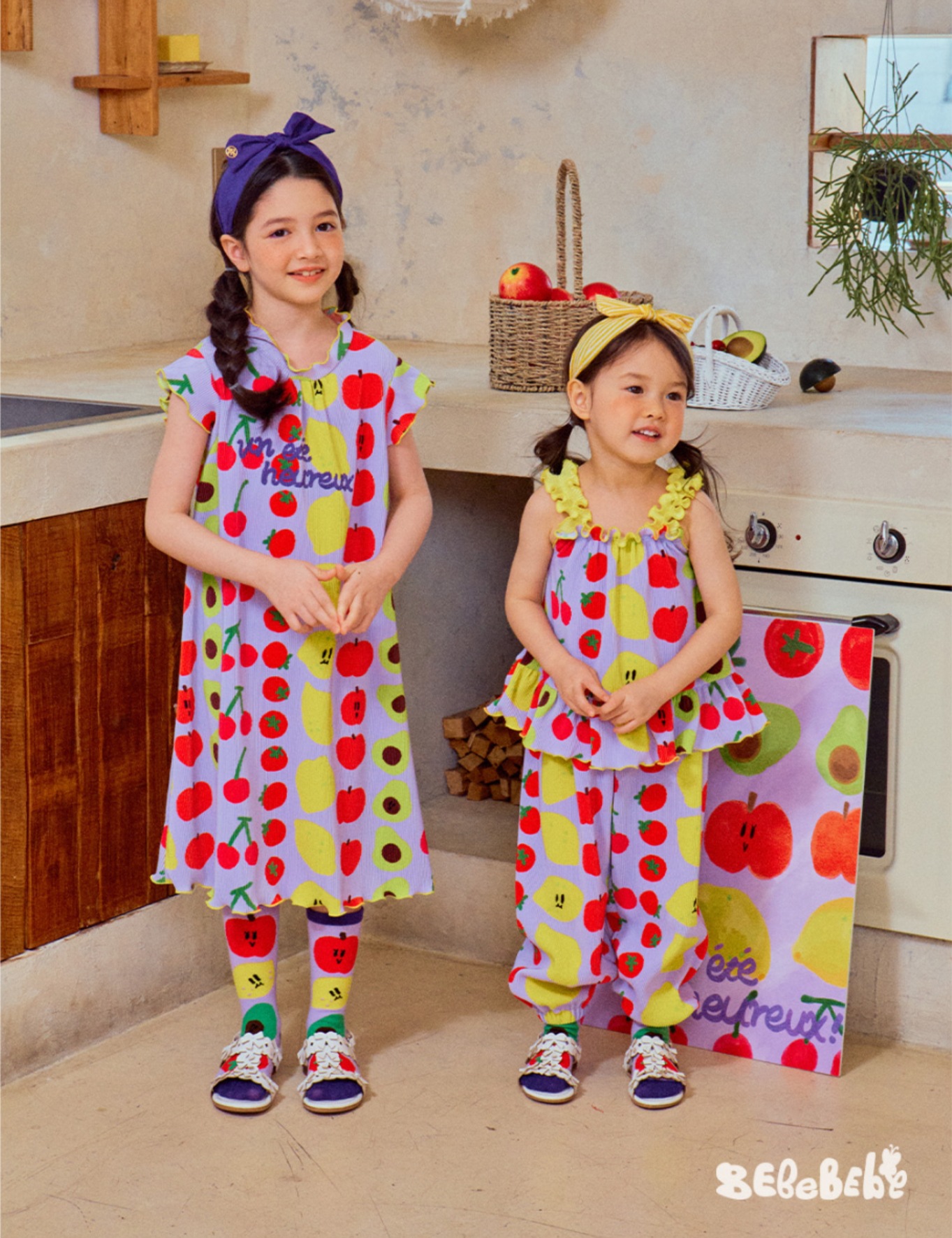 스팟상품! 25 여름 BE 신작 아동 면 T 패션 프린트 주름 모기 방지 바지 서양식 주름 드레스