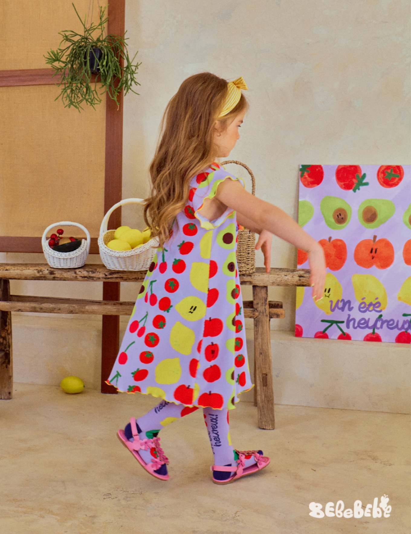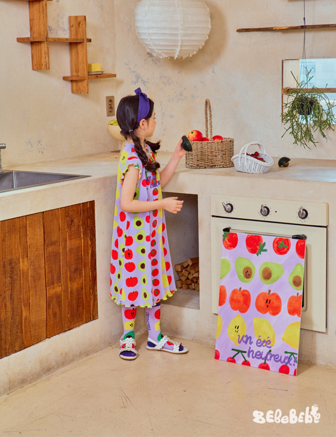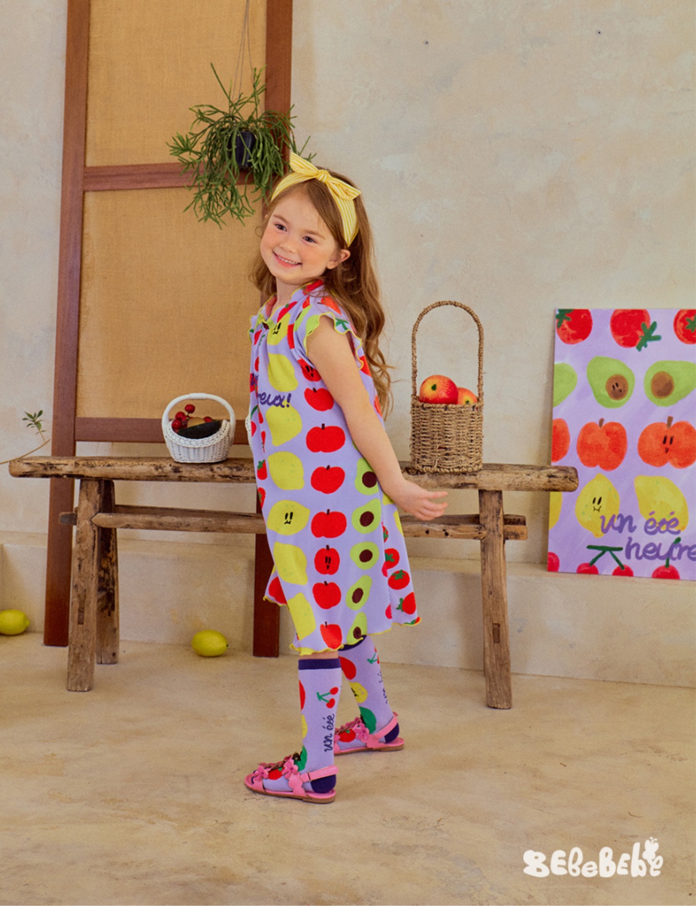 스팟상품! 25 여름 BE 신작 아동 면 T 패션 프린트 주름 모기 방지 바지 서양식 주름 드레스