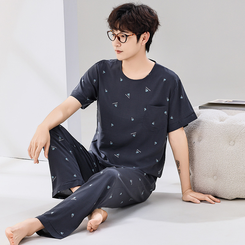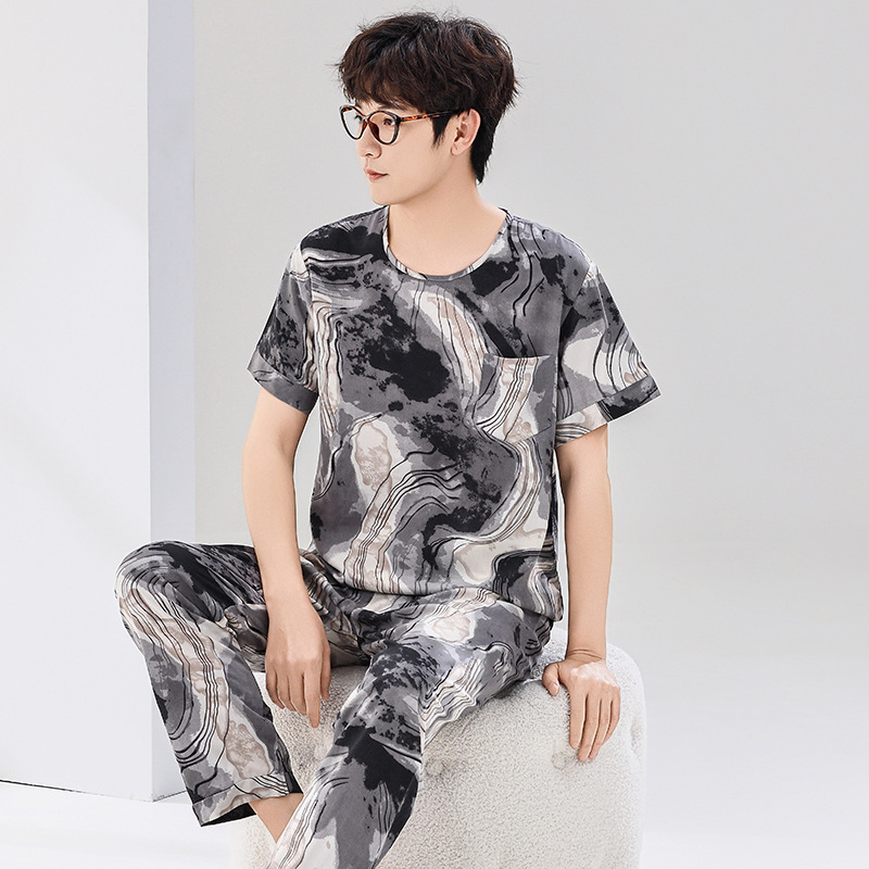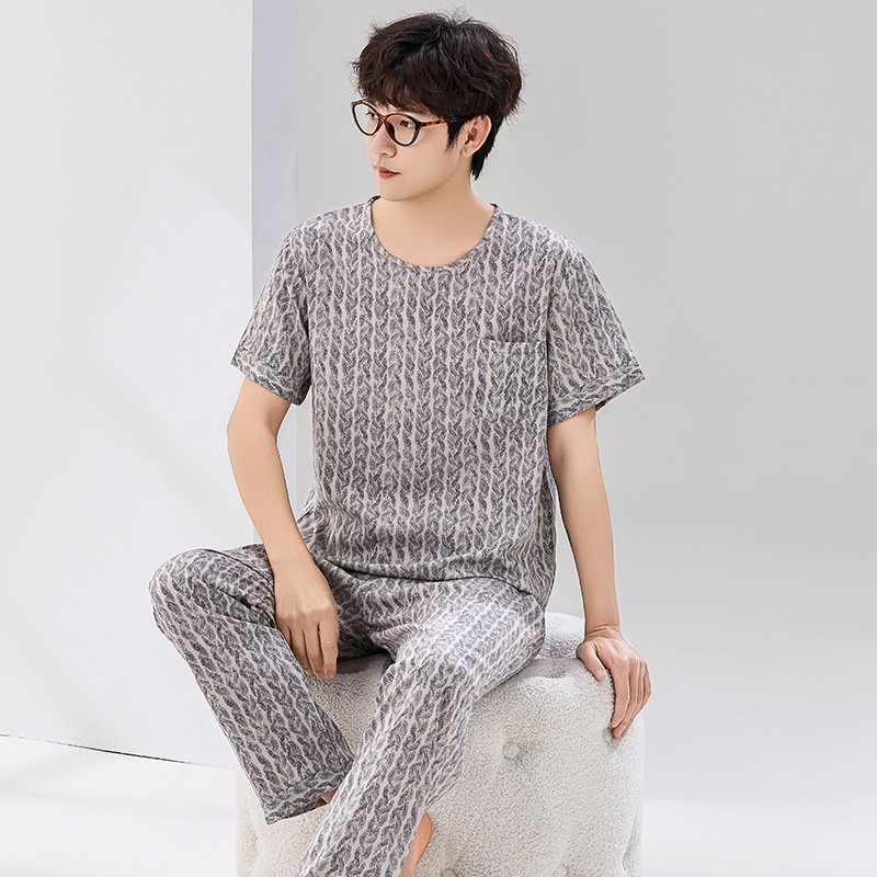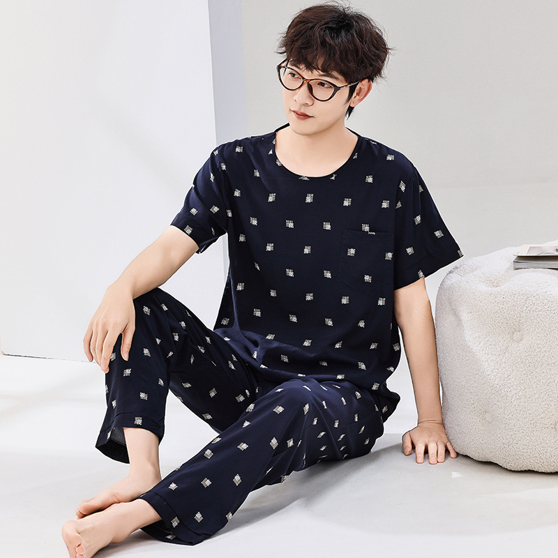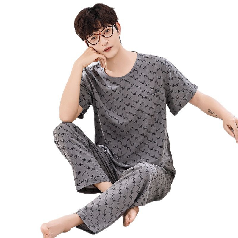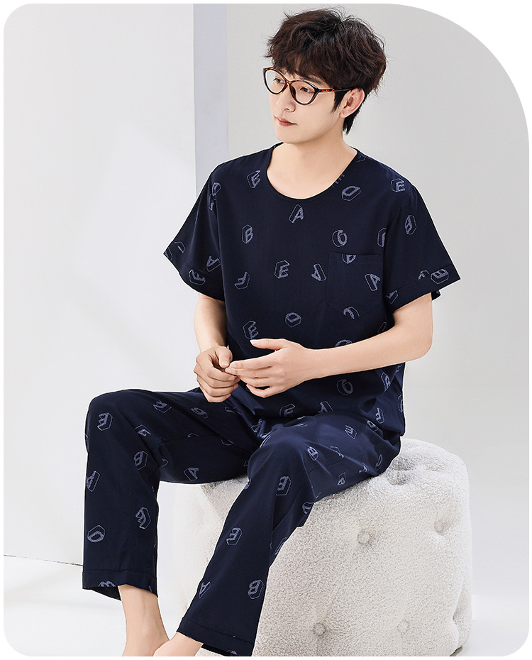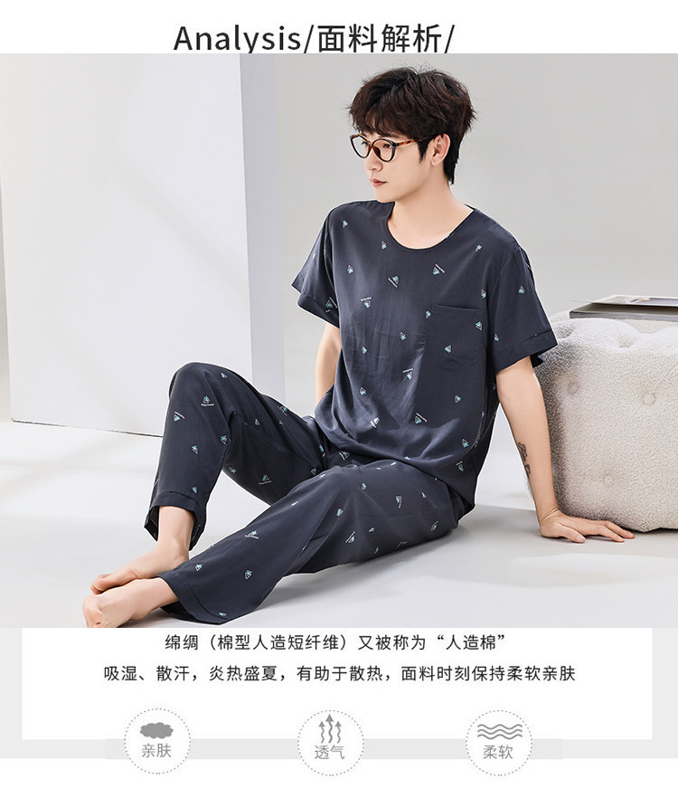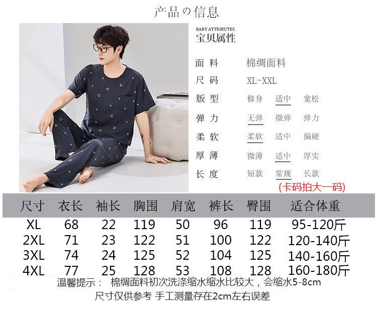 코튼 실크 잠옷 남성용 여름 얇은 반팔 바지 세트 인공 면화 플러스 사이즈 겉옷 중년 및 노인 가정 옷스토어 가기