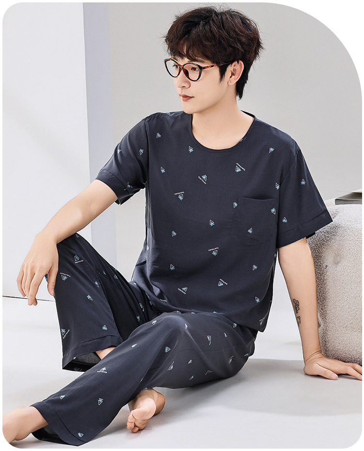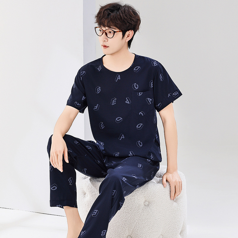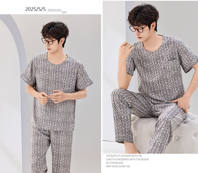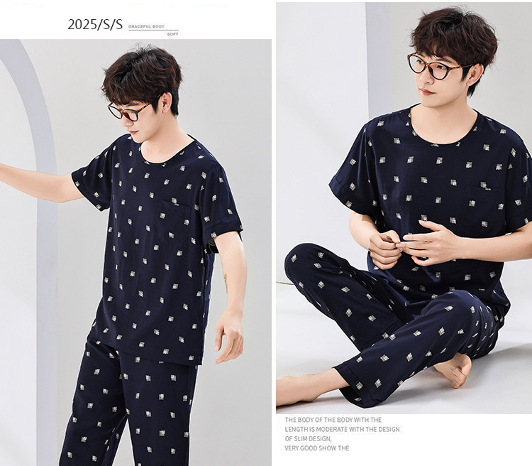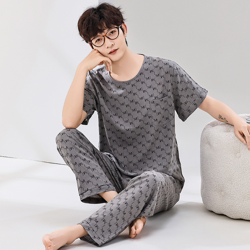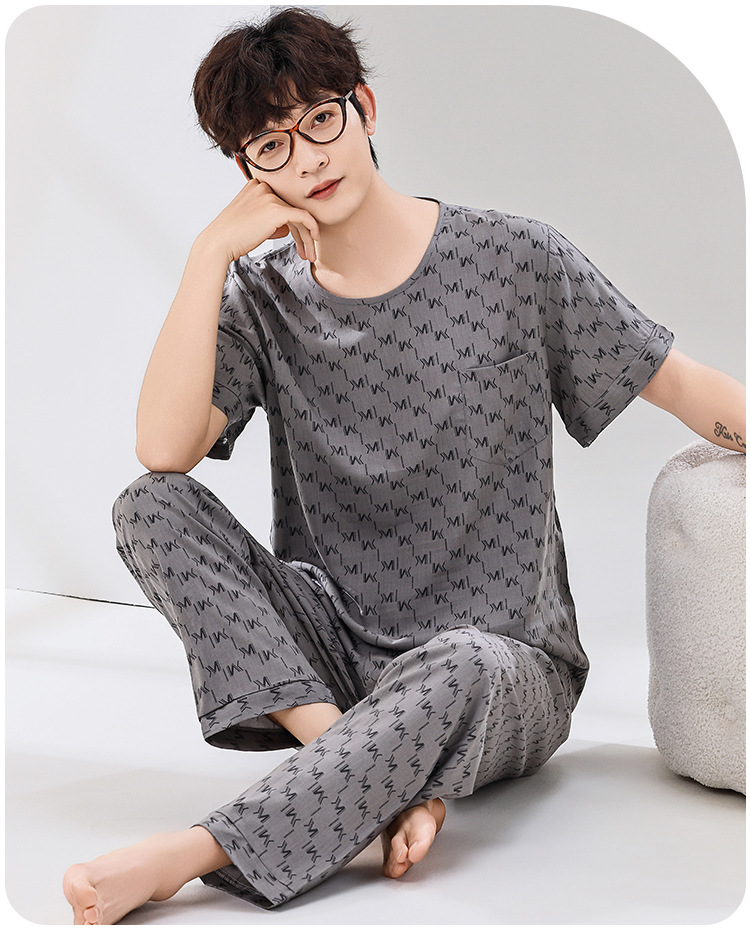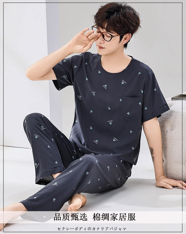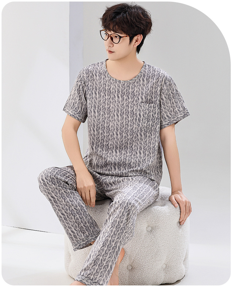 코튼 실크 잠옷 남성용 여름 얇은 반팔 바지 세트 인공 면화 플러스 사이즈 겉옷 중년 및 노인 가정 옷스토어 가기