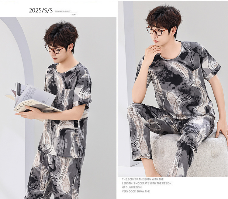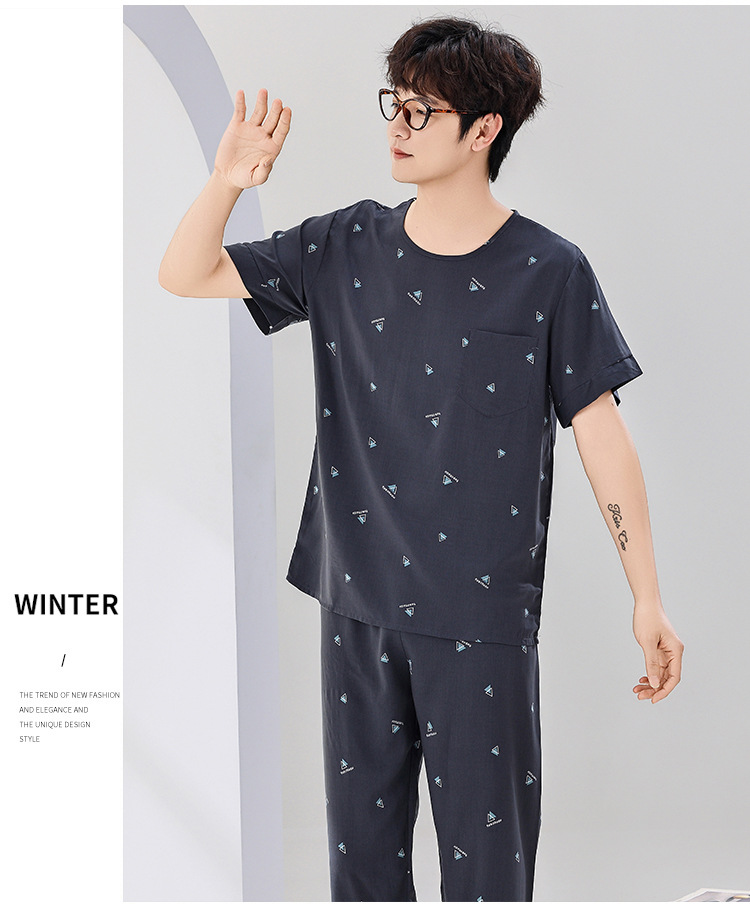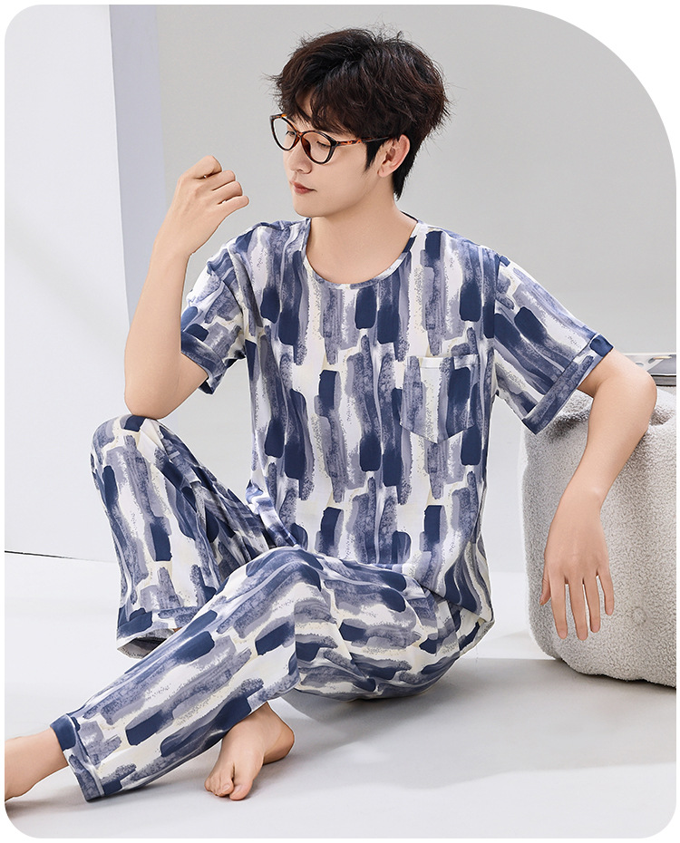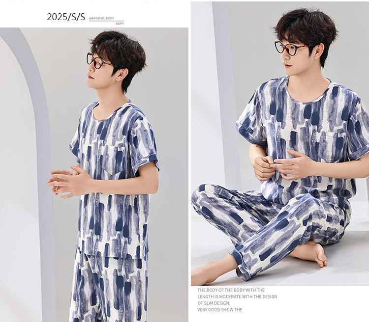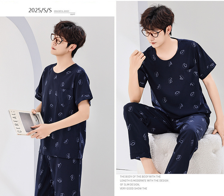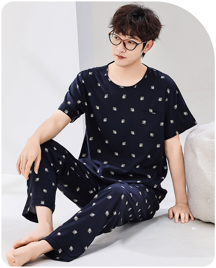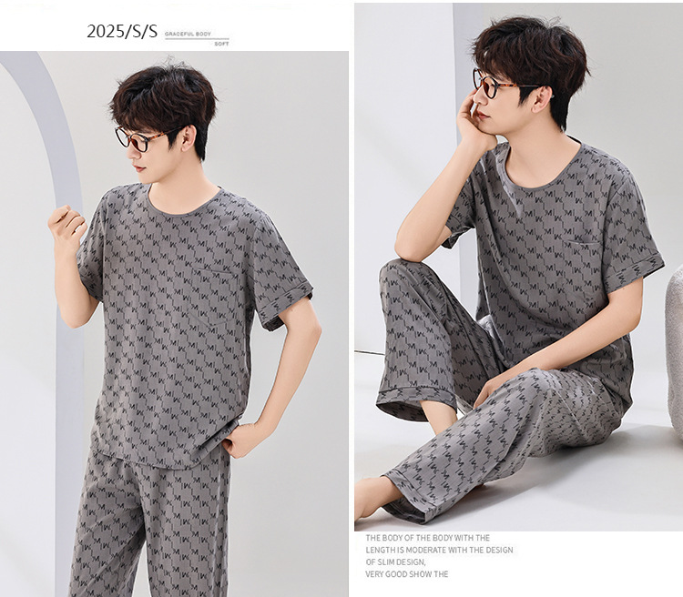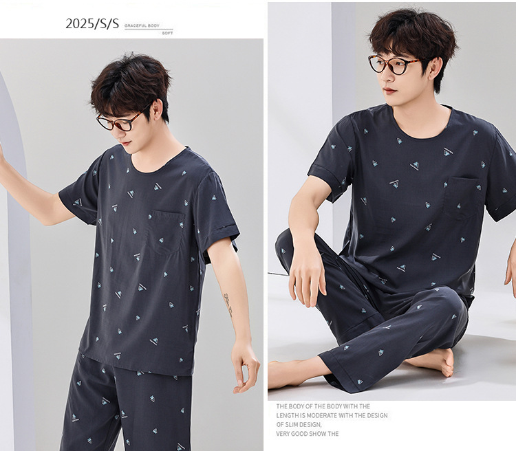 코튼 실크 잠옷 남성용 여름 얇은 반팔 바지 세트 인공 면화 플러스 사이즈 겉옷 중년 및 노인 가정 옷스토어 가기