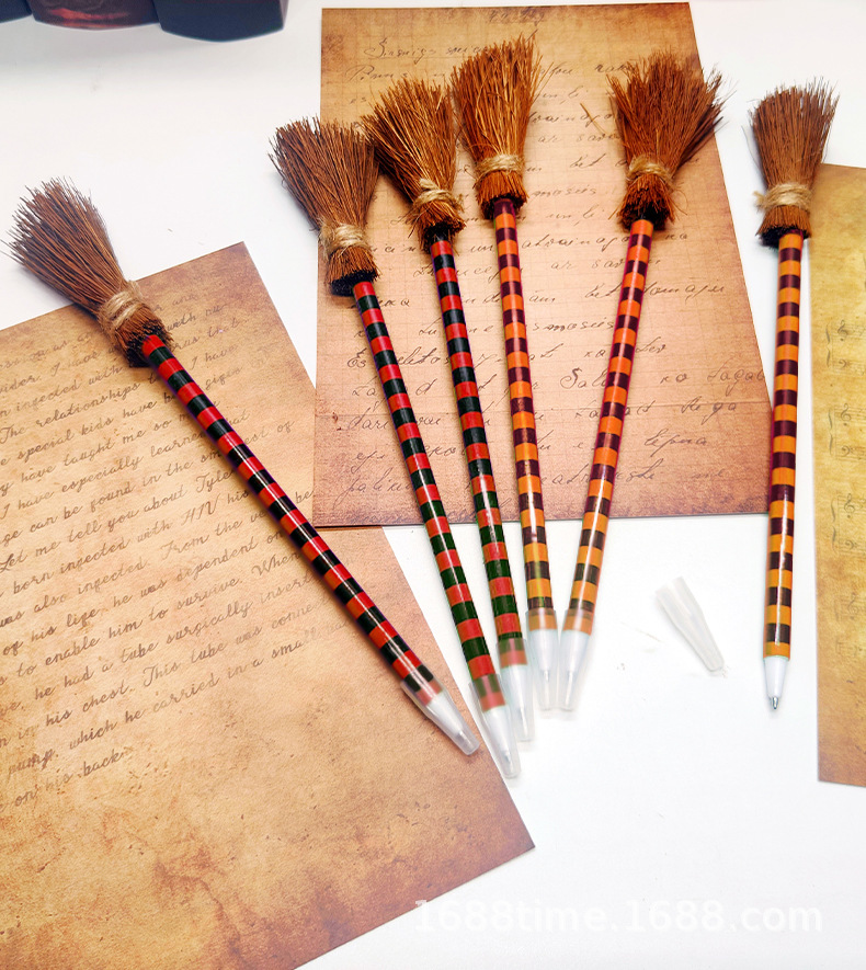 공장 직판 나무 막대 연필 마법 지팡이 날아다니는 마녀 빗자루 연필 빗자루 학생용품 창의적인 빗자루 연필스토어 가기