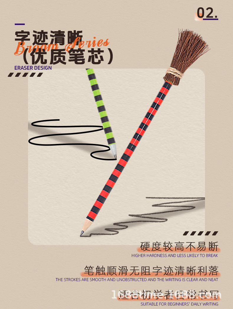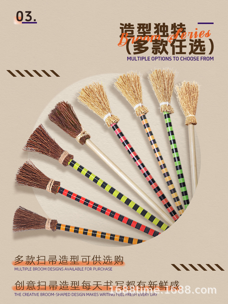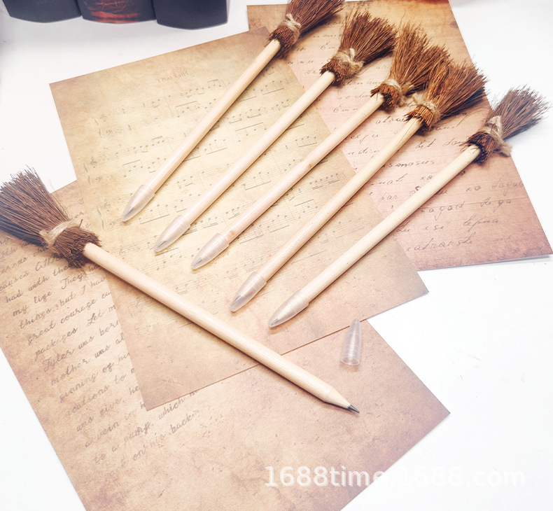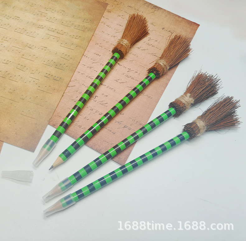 공장 직판 나무 막대 연필 마법 지팡이 날아다니는 마녀 빗자루 연필 빗자루 학생용품 창의적인 빗자루 연필