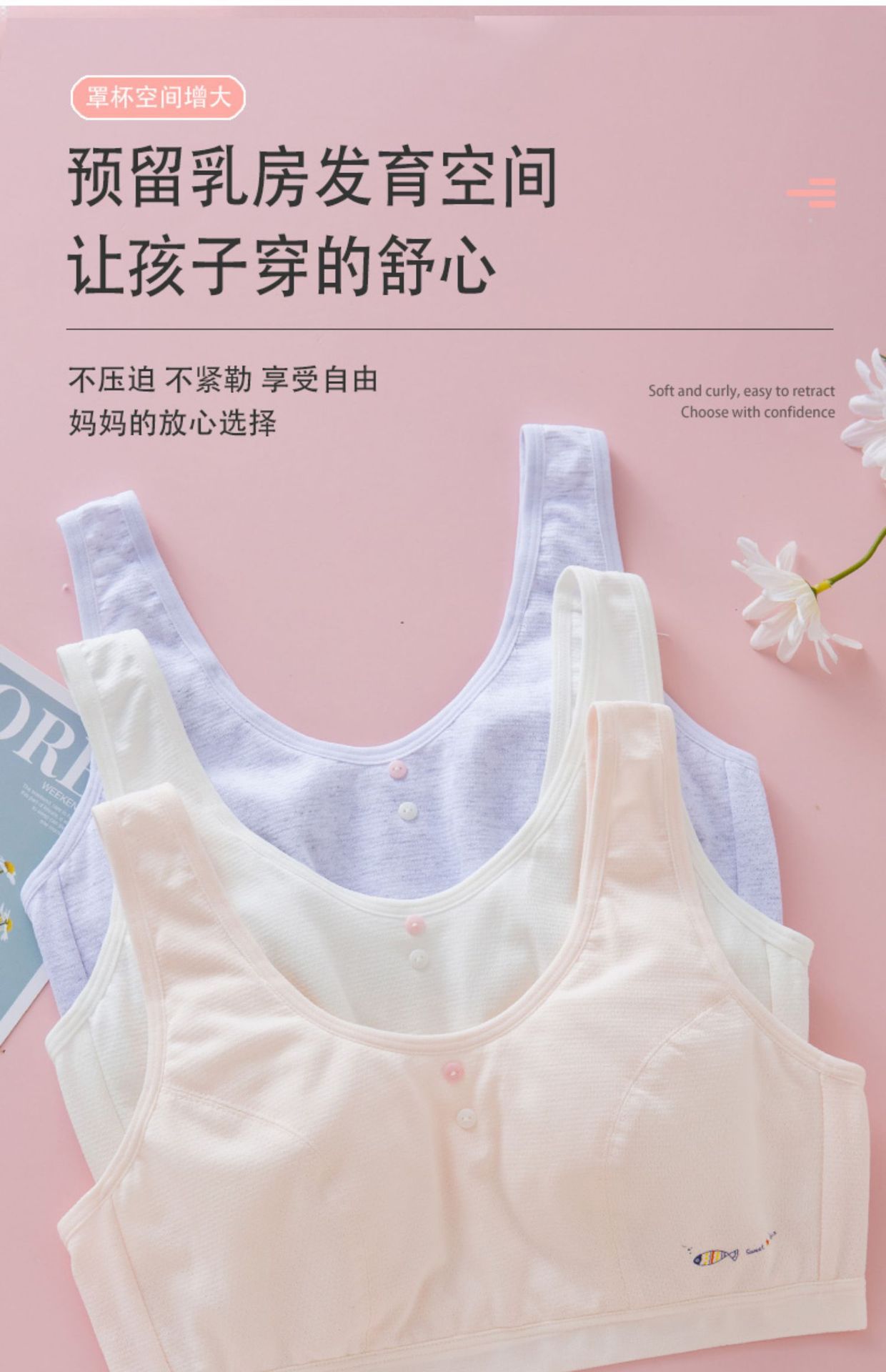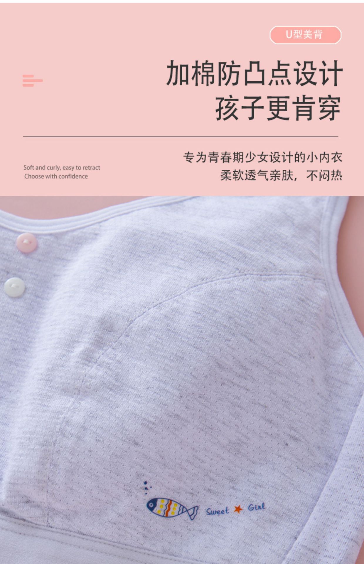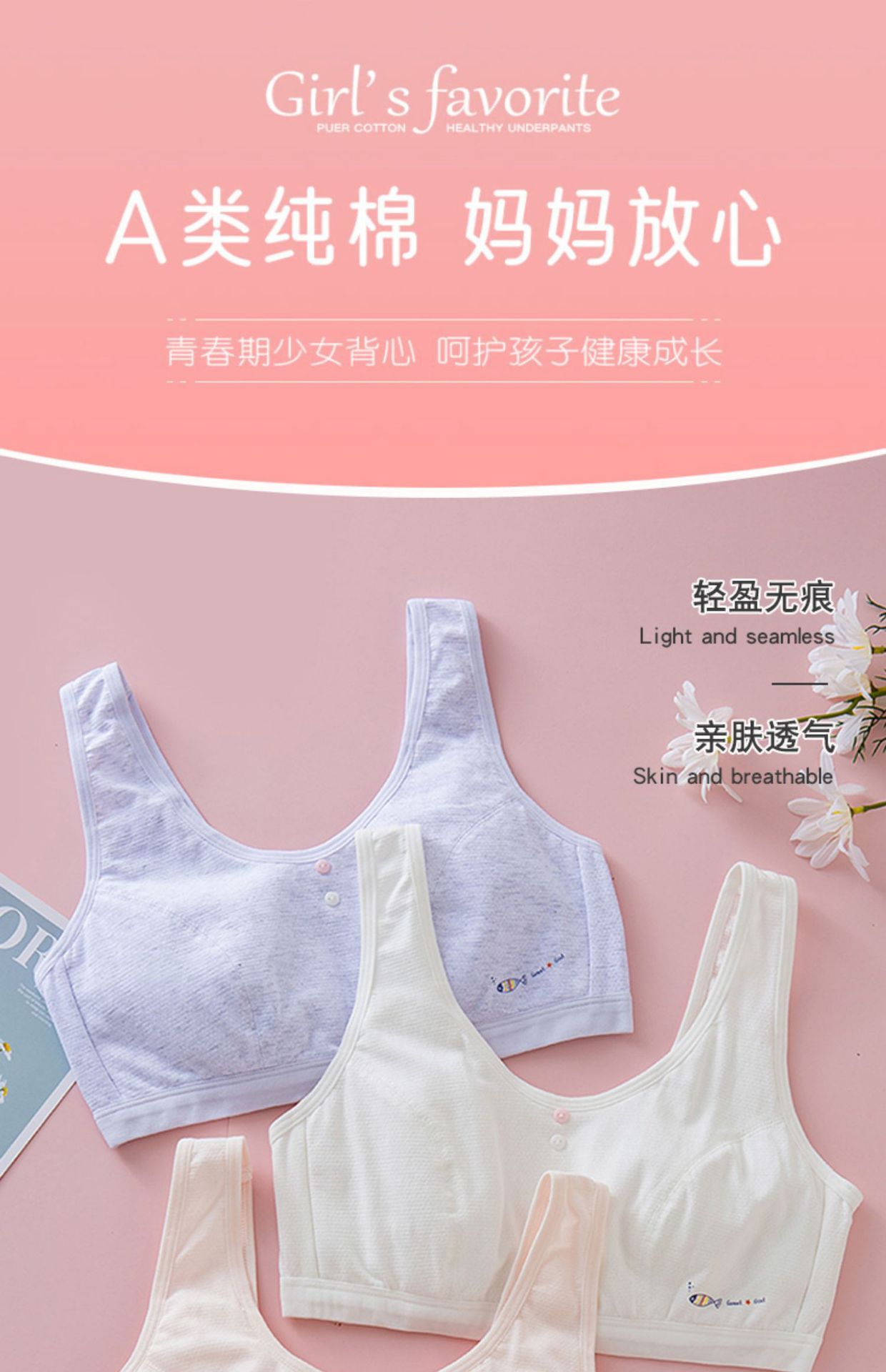 여아 속옷, 초등학생, 중학생, 큰 어린이 조끼, 순면, 13세, 14세 여아 브라