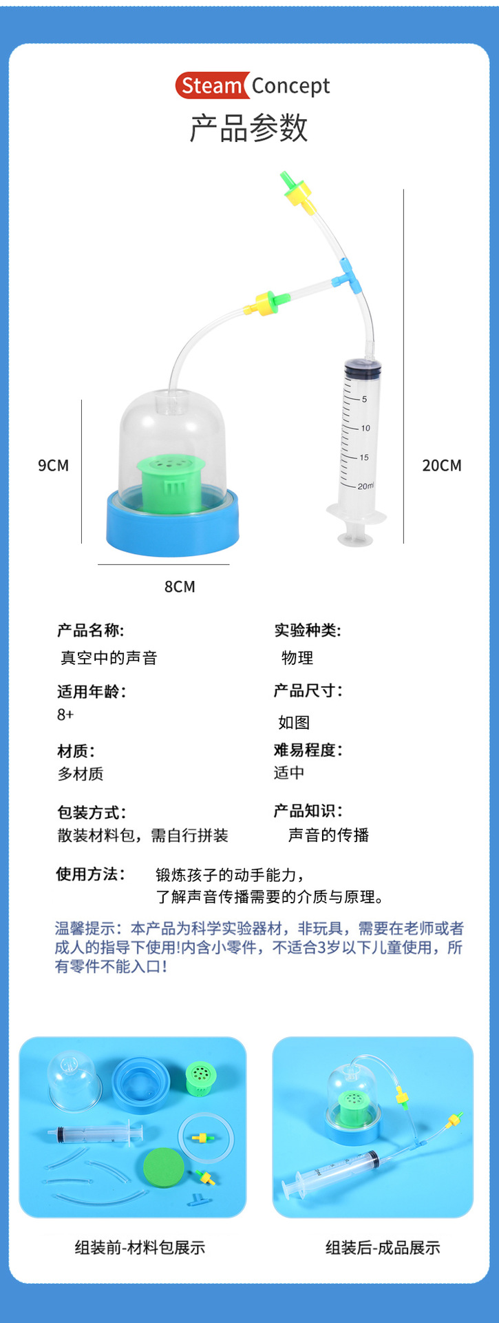 초등학생을 위한 진공소리, 수제 DIY 과학실험, 작은 발명품, 어린이 교육용 조립재료 패키지스토어 가기