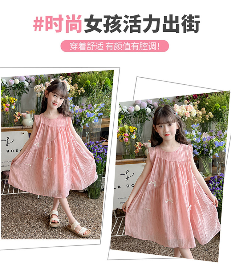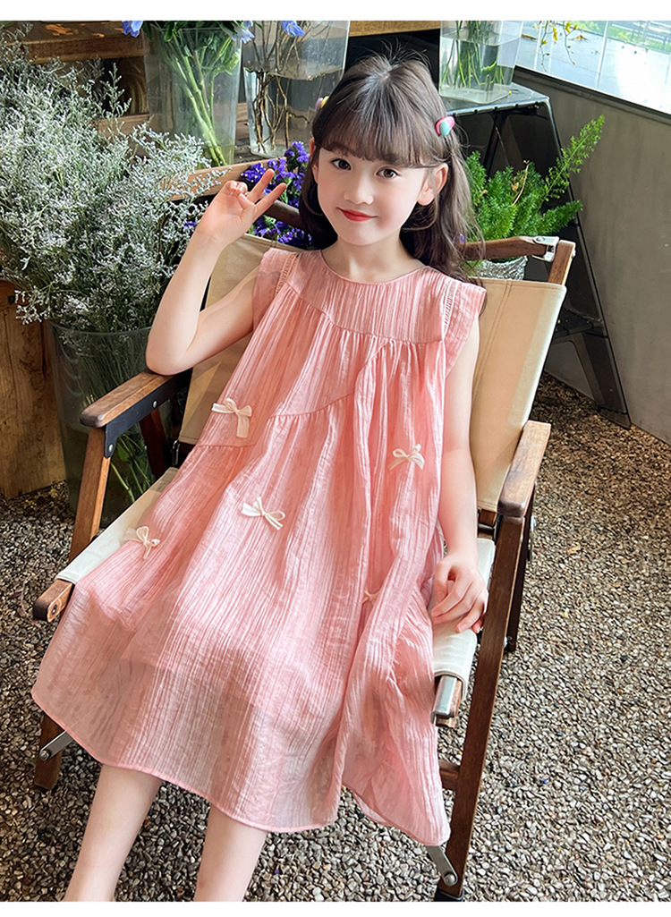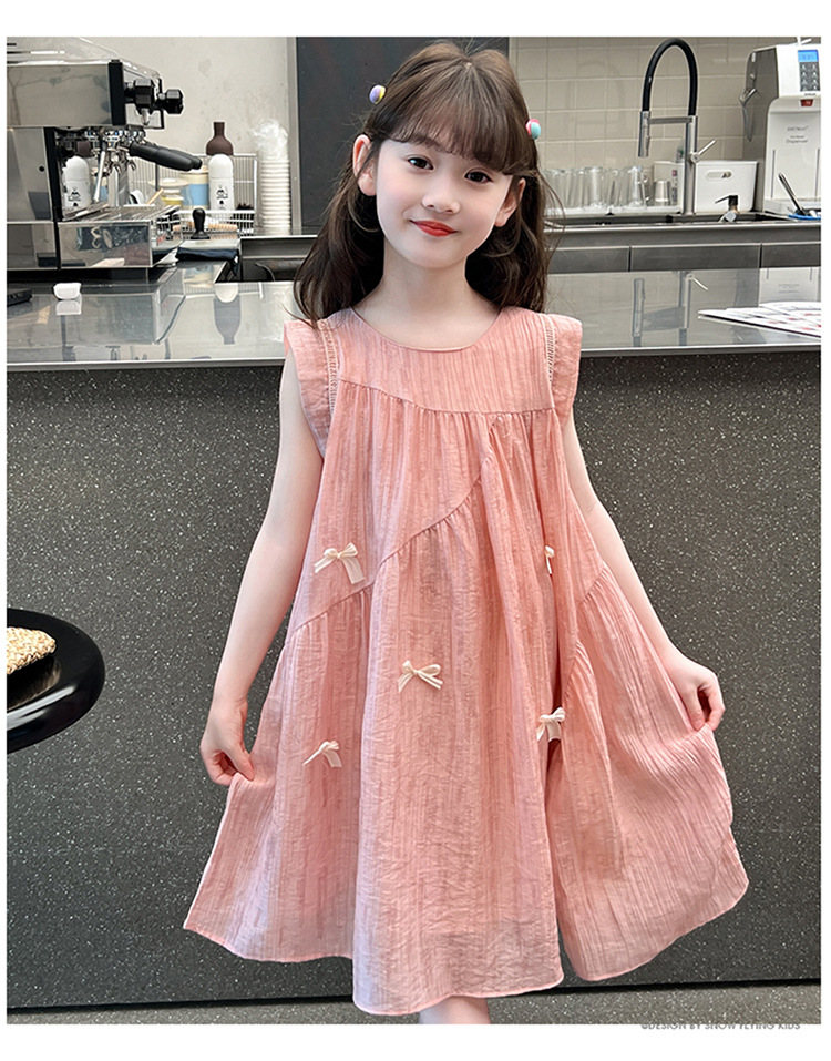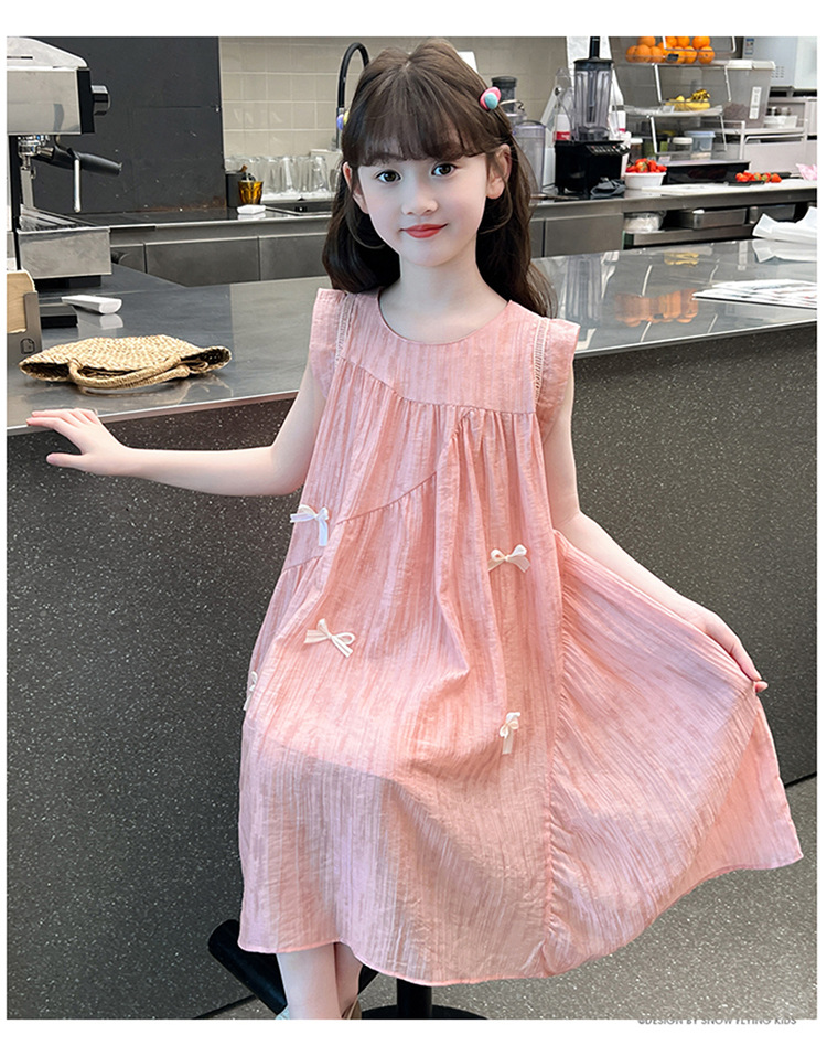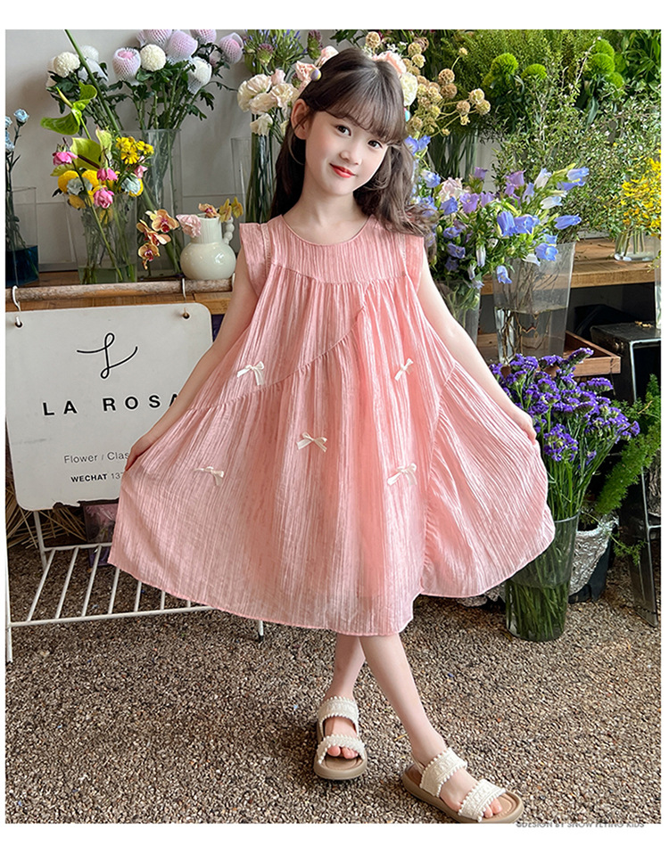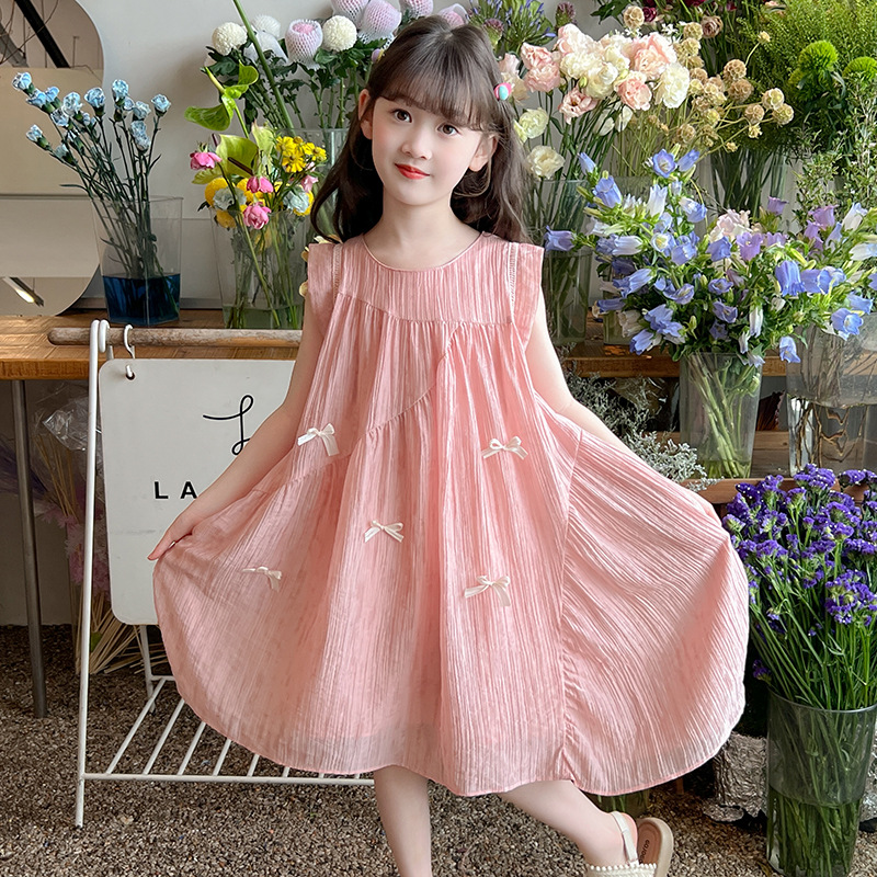 아동복 2025 새로운 한국 스타일 공주 드레스 여자 중대형 어린이 조끼 드레스 여름 보우 드레스