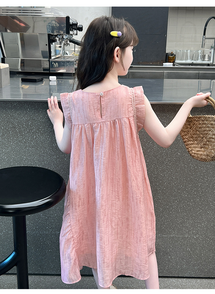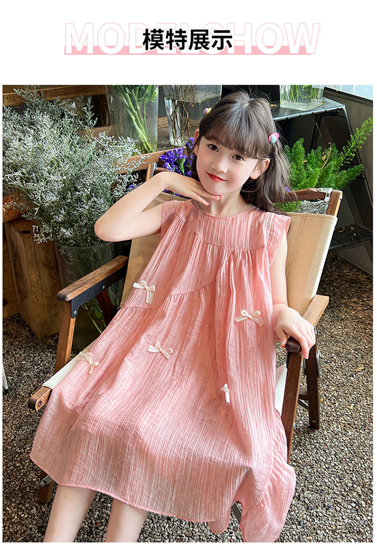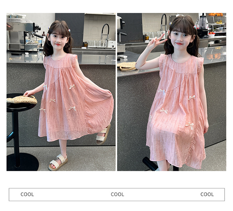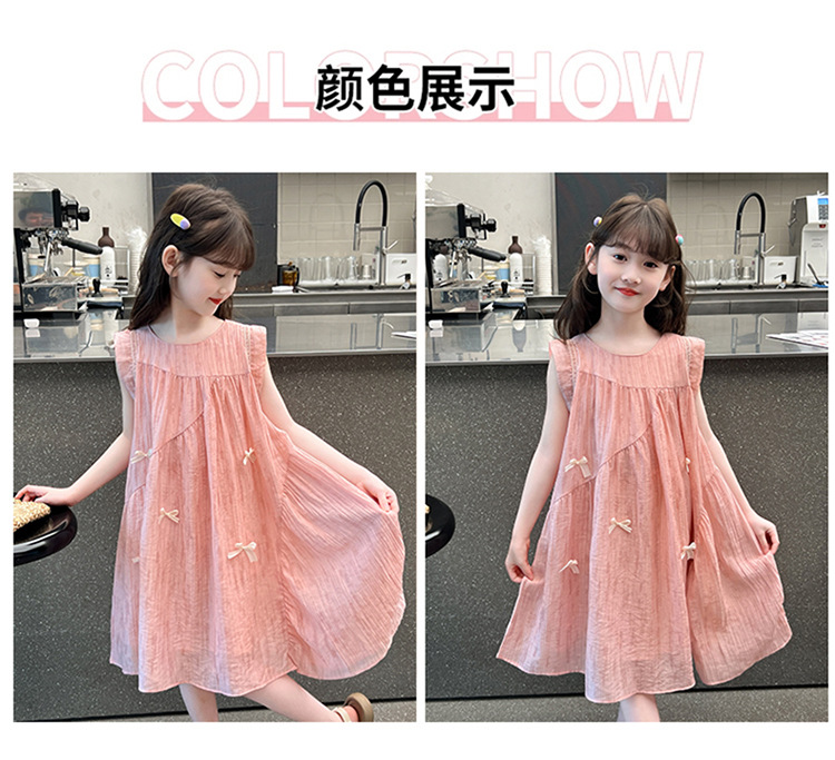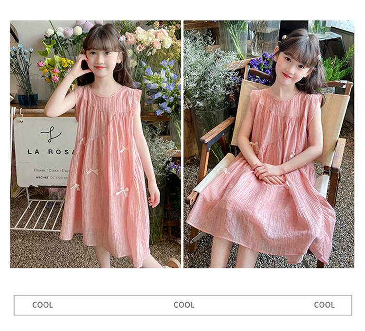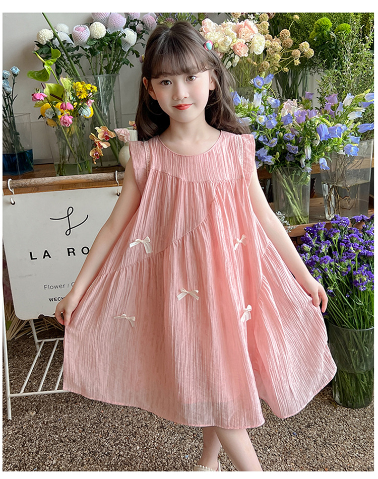 아동복 2025 새로운 한국 스타일 공주 드레스 여자 중대형 어린이 조끼 드레스 여름 보우 드레스