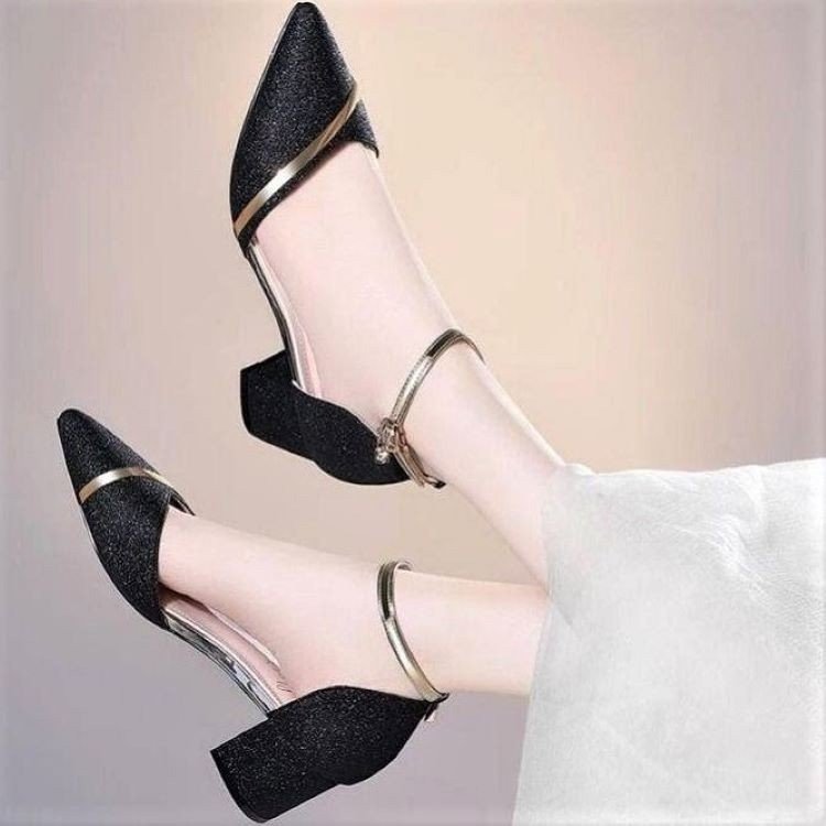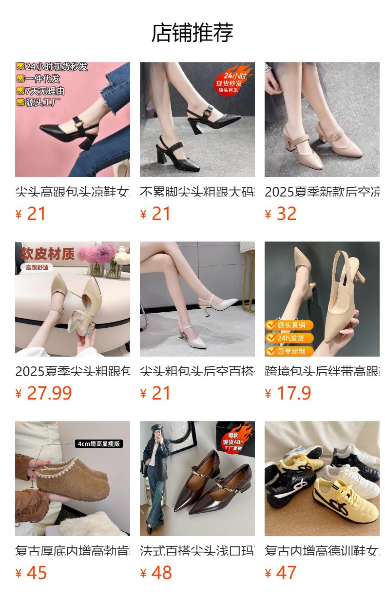 2025 여름 신상 원버튼 샌들 여성용 크로스보더 두꺼운 굽 하이힐 뾰족코 중공 일상 샌들 여성용스토어 가기