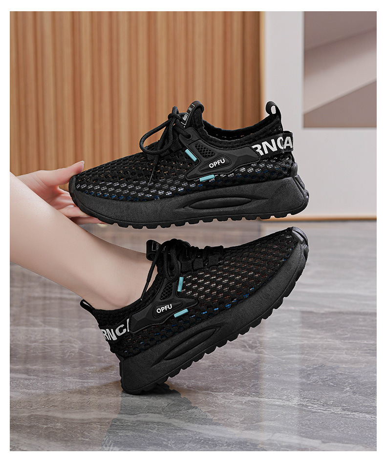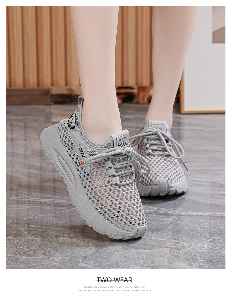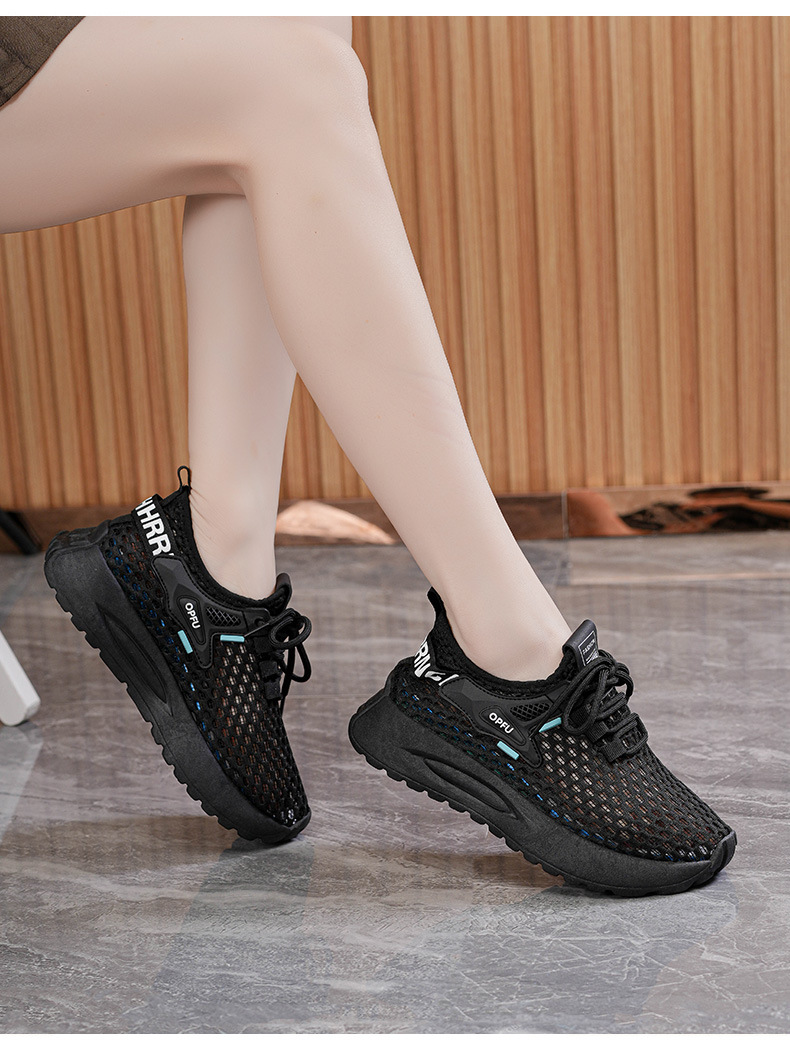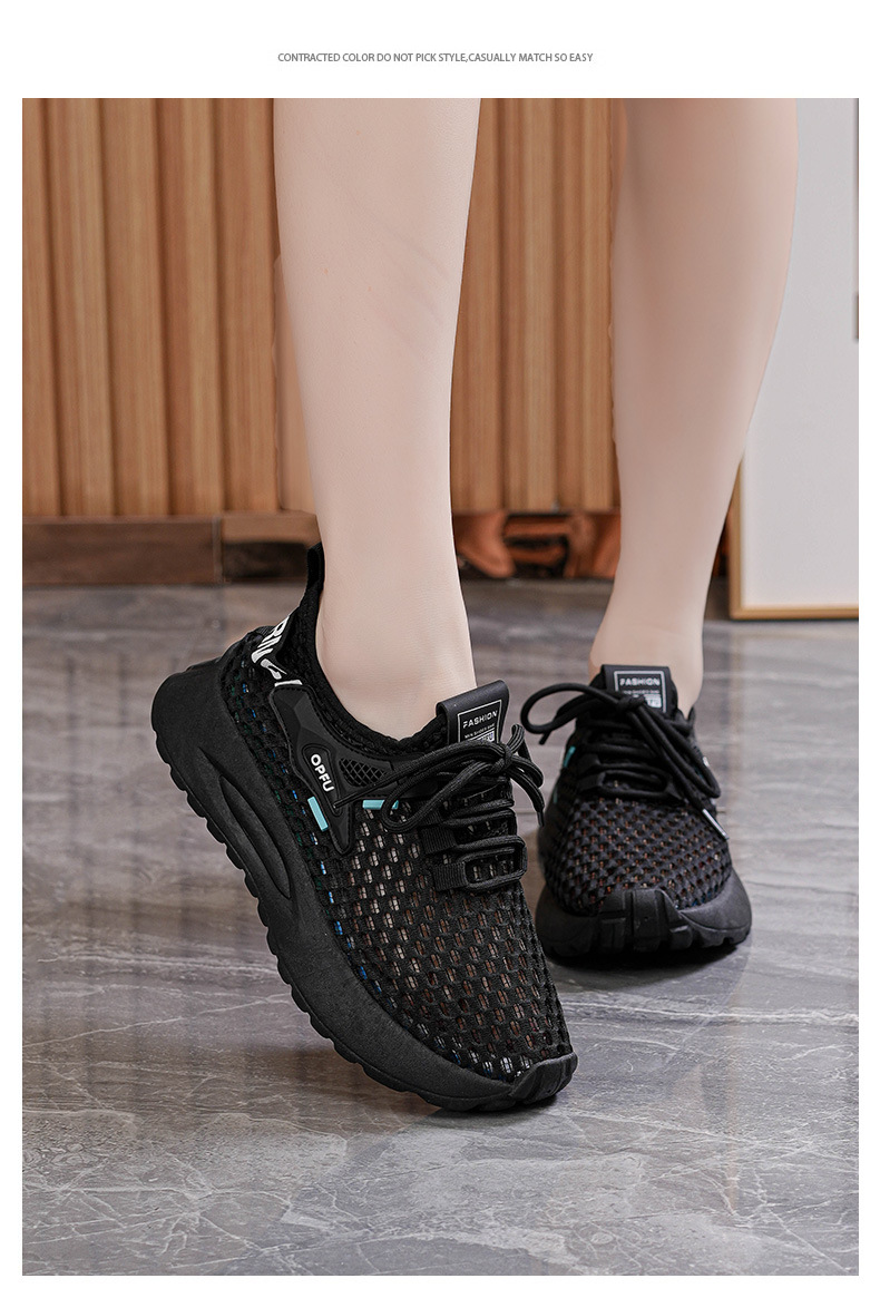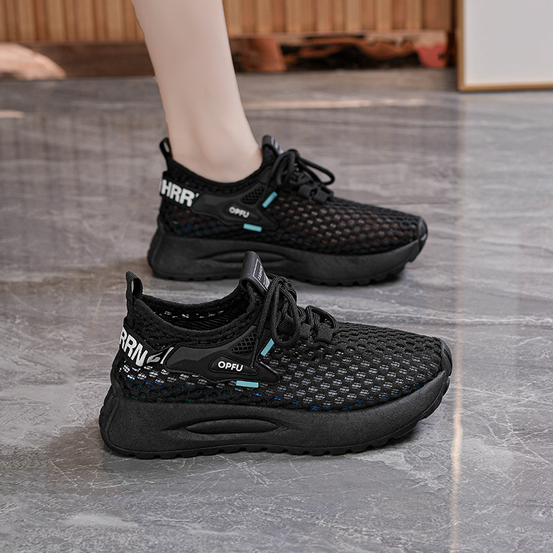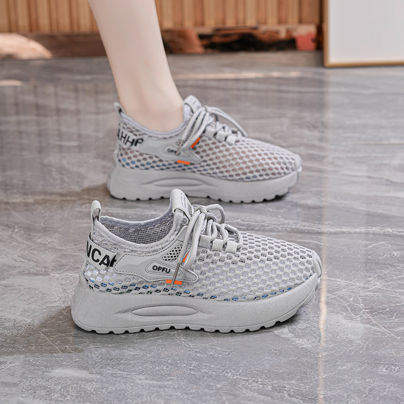 여름 여성 신발 새로운 통기성 중공 메쉬 신발 여성 한국식 올매치 두꺼운 밑창 플라이 짠 운동화 캐주얼 토레 신발스토어 가기