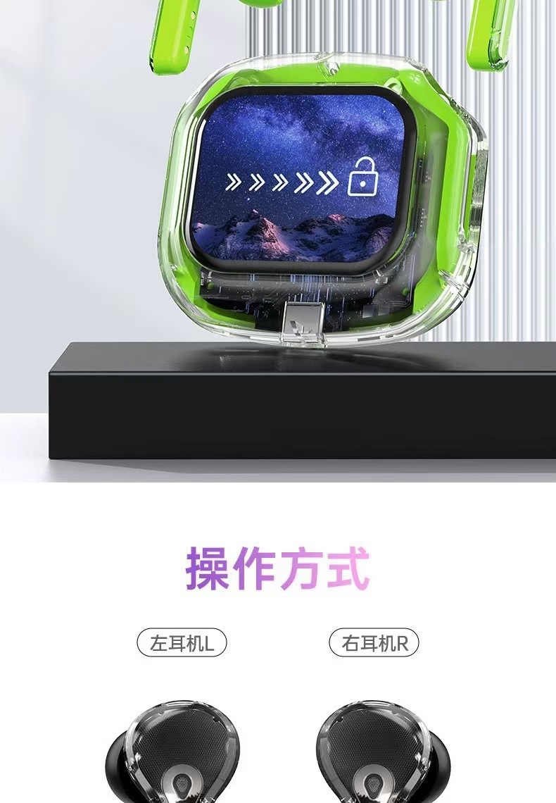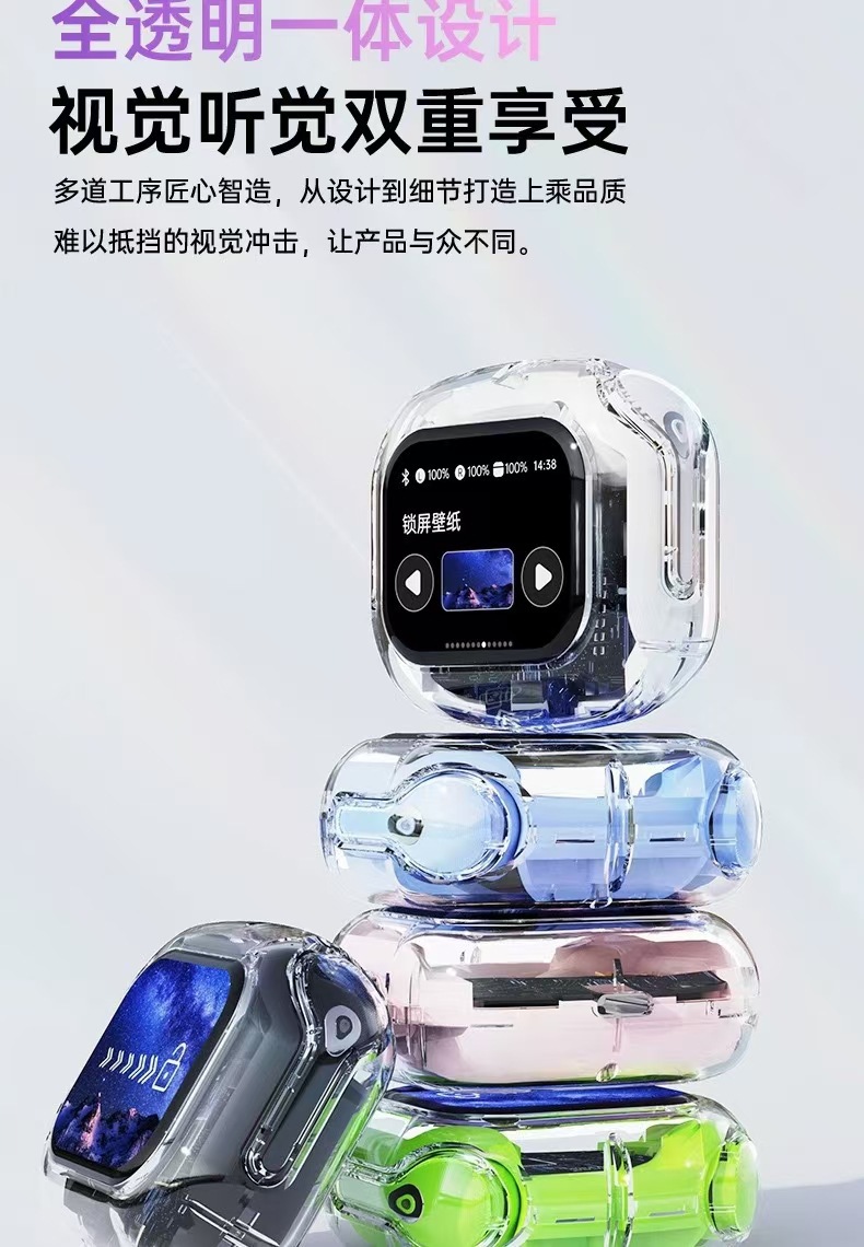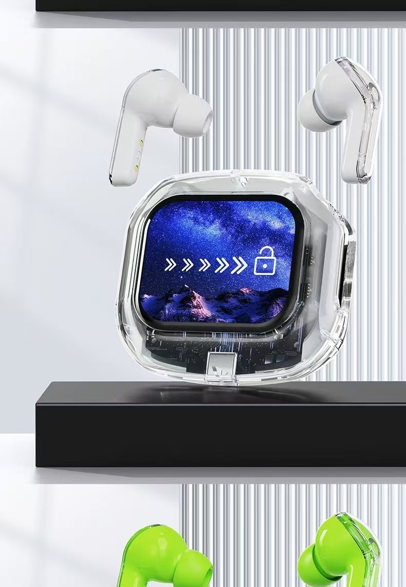 국경 핫 새로운 컬러 스크린 블루투스 헤드셋 전체 투명 디지털 디스플레이 다기능 높은 내구성 블루투스 헤드셋 Q20