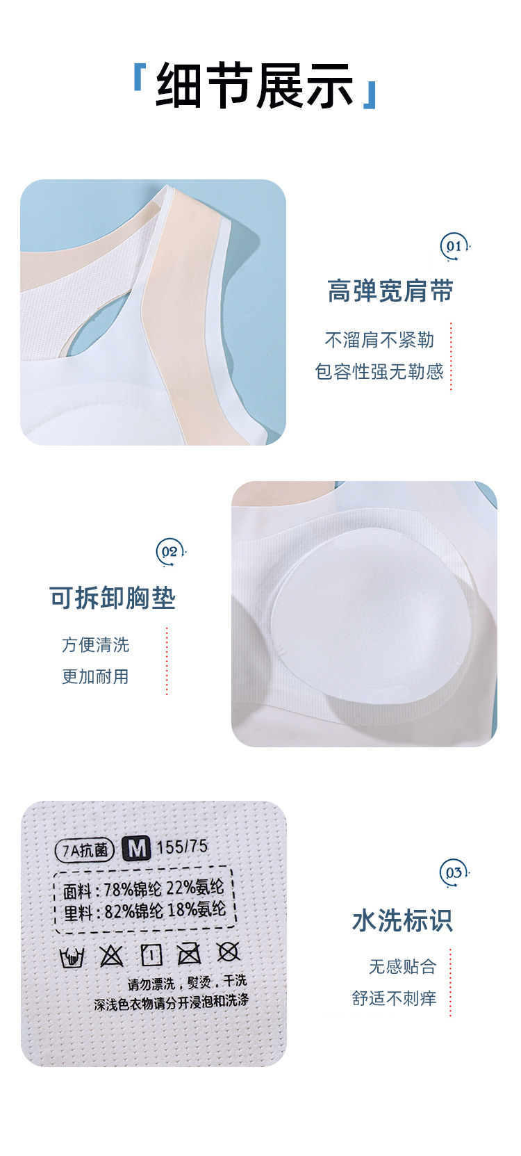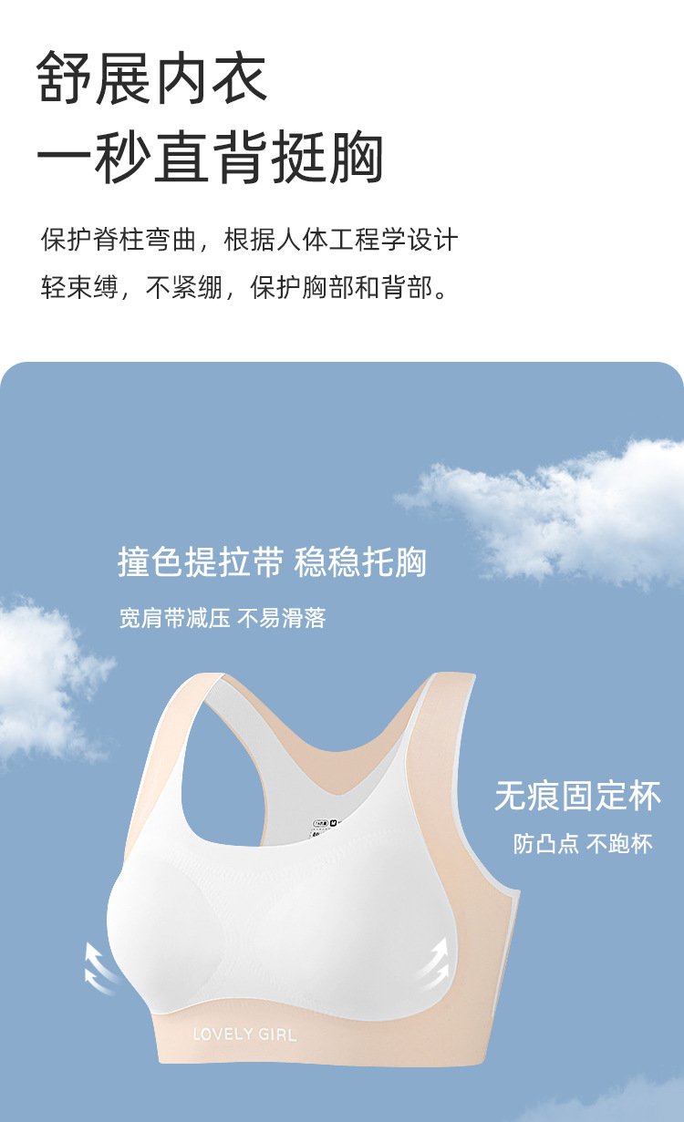 여자 브래지어 학생 스포츠 조끼 발달 기간 충격 방지 원활한 고정 컵 여자 아름다운 뒤 통기성 속옷스토어 가기