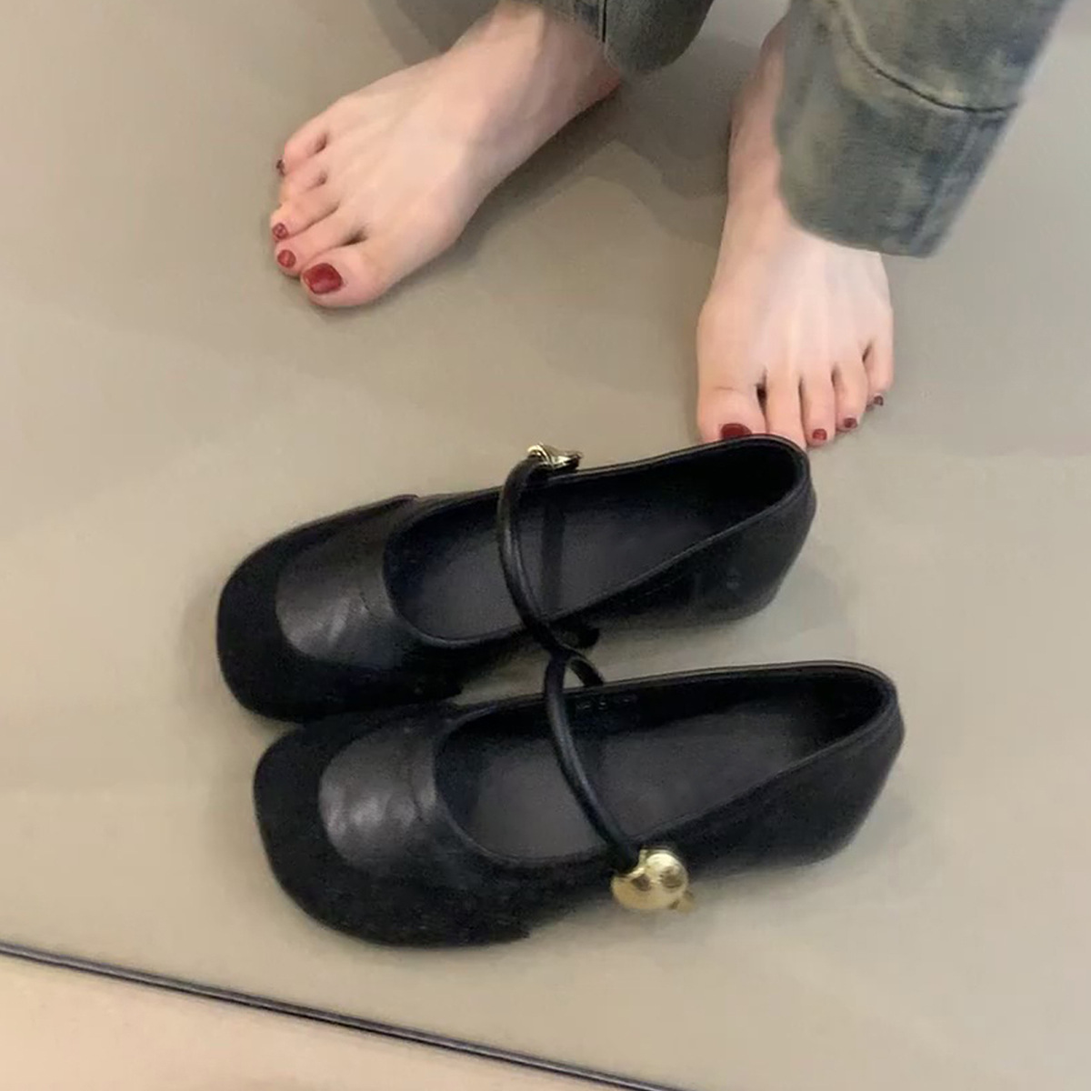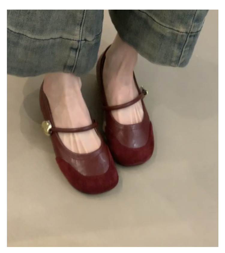 빈티지 우아한 한 단어 버클 내부 높이 증가 메리 제인 여성 신발 얕은 입 통근 프렌치 라운드 발가락 신발스토어 가기