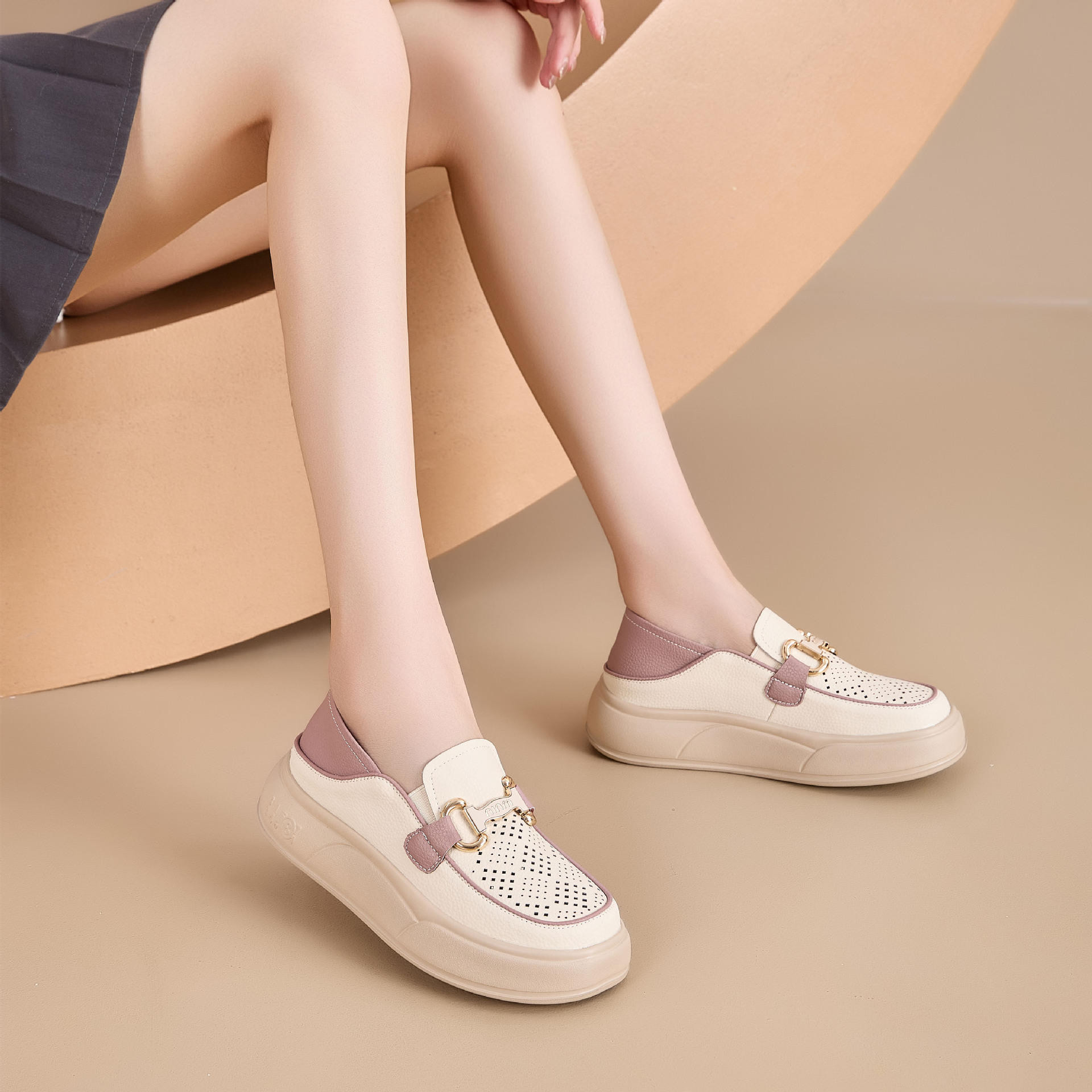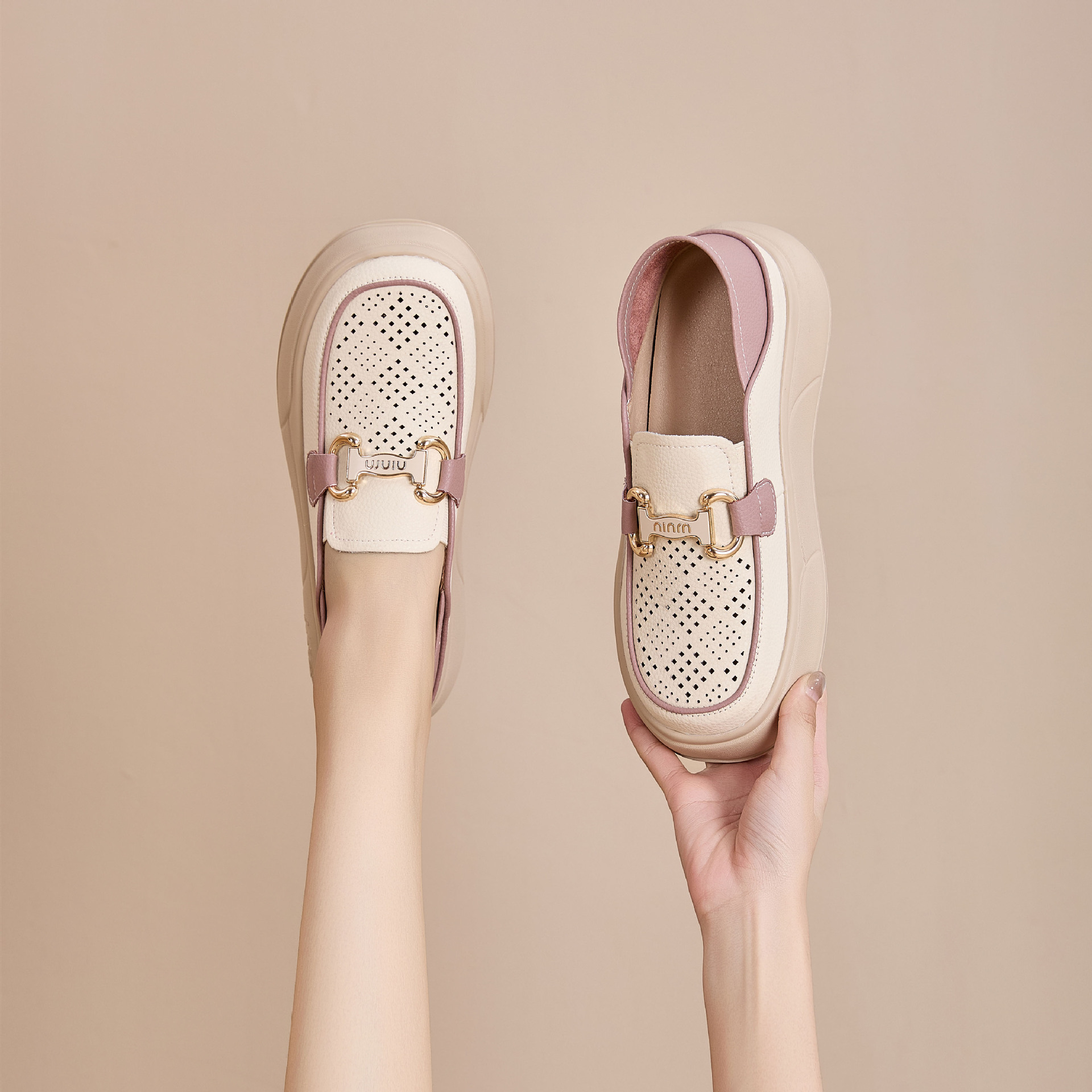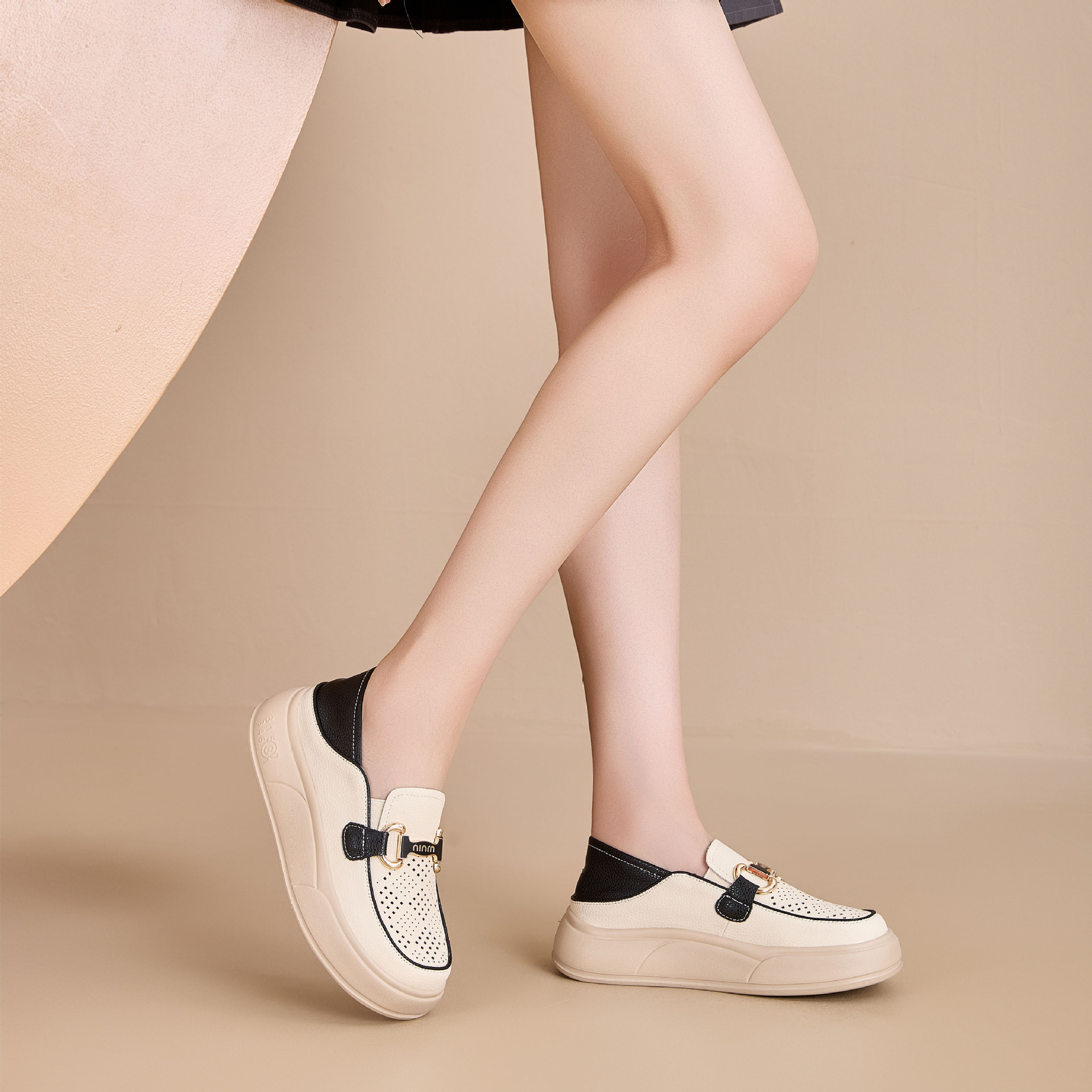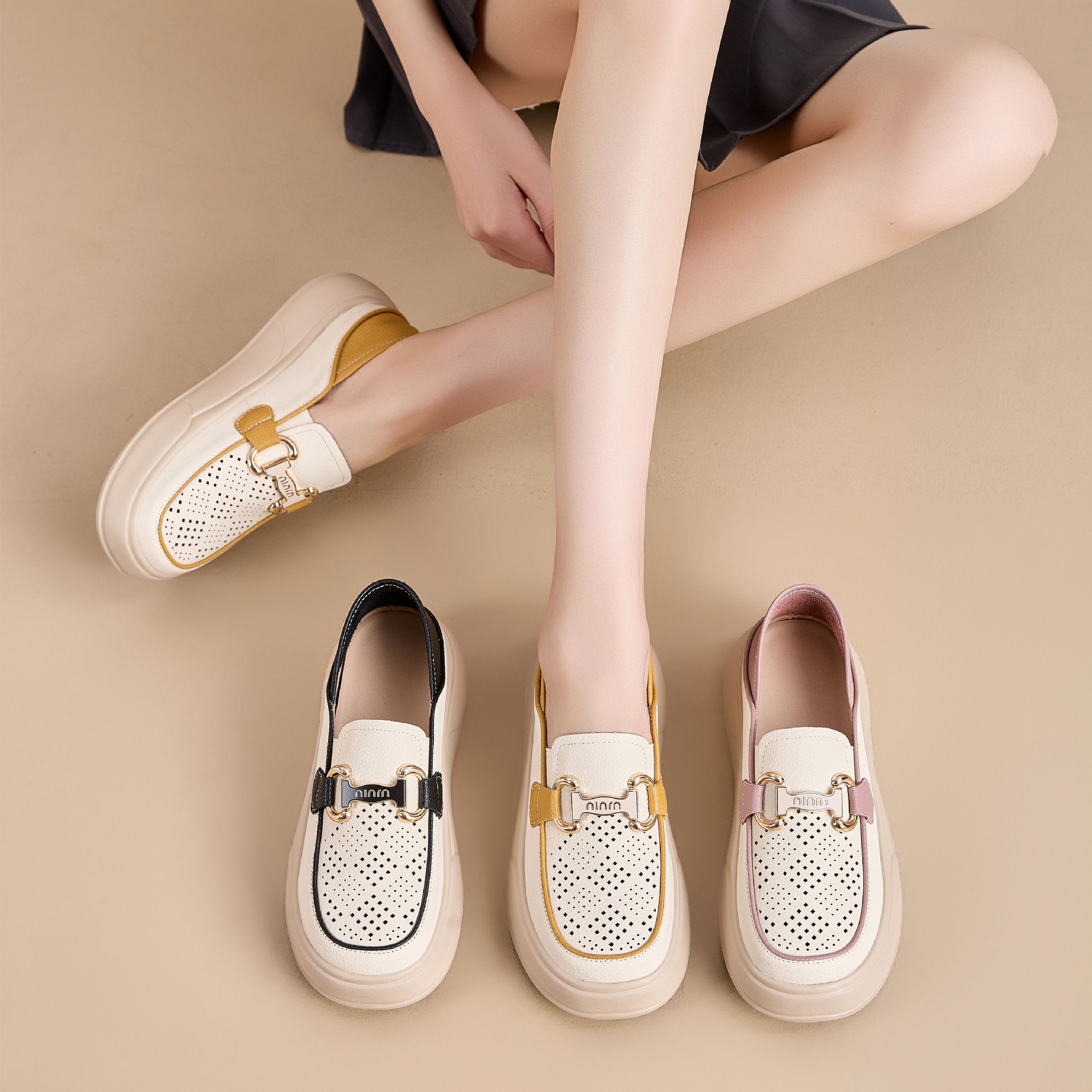 슬립 온 로퍼 여성 여름 할로우 통기성 2025 새로운 여성 신발 소프트 가죽 소프트 바텀 간호사 화이트 슈즈 578
