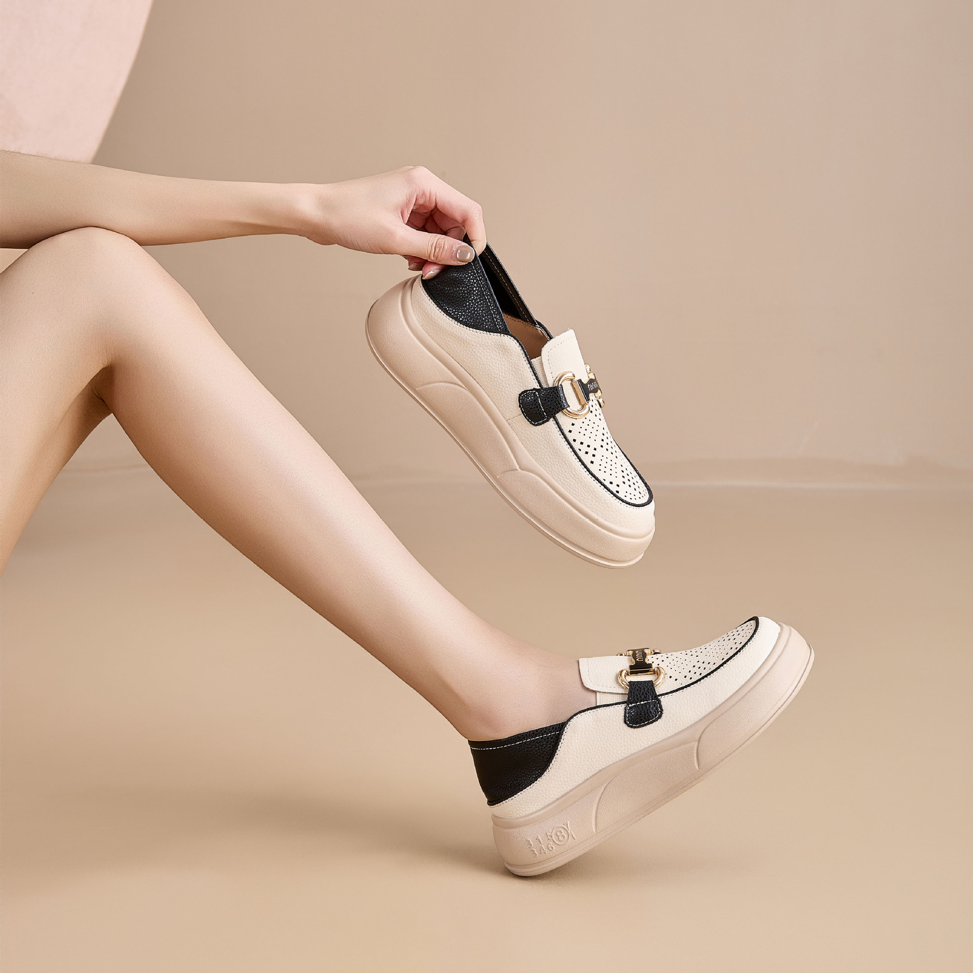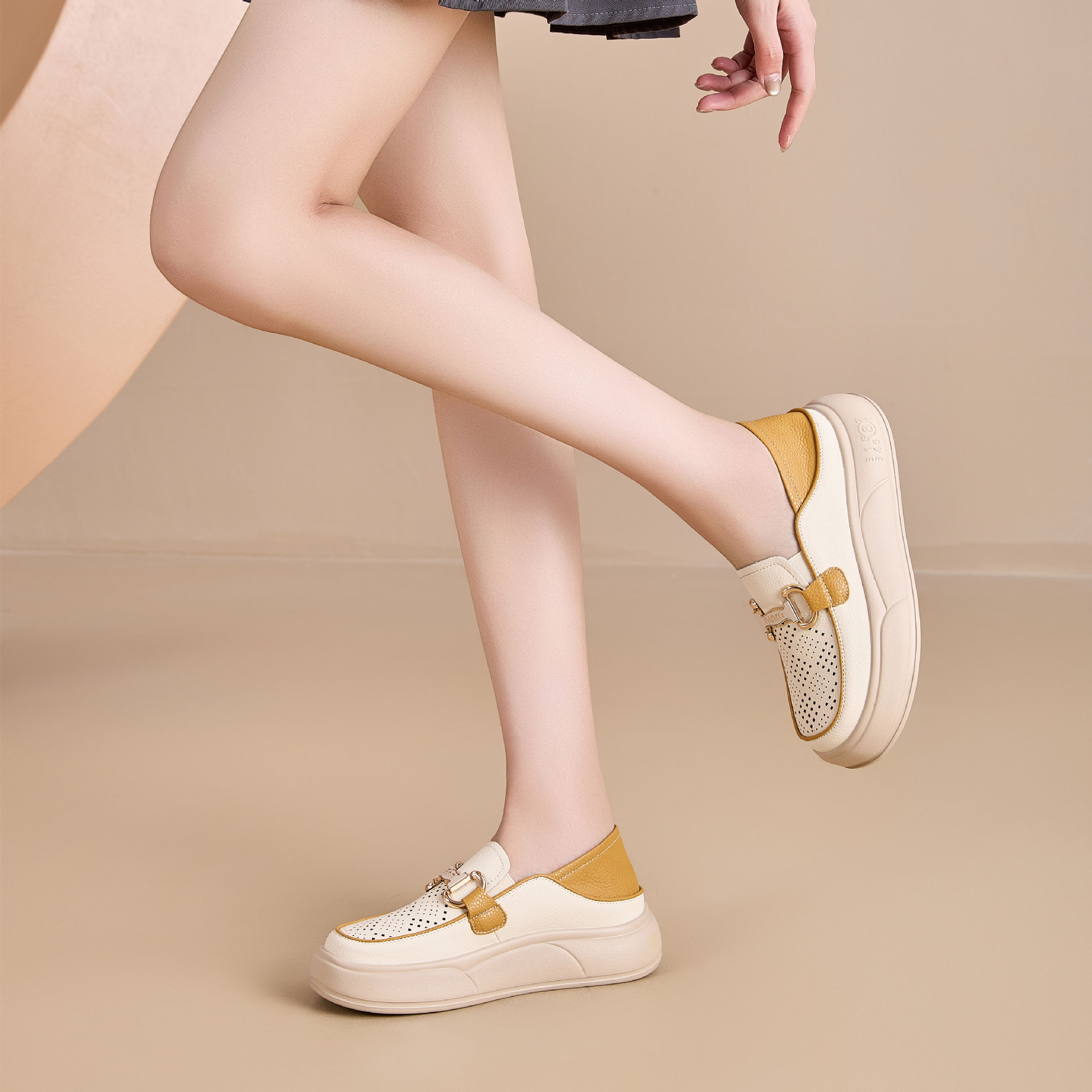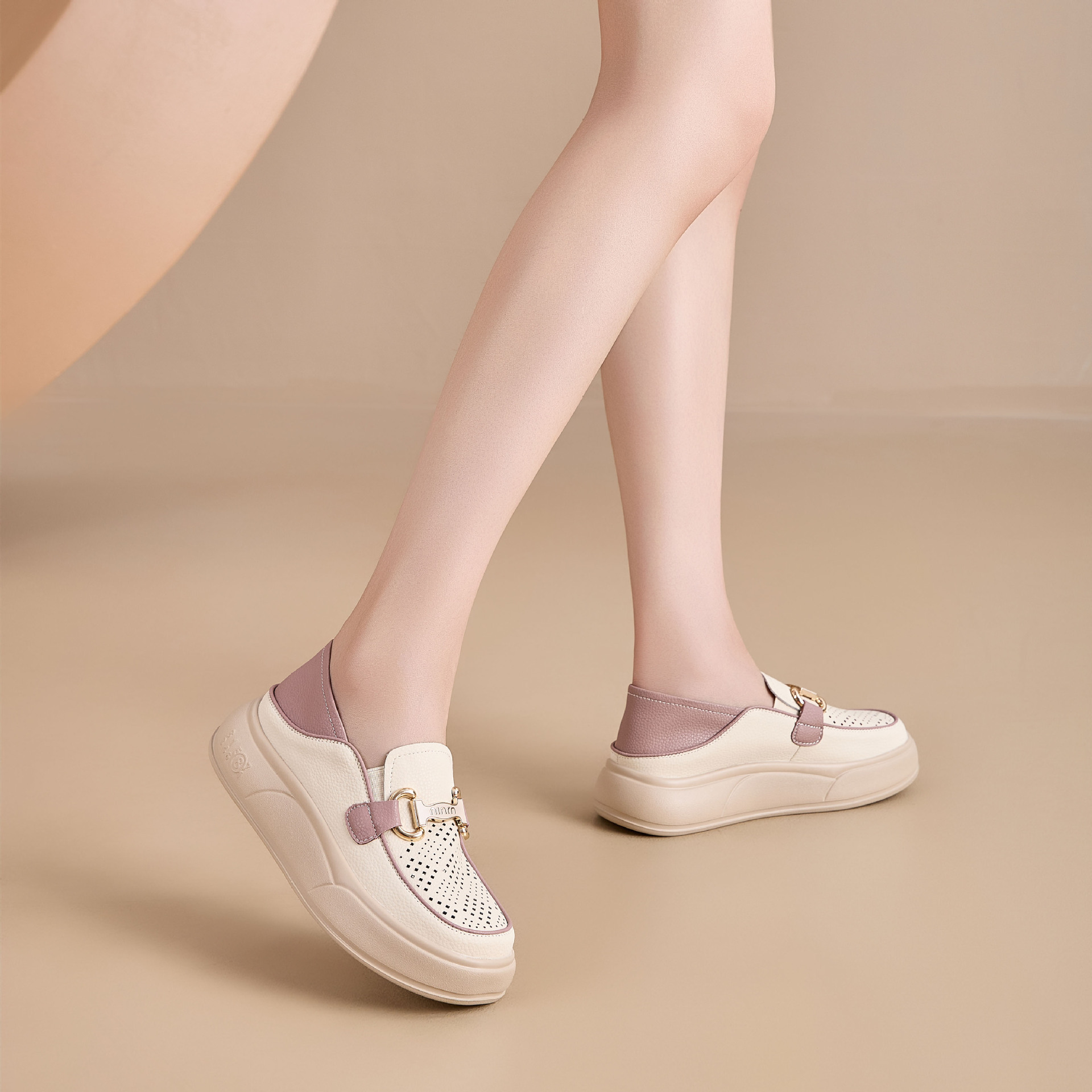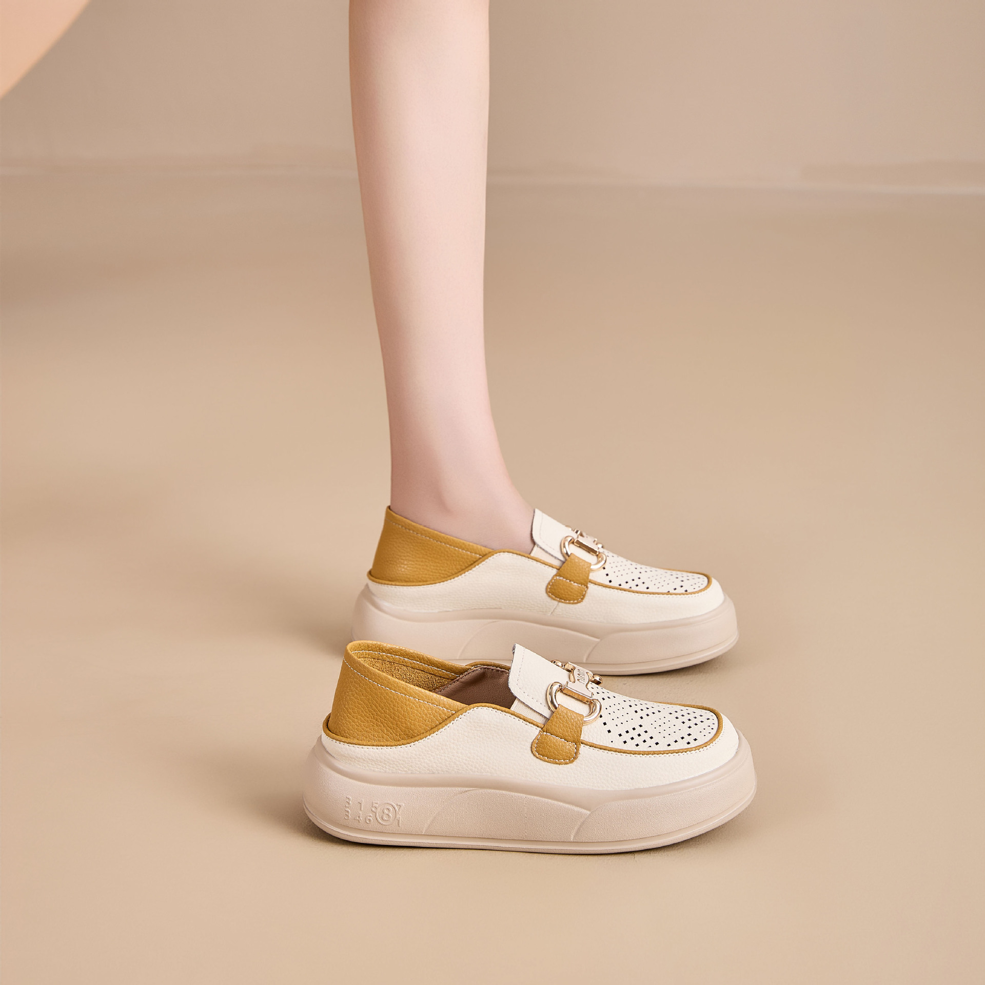 슬립 온 로퍼 여성 여름 할로우 통기성 2025 새로운 여성 신발 소프트 가죽 소프트 바텀 간호사 화이트 슈즈 578