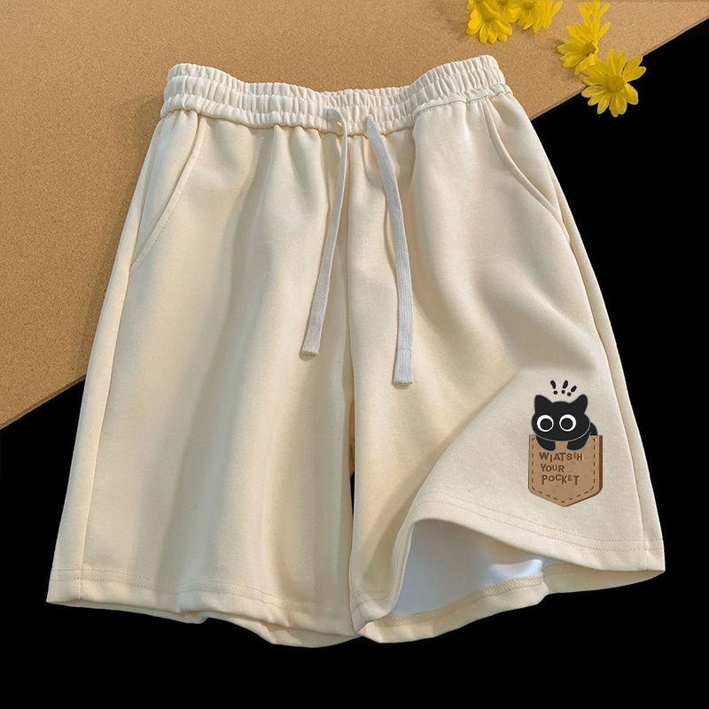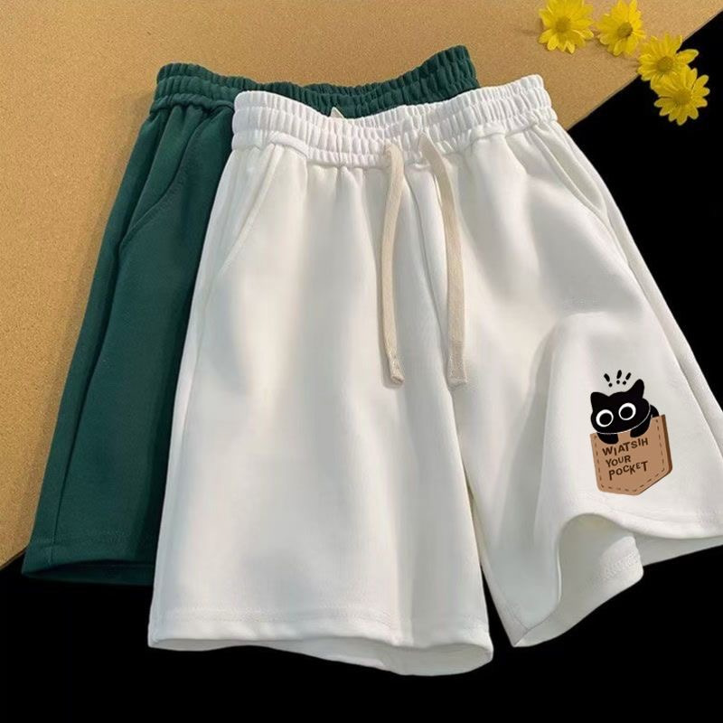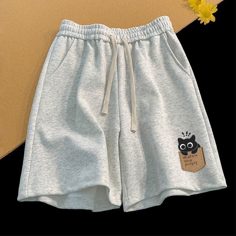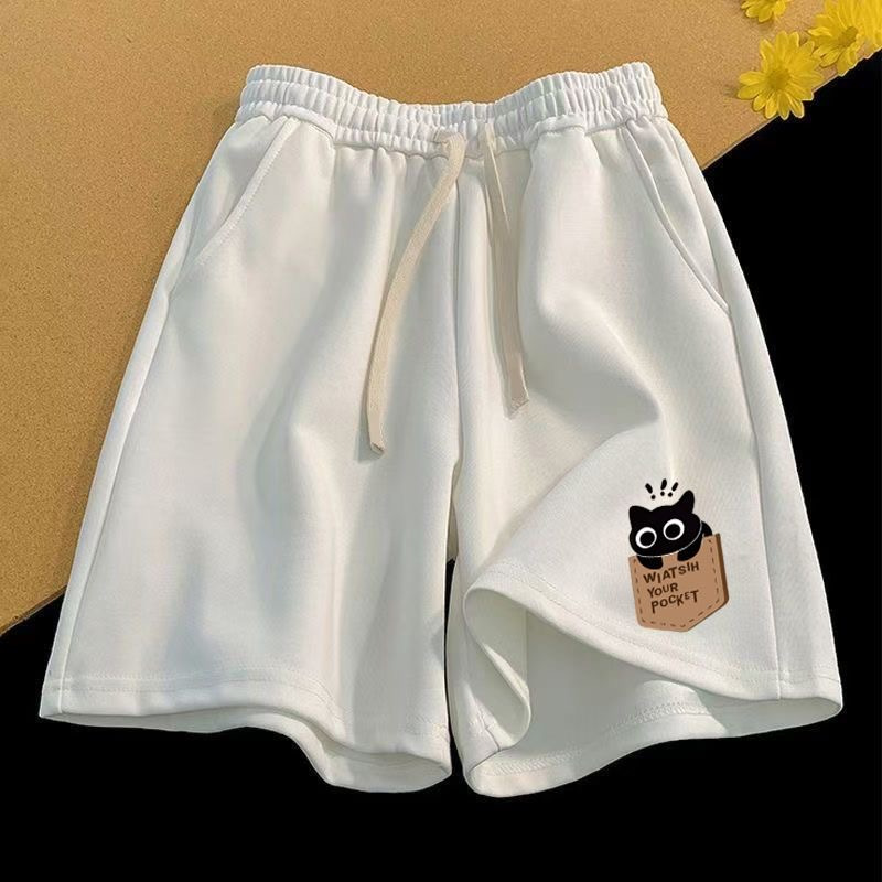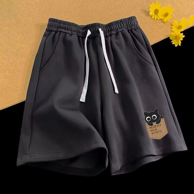 남성용 여름 스포츠 반바지, 헤비급 아메리칸 하이 스트리트 검은 고양이 프린트, 루즈한 대형 사이즈, 다용도 슬리밍 캐주얼 5부 팬츠스토어 가기