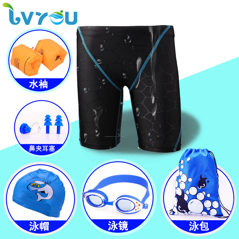 어린이 전문 경기 수영 바지, 중대형 어린이 수영 바지 학생 및 청소년 온천 속건성 무료 배송
