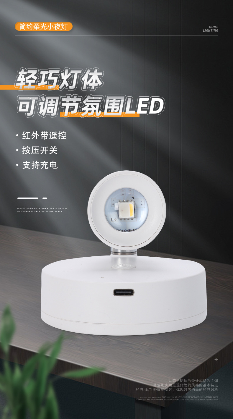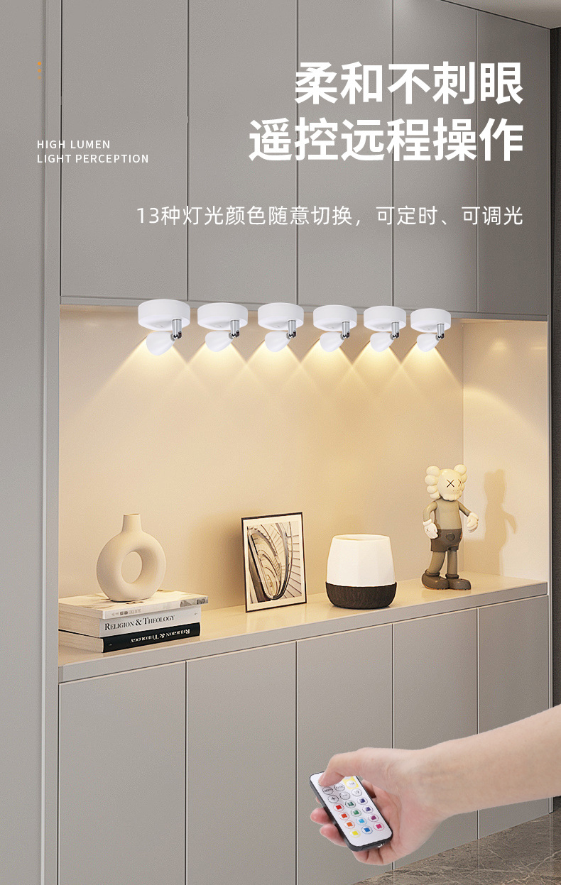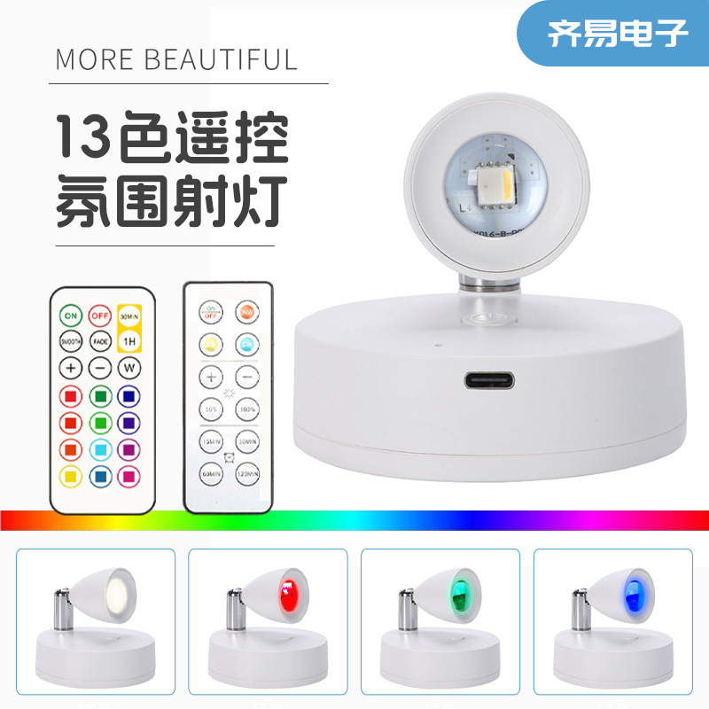 충전식 무선 벽등 분위기 조명 침실 거실 배경벽 장식 스포트라이트 기하학적 입체 LED 조명 야간등 RGB