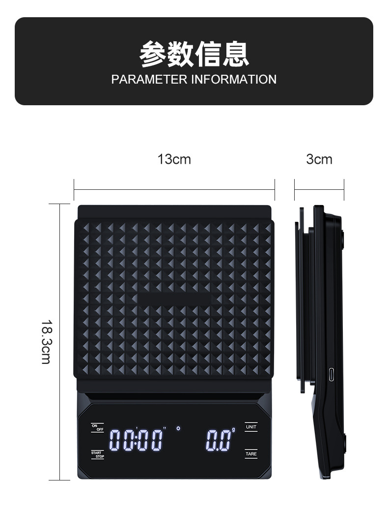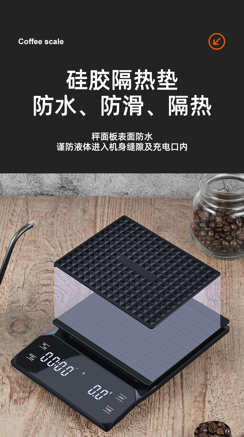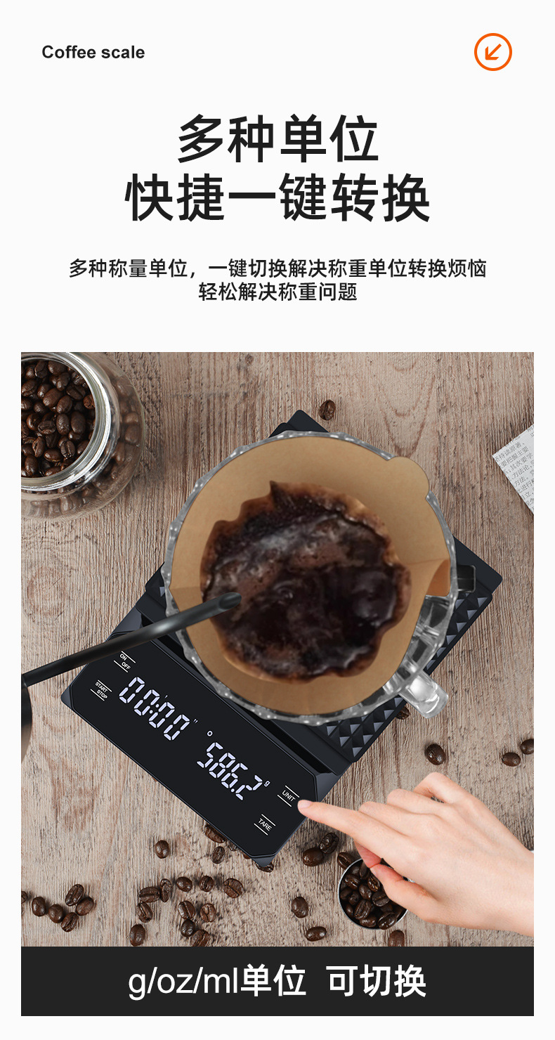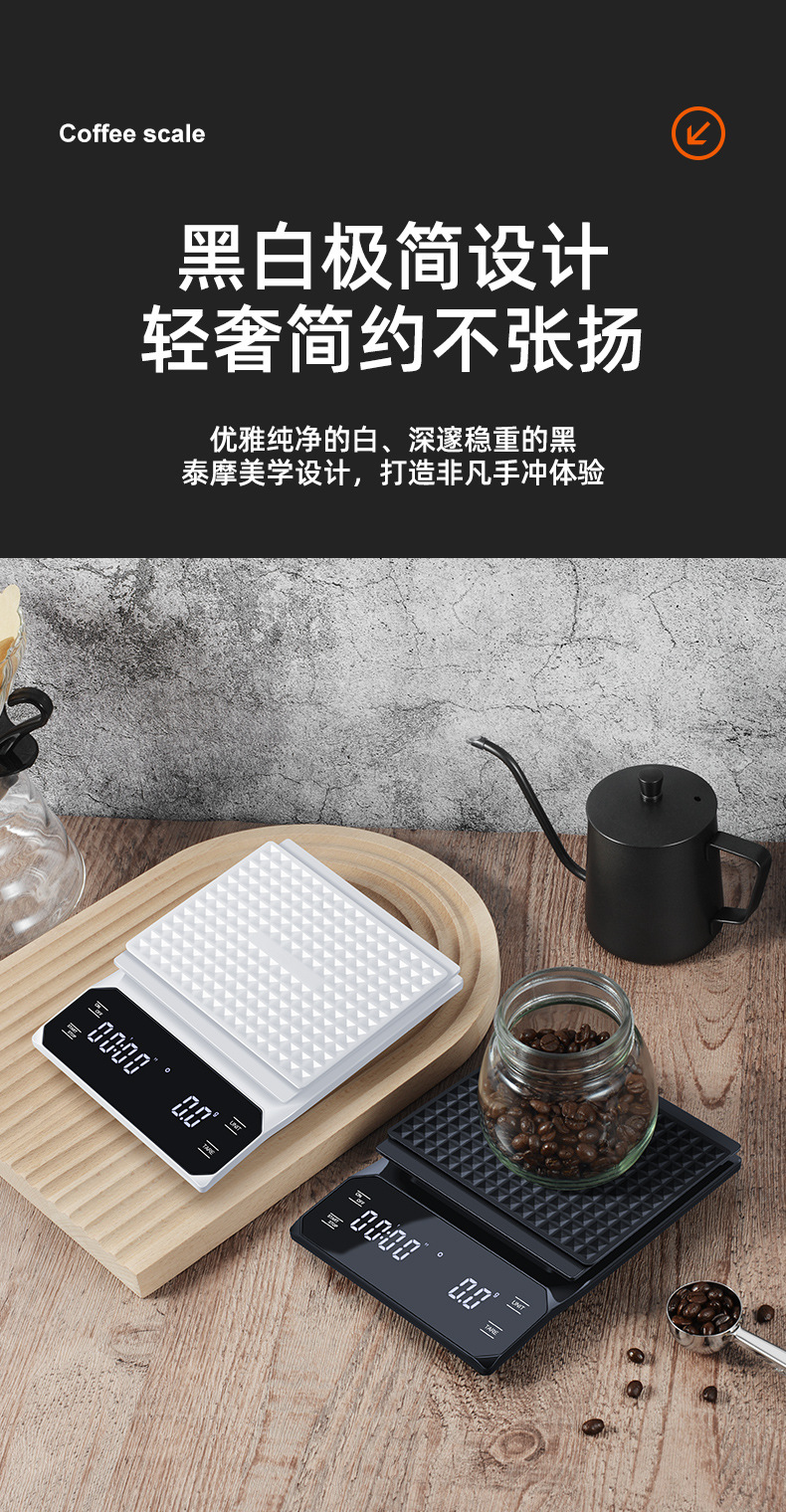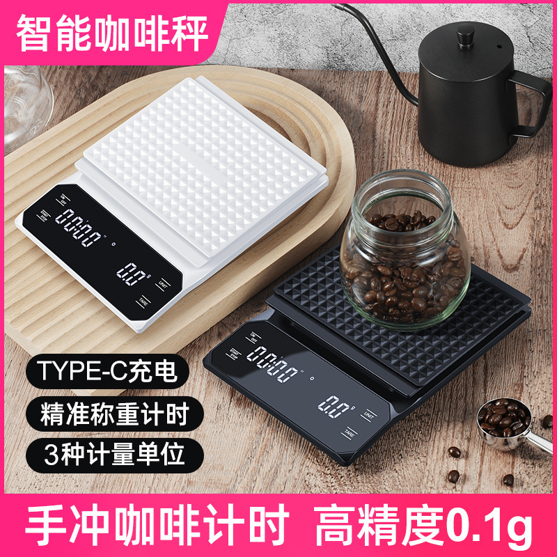 이탈리아 손으로 끓인 커피 전자 저울 LED 터치 스크린 다중 단위 변환 정확한 계량 타이밍 저울 화상 방지 주방 저울