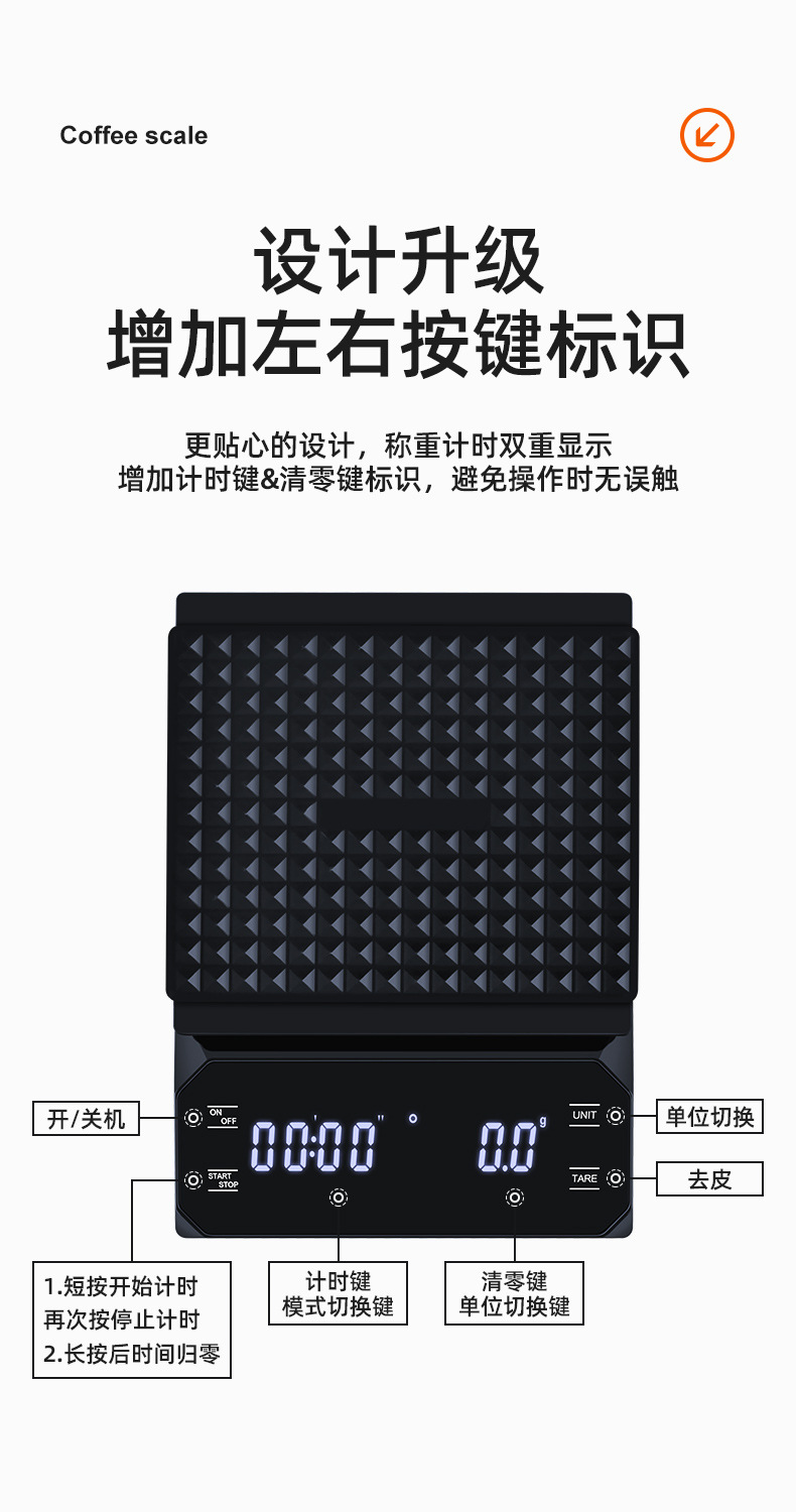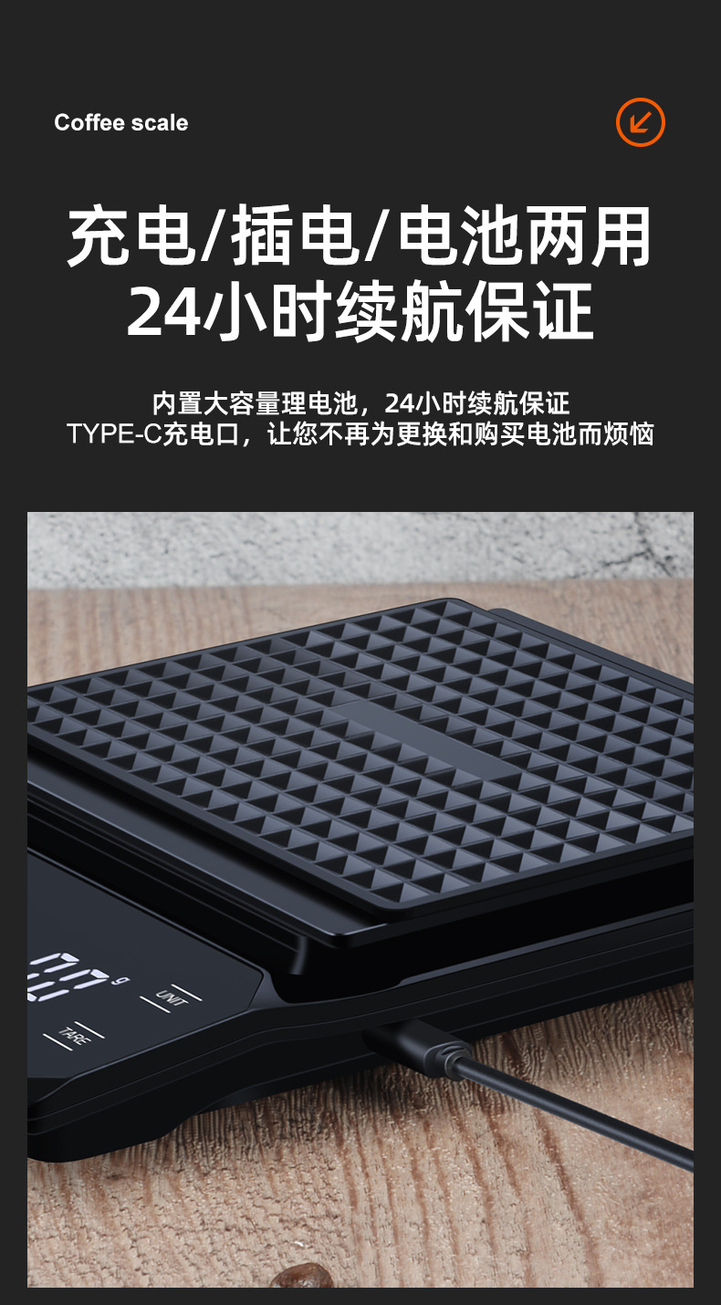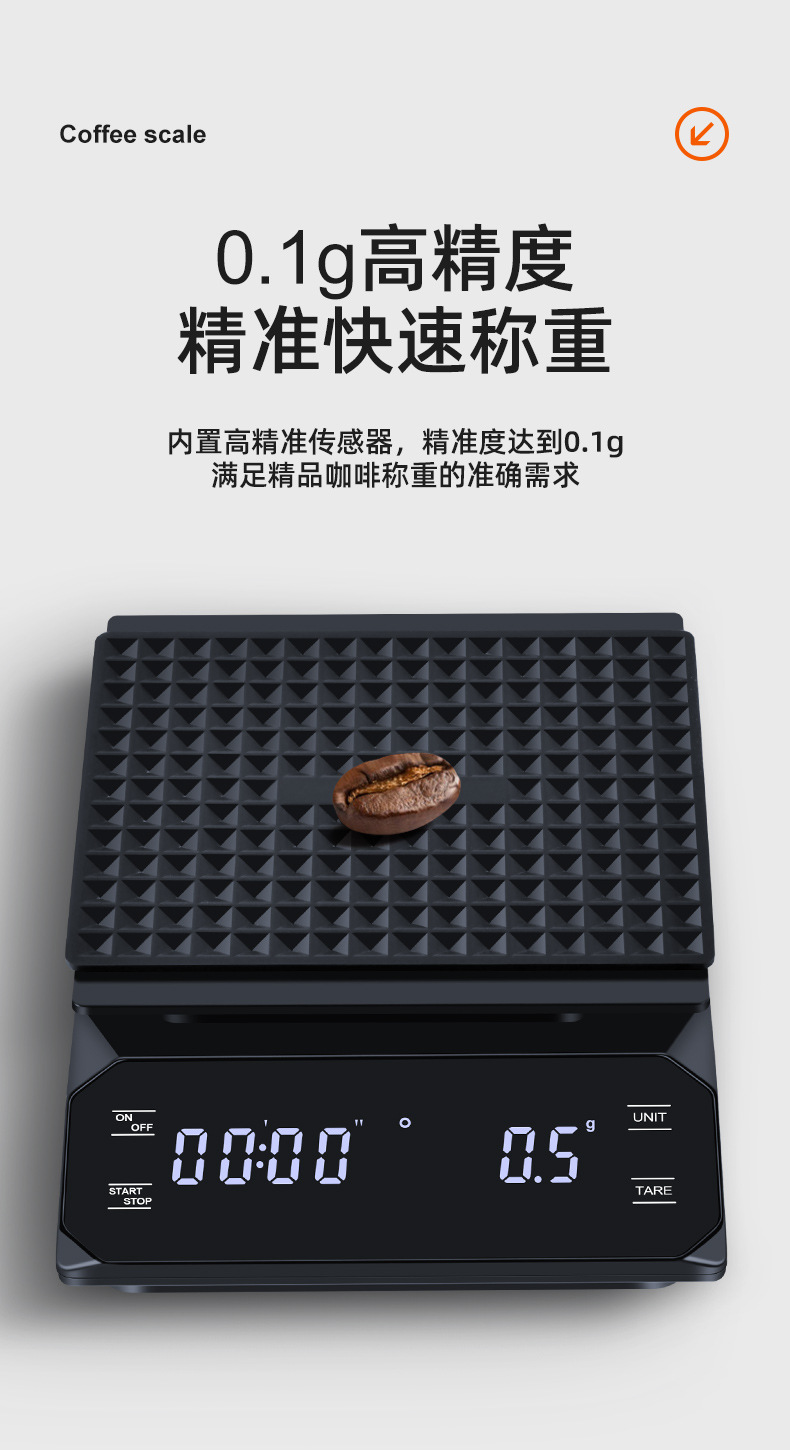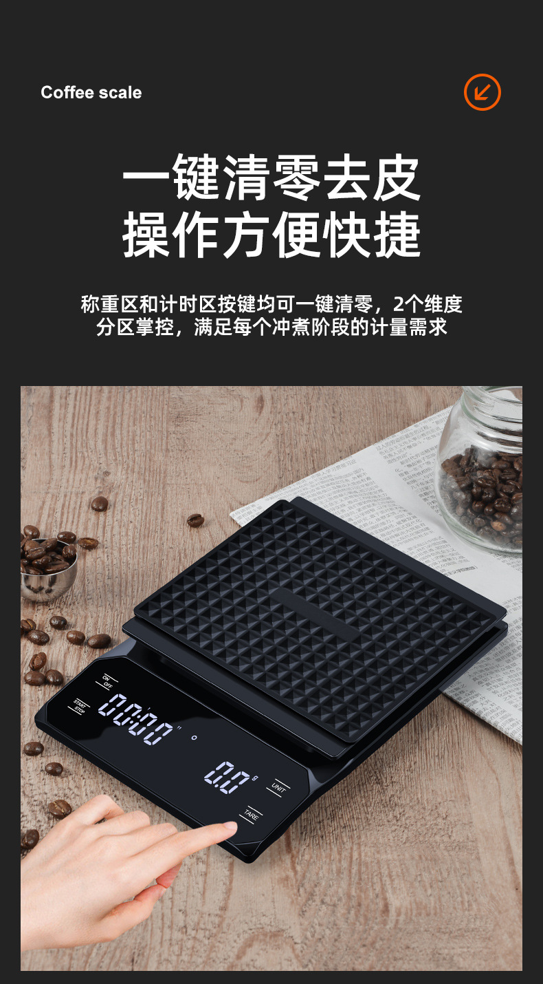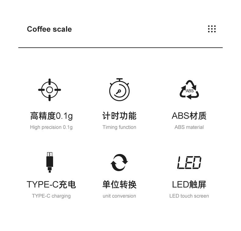 이탈리아 손으로 끓인 커피 전자 저울 LED 터치 스크린 다중 단위 변환 정확한 계량 타이밍 저울 화상 방지 주방 저울