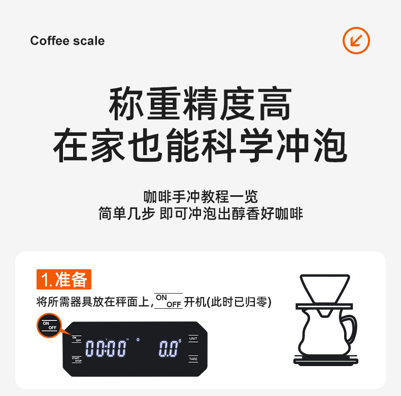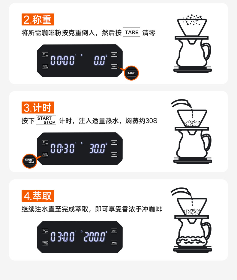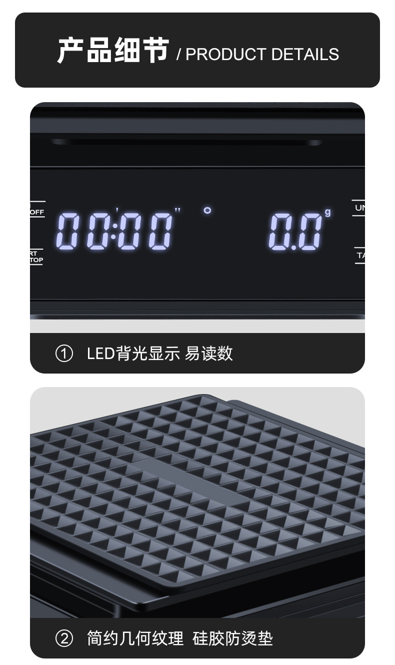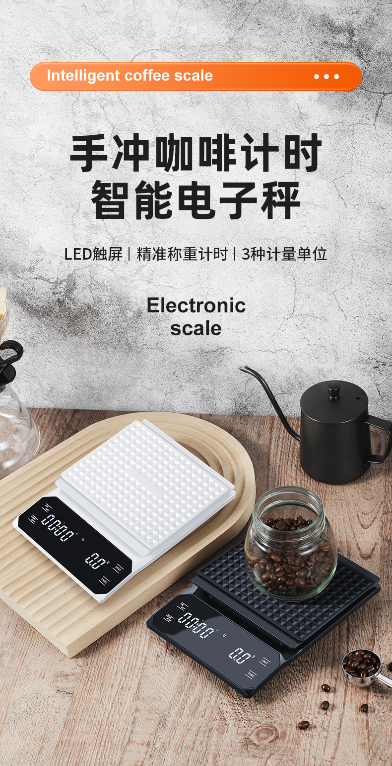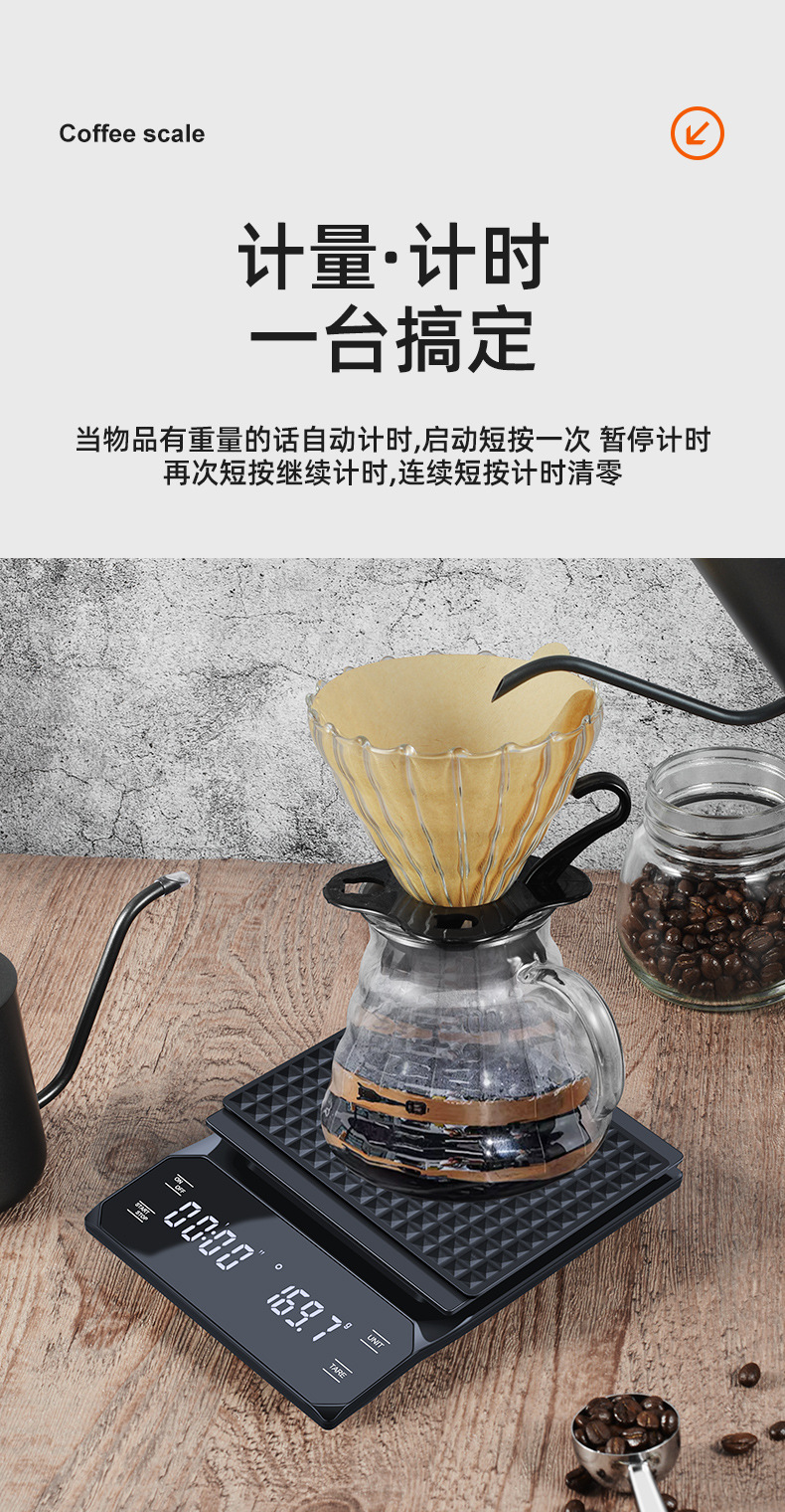 이탈리아 손으로 끓인 커피 전자 저울 LED 터치 스크린 다중 단위 변환 정확한 계량 타이밍 저울 화상 방지 주방 저울스토어 가기