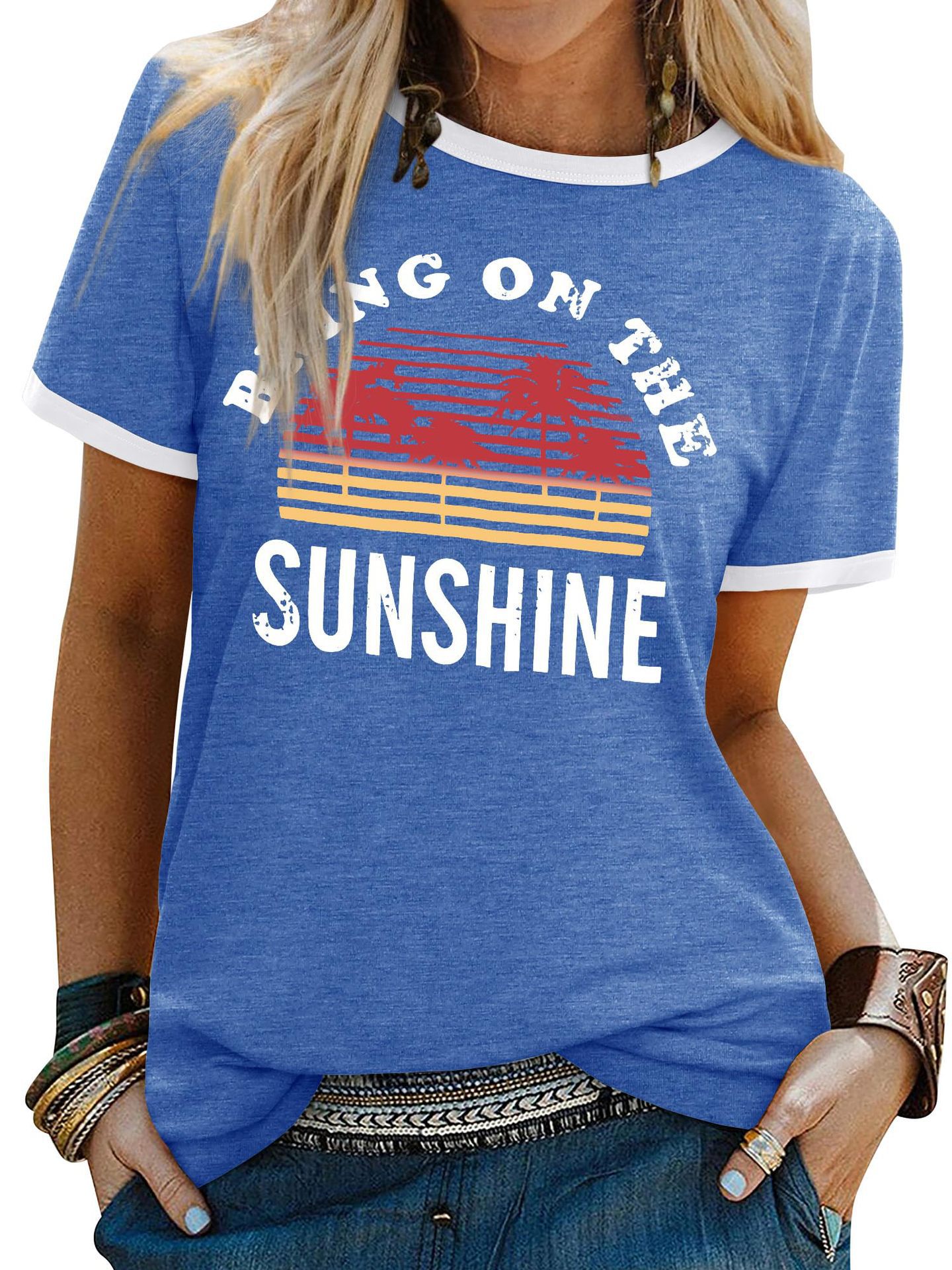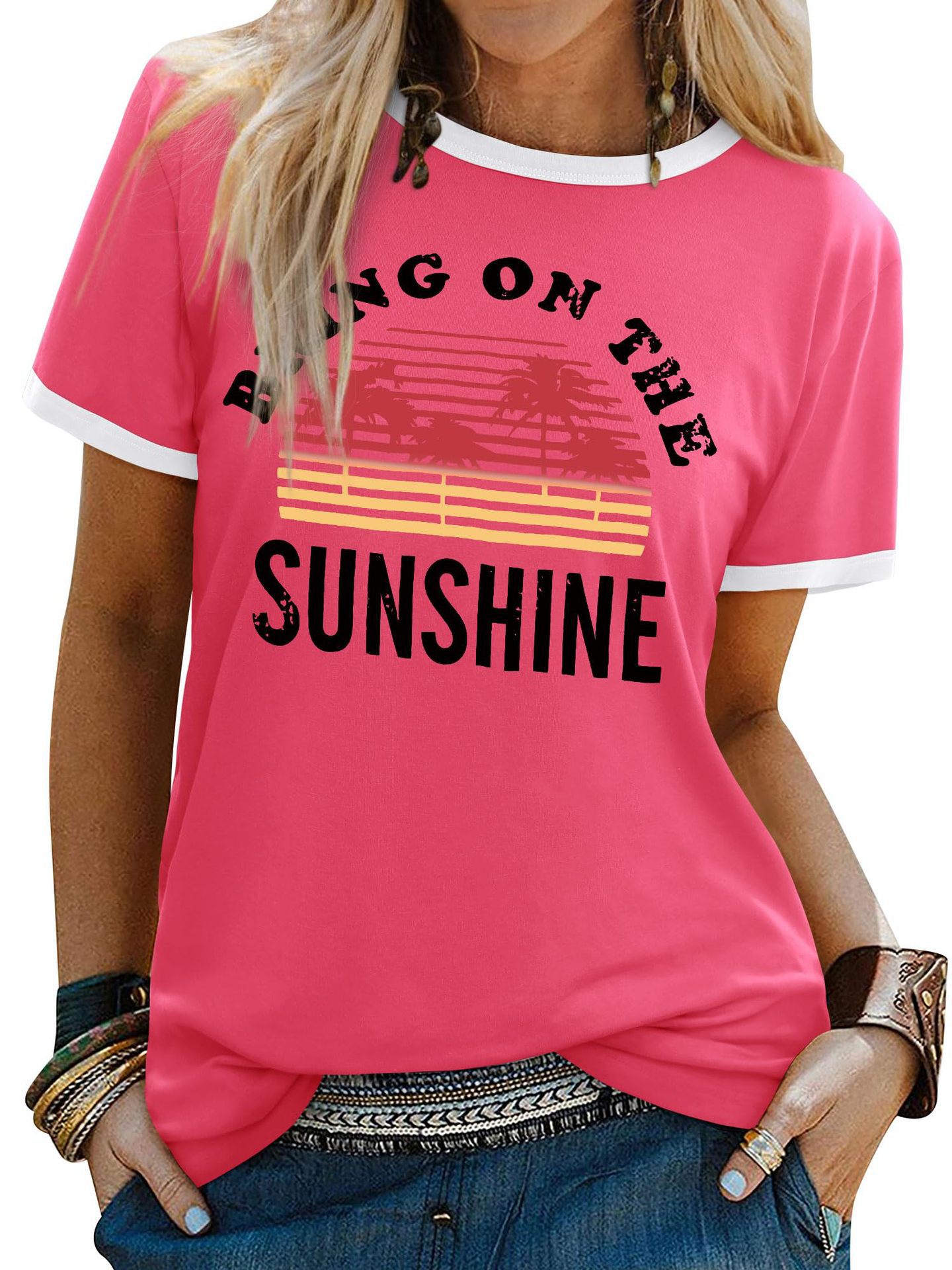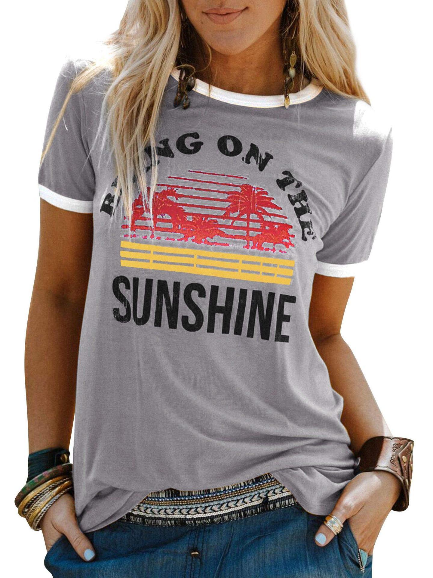 夏季短袖亚马逊女装字母印花t恤新款休闲圆领上衣欧美大码T恤
