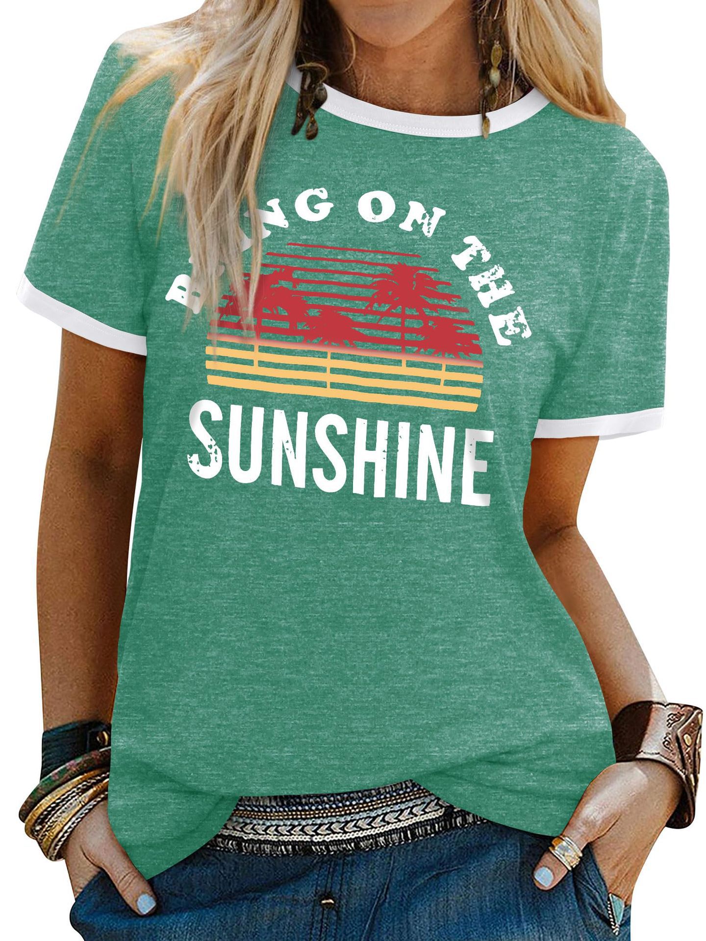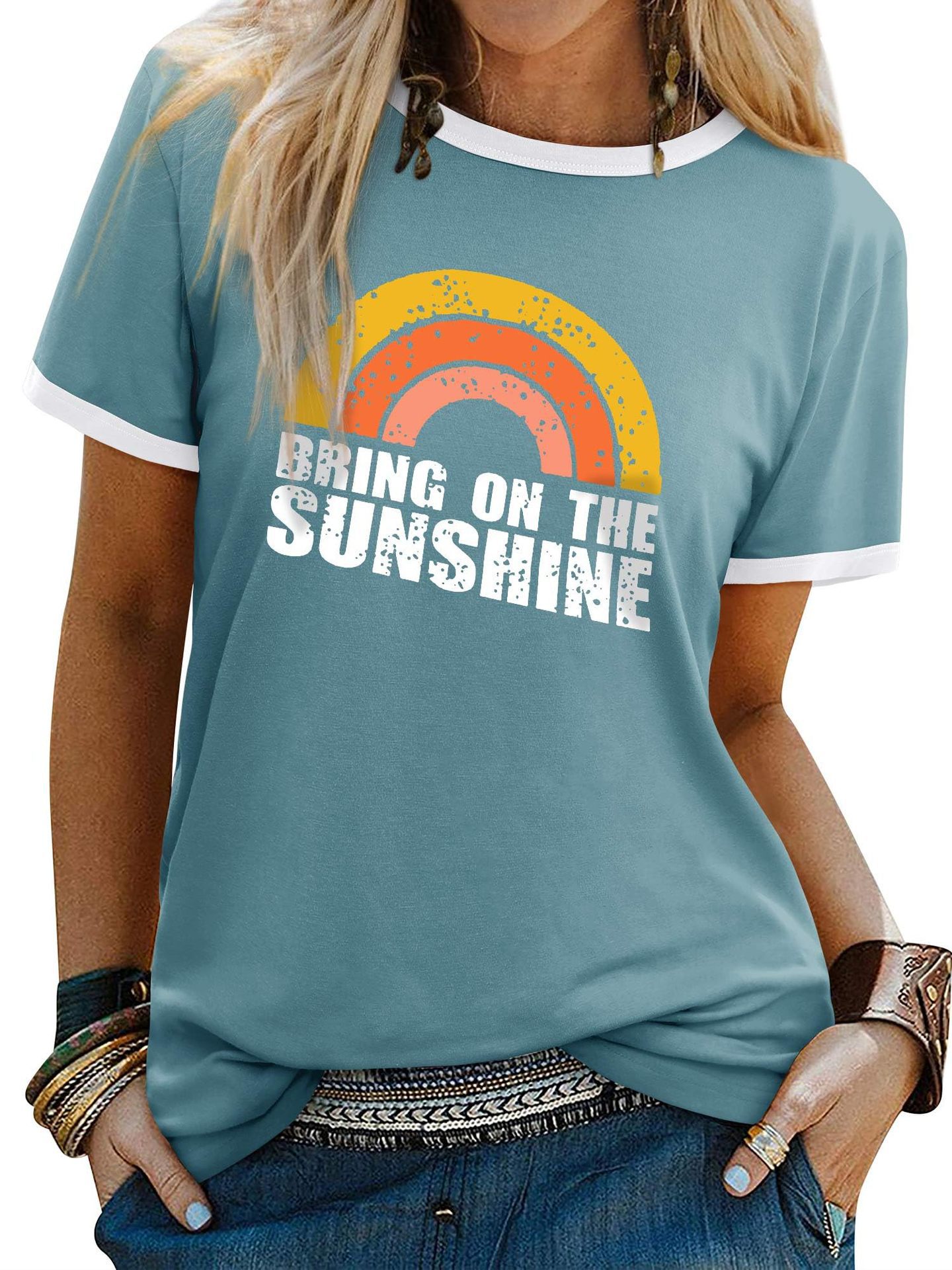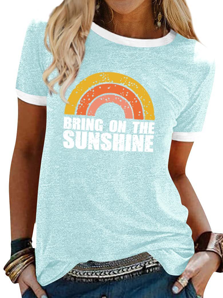 여름 반팔 아마존 여성 알파벳 인쇄 티셔츠 새로운 캐주얼 라운드 넥 탑 유럽과 미국 플러스 사이즈 티셔츠스토어 가기