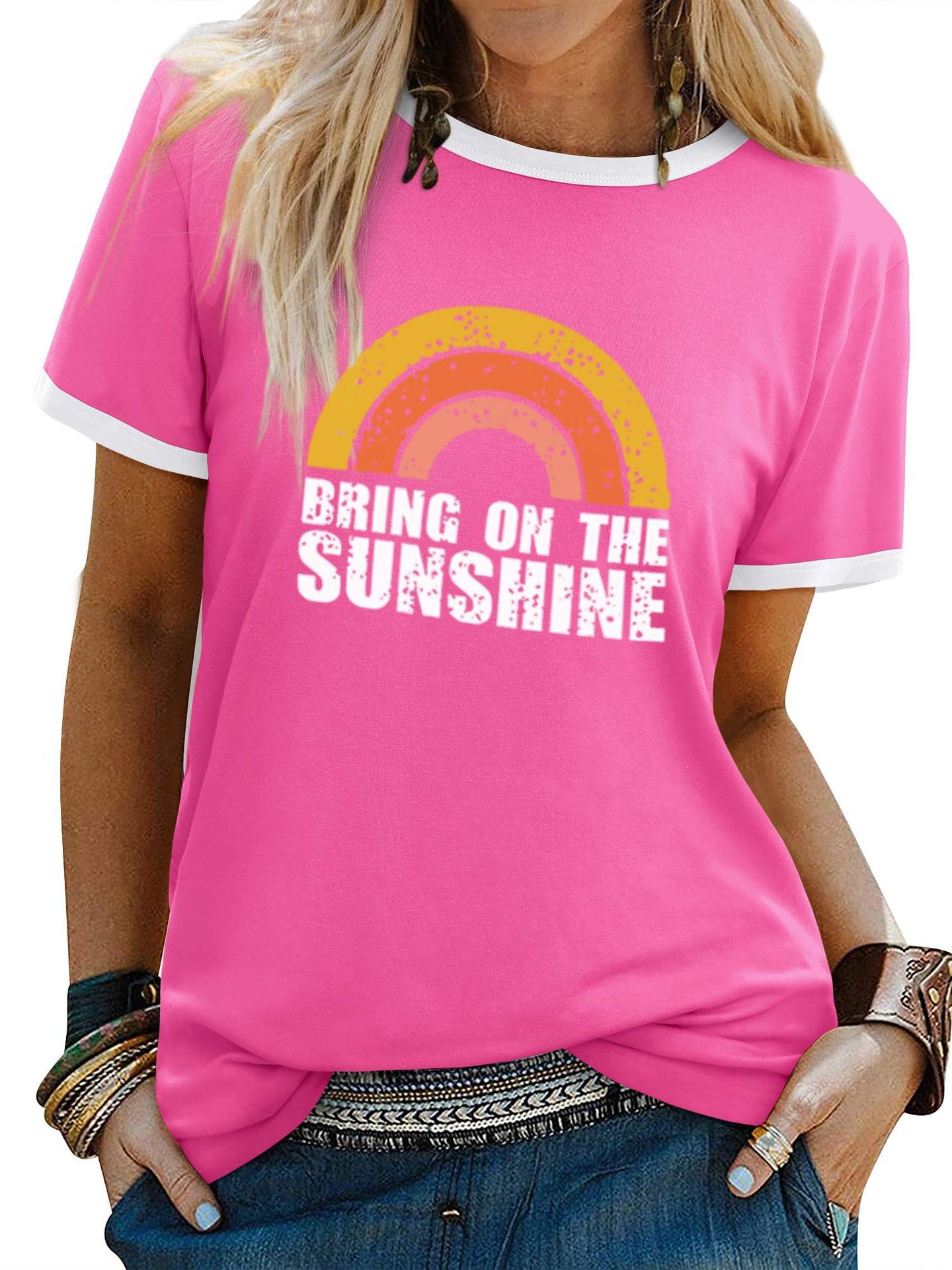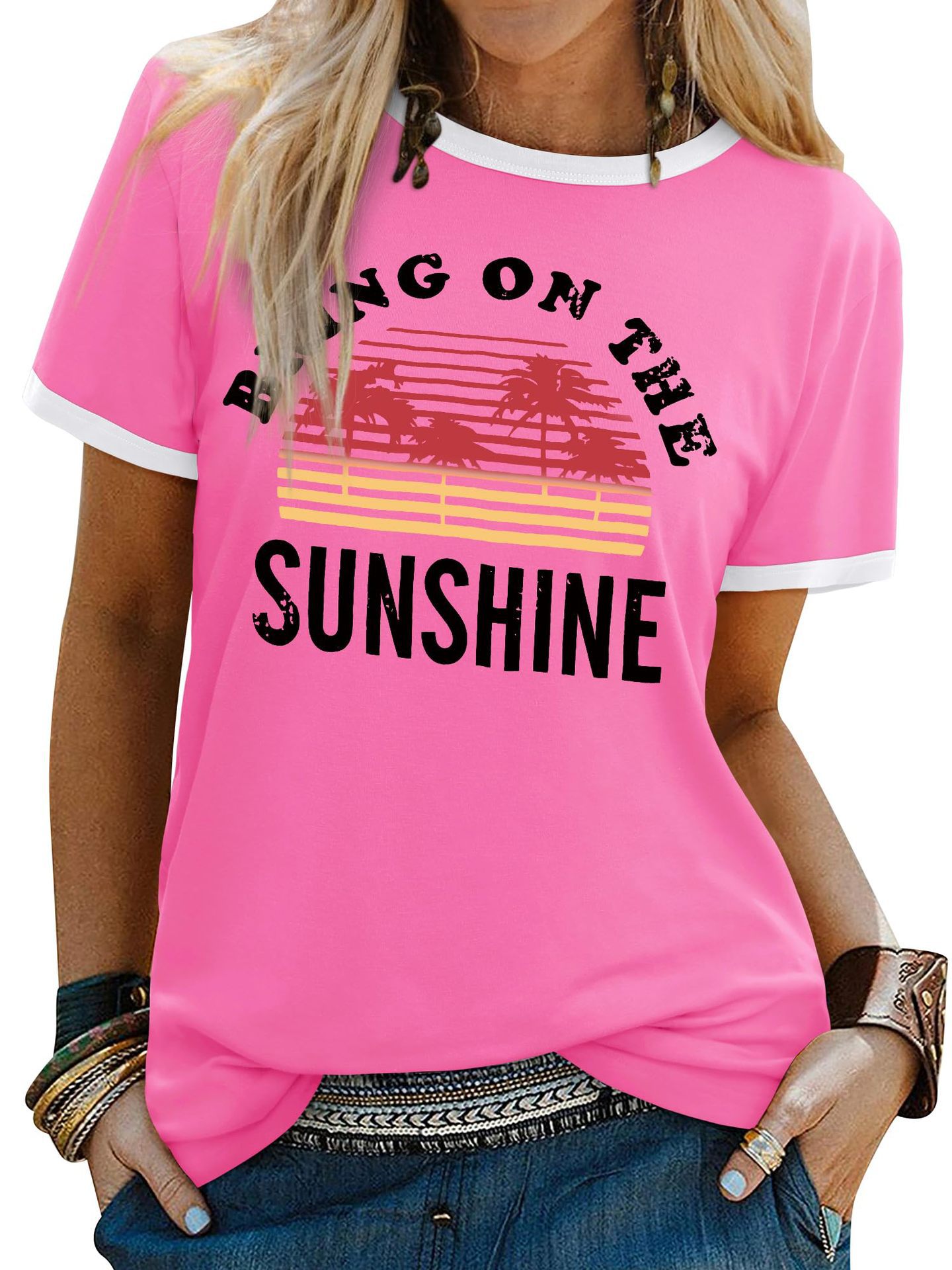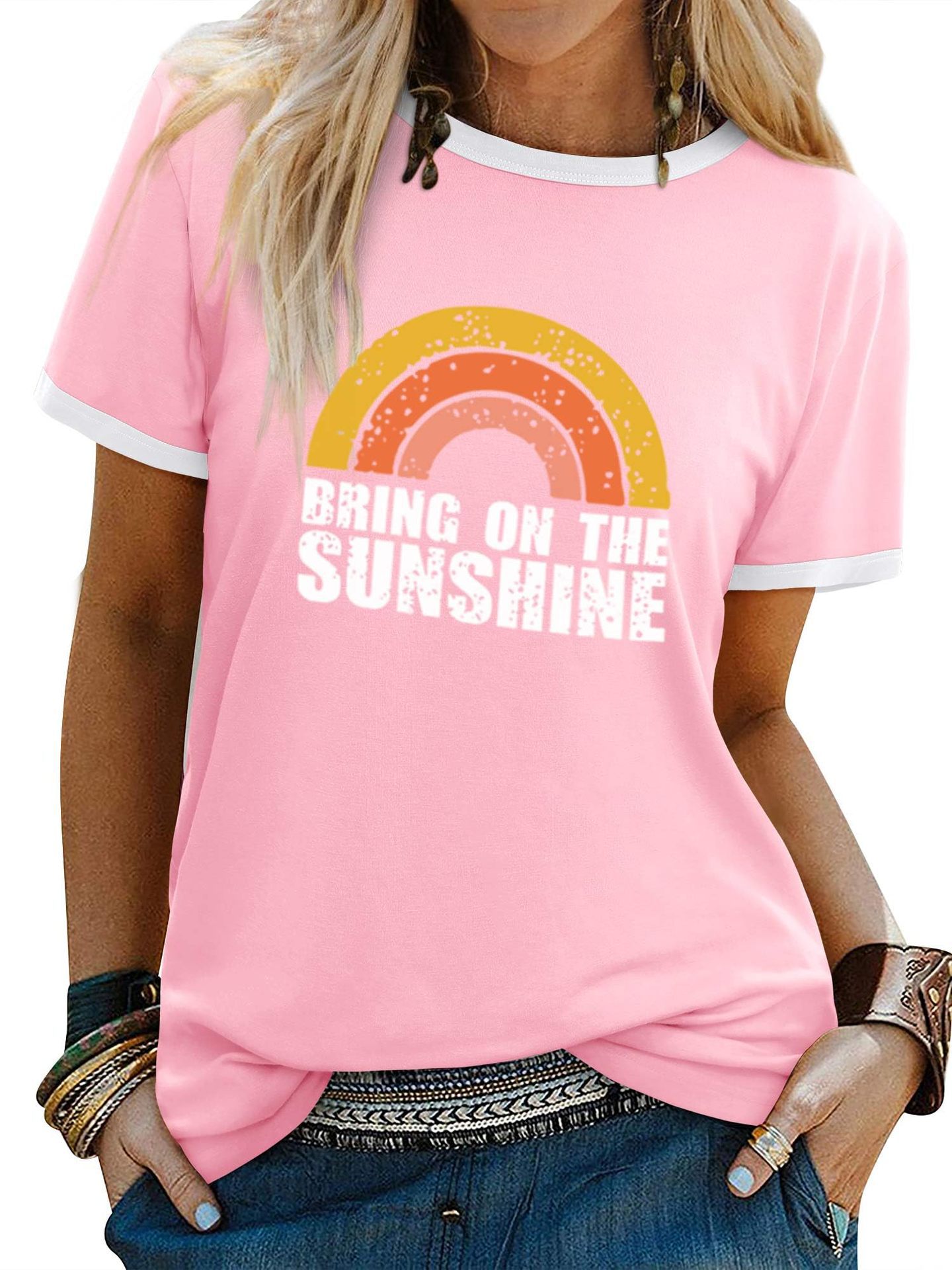 여름 반팔 아마존 여성 알파벳 인쇄 티셔츠 새로운 캐주얼 라운드 넥 탑 유럽과 미국 플러스 사이즈 티셔츠스토어 가기