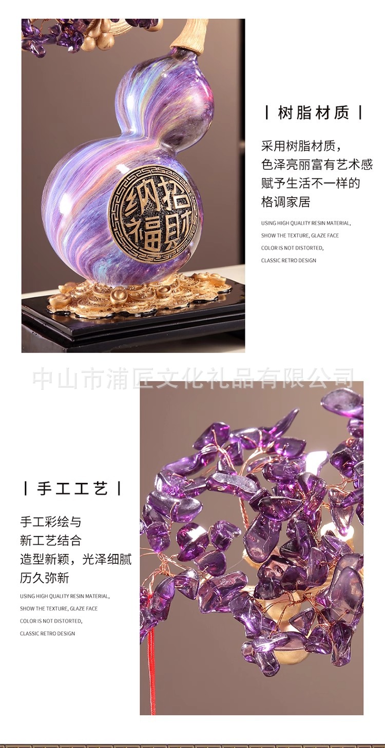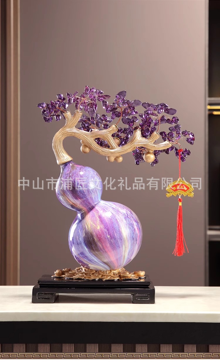 새로운 중국 스타일 보라색 Qi Donglai Gourd 장식품 거실 TV 내각 와인 캐비닛 장식 이동 선물 새로운 가정 선물스토어 가기