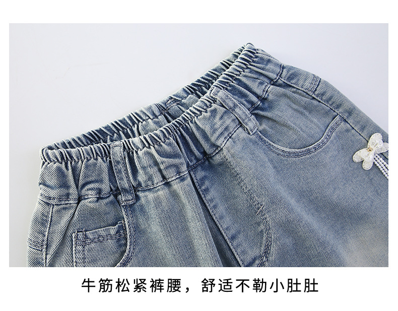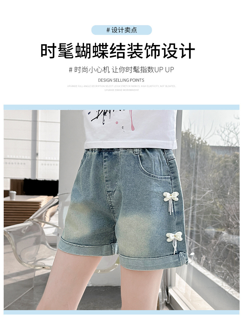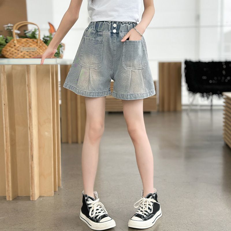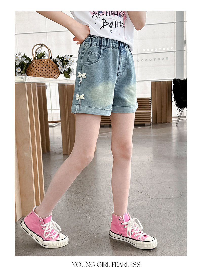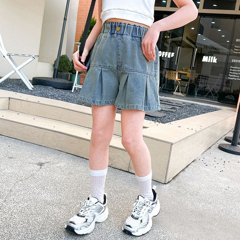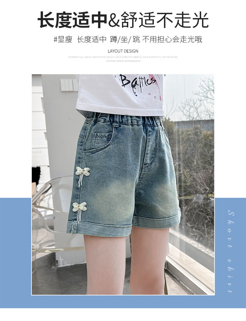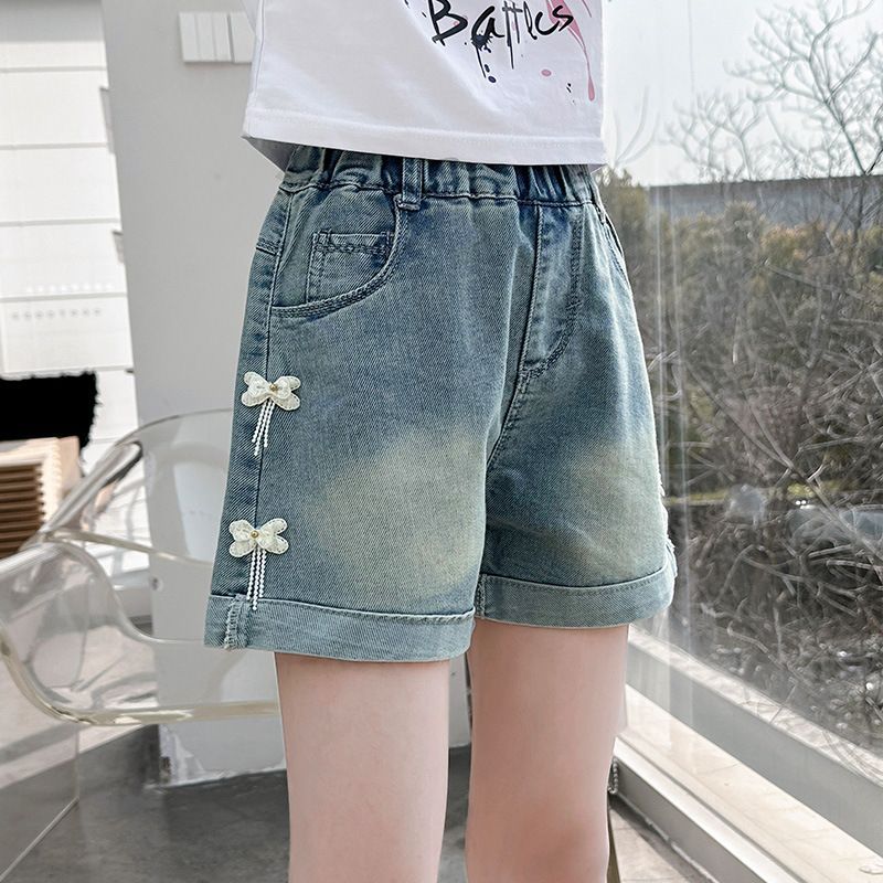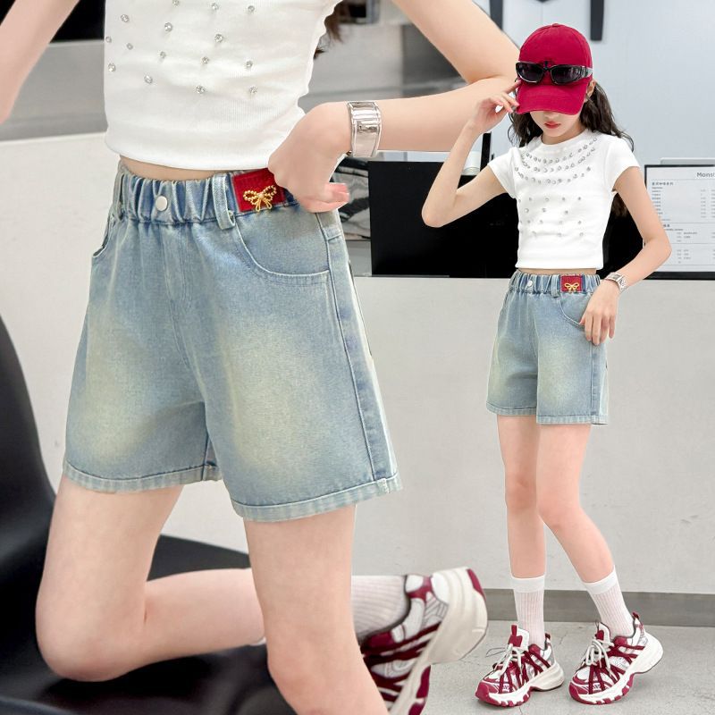 소녀 청바지 여름 2025 새로운 복장 여름 아동복 어린이 바지 어린이 큰 어린이 얇은 반바지 뜨거운 바지스토어 가기