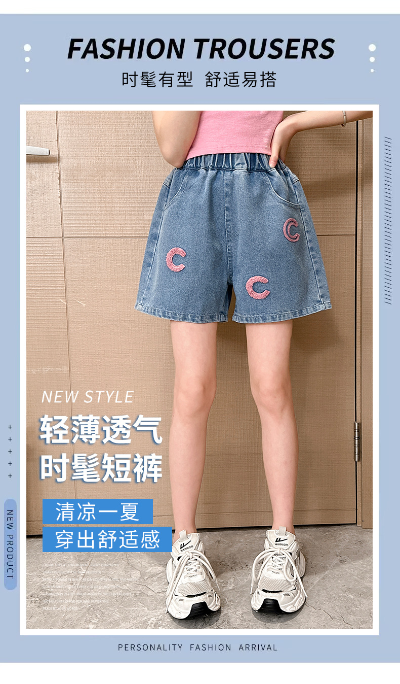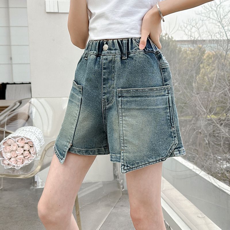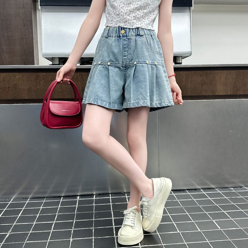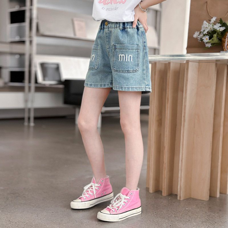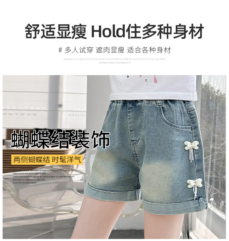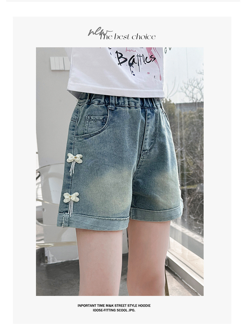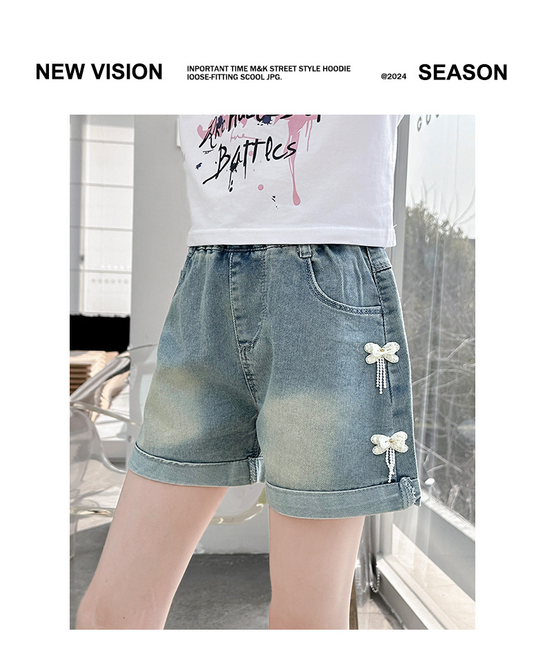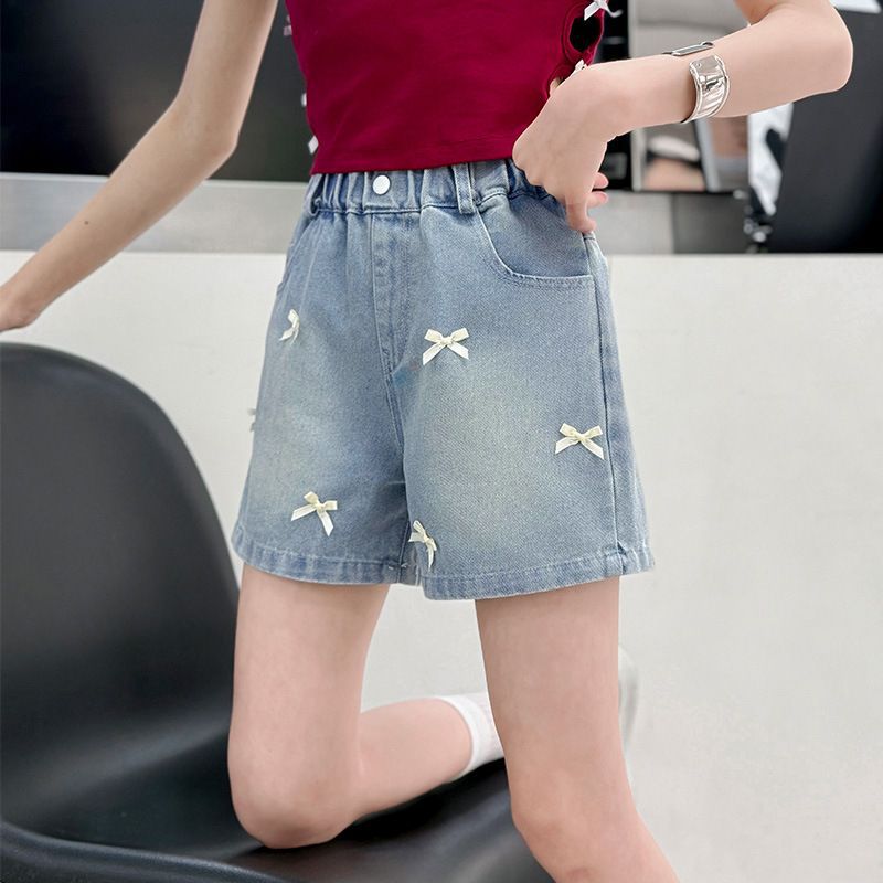 소녀 청바지 여름 2025 새로운 복장 여름 아동복 어린이 바지 어린이 큰 어린이 얇은 반바지 뜨거운 바지스토어 가기