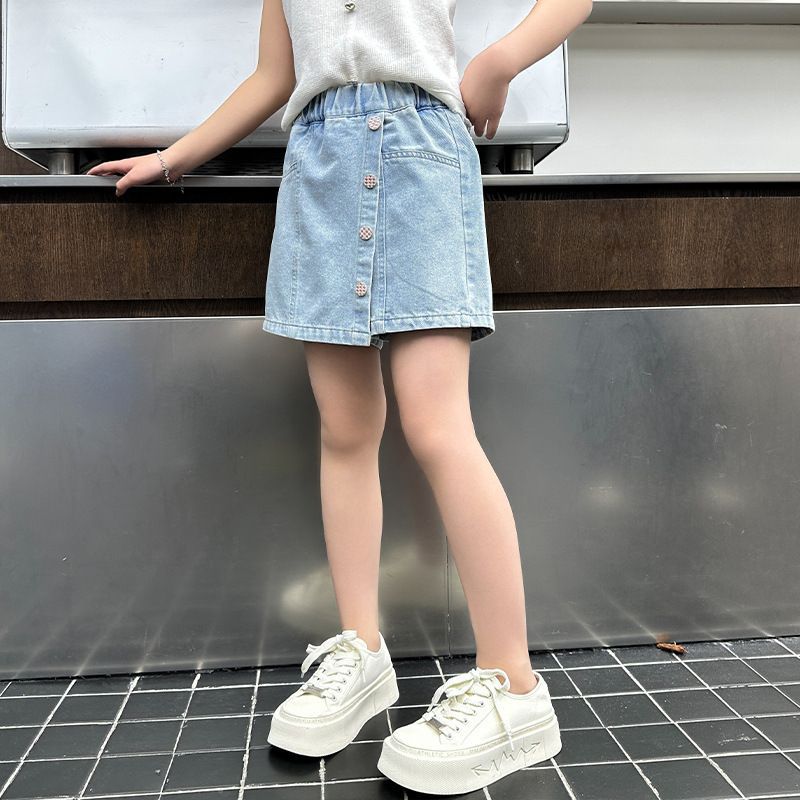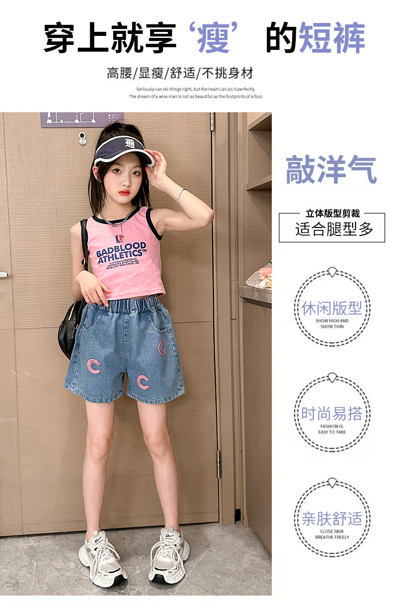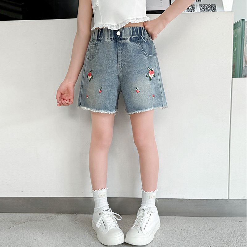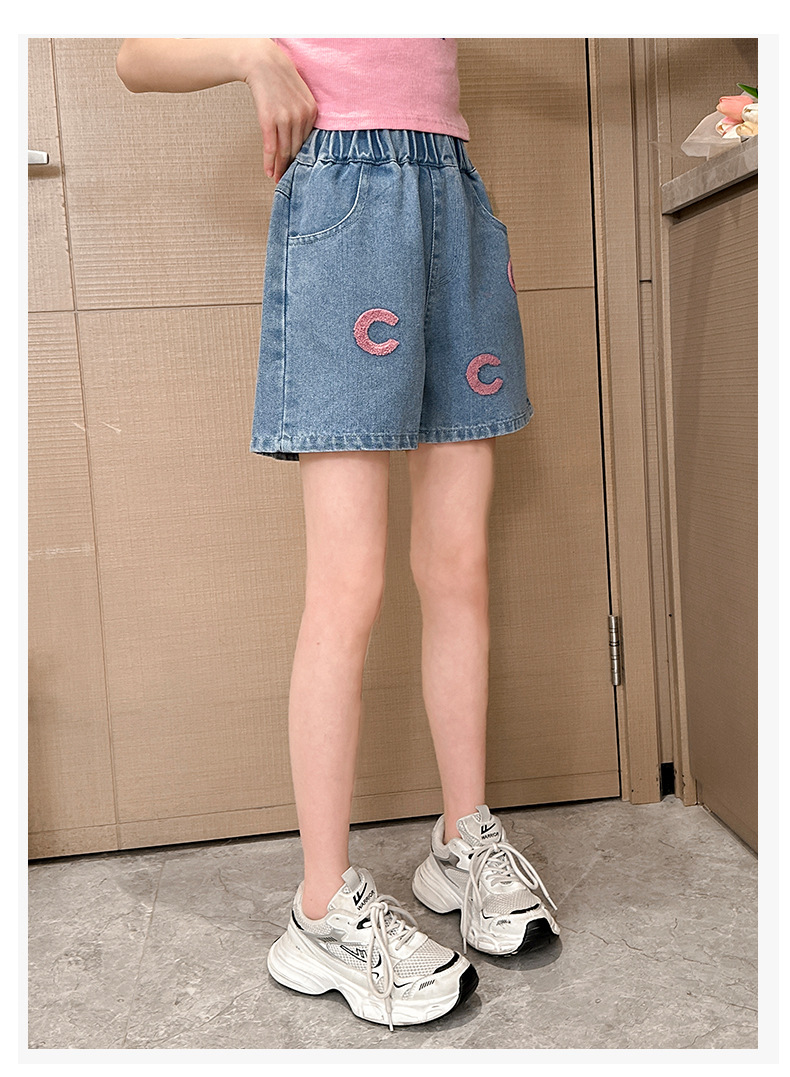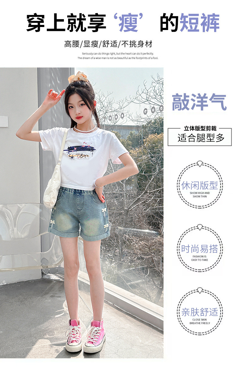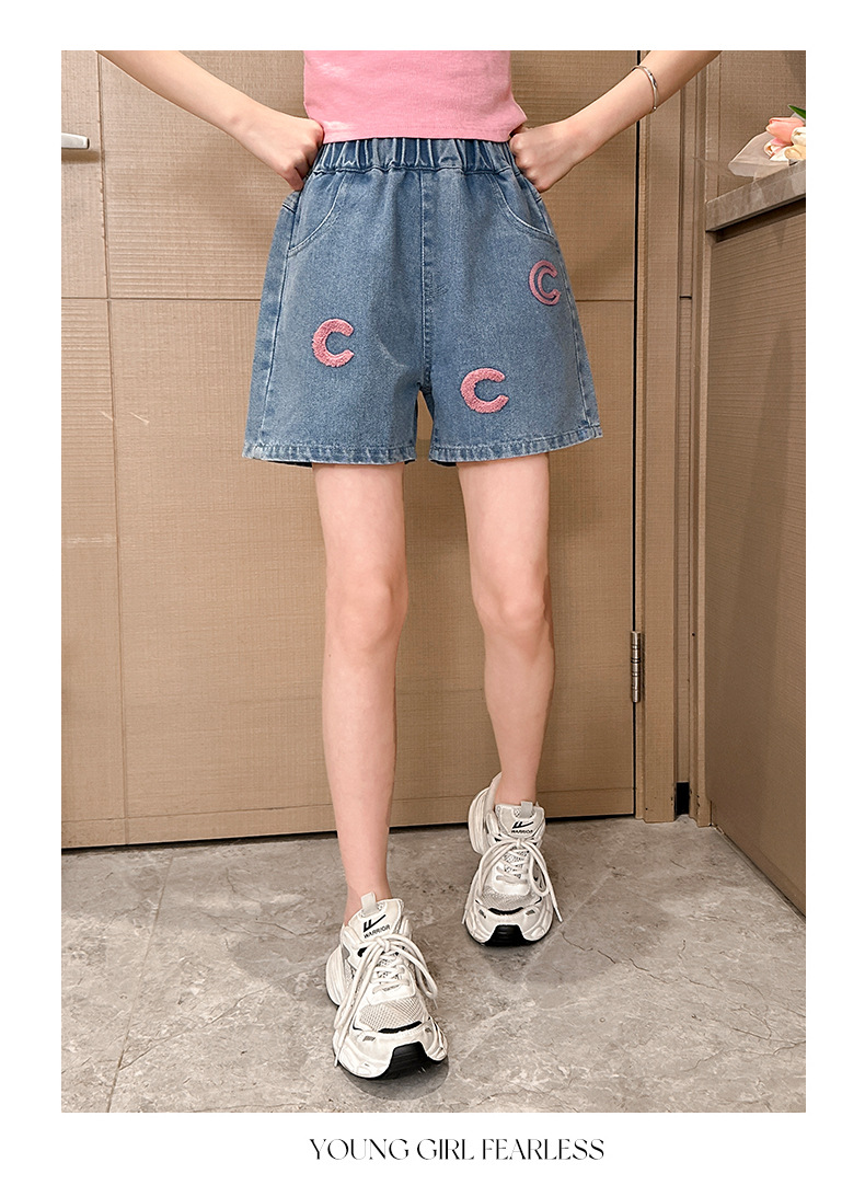 소녀 청바지 여름 2025 새로운 복장 여름 아동복 어린이 바지 어린이 큰 어린이 얇은 반바지 뜨거운 바지스토어 가기