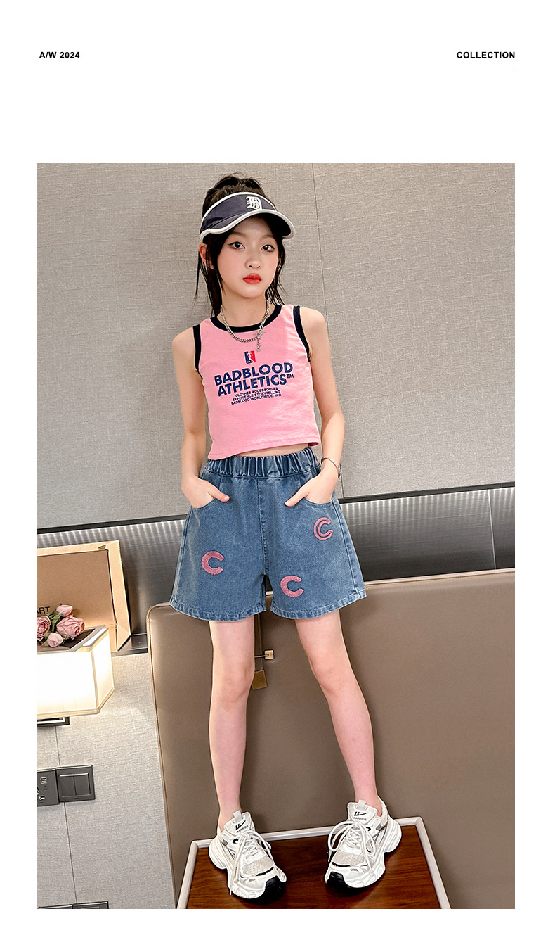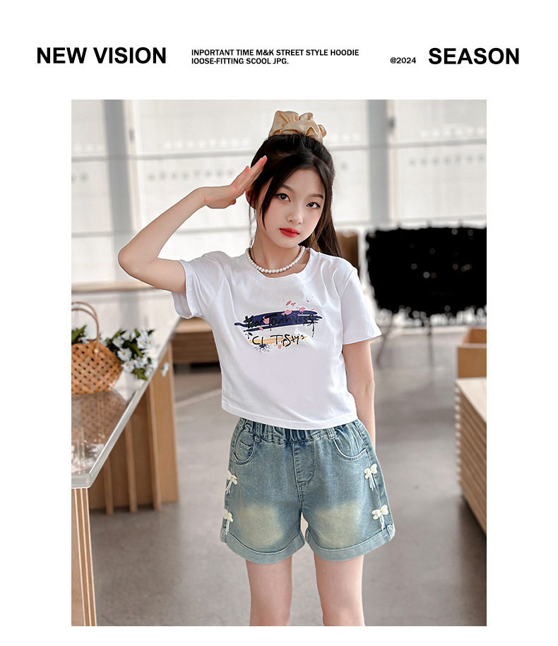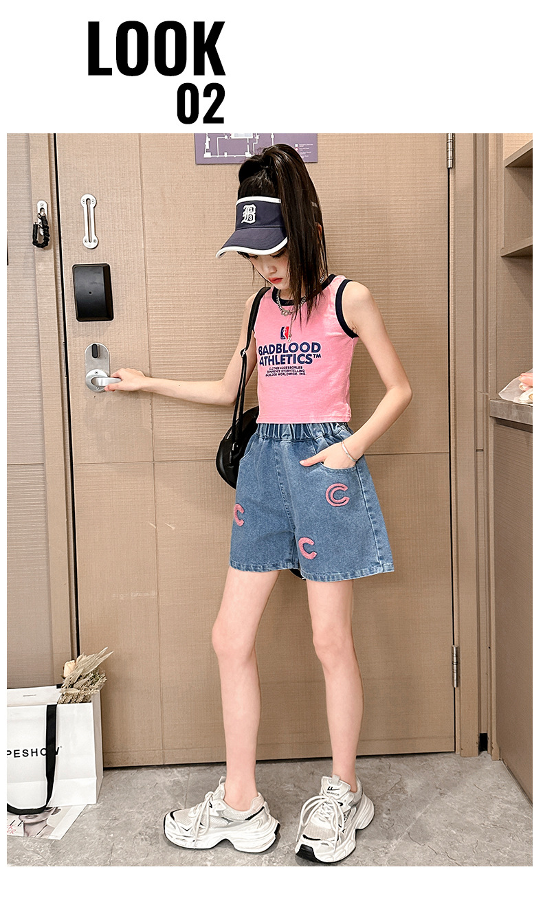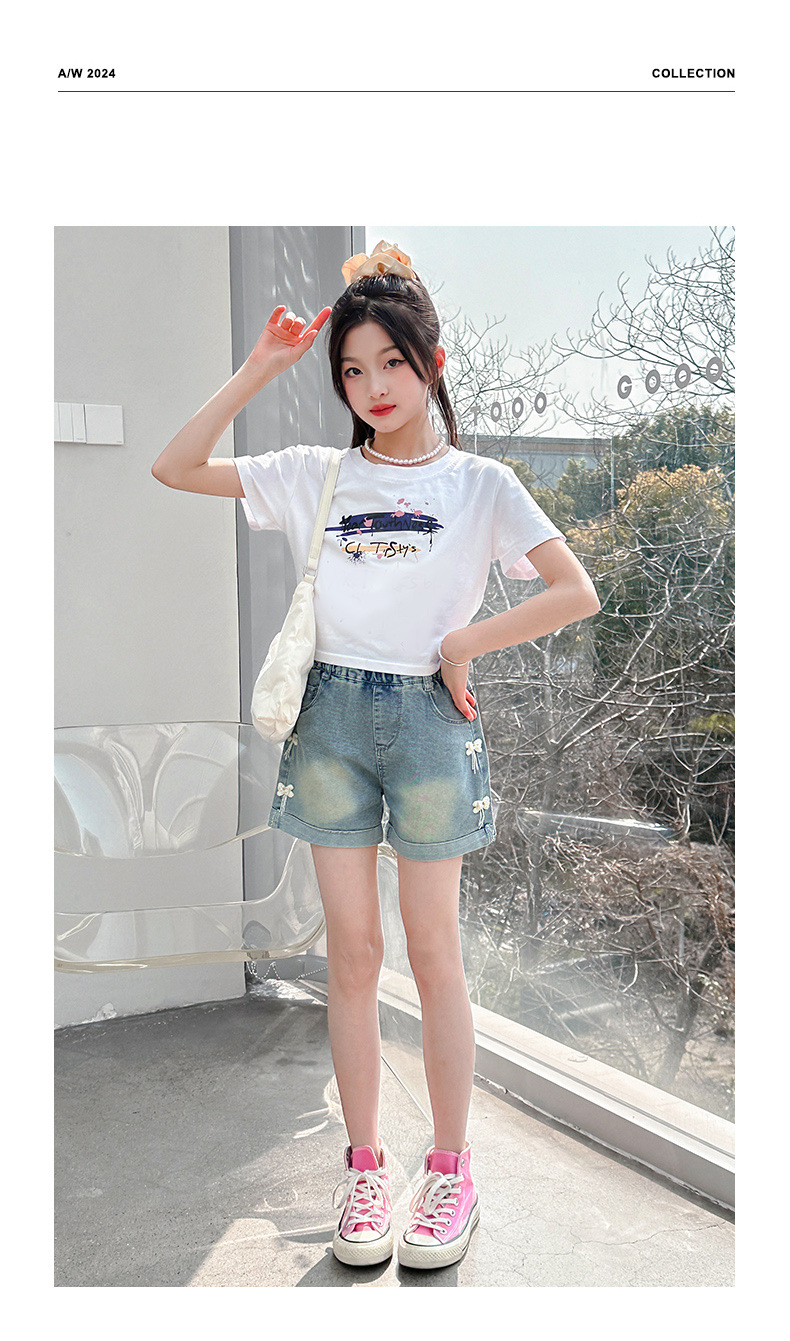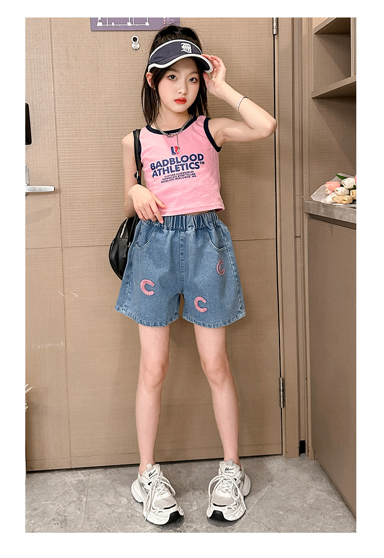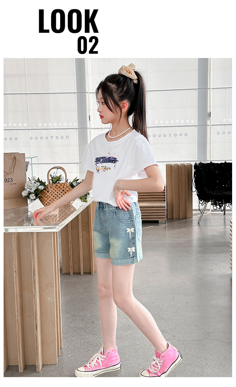 소녀 청바지 여름 2025 새로운 복장 여름 아동복 어린이 바지 어린이 큰 어린이 얇은 반바지 뜨거운 바지스토어 가기