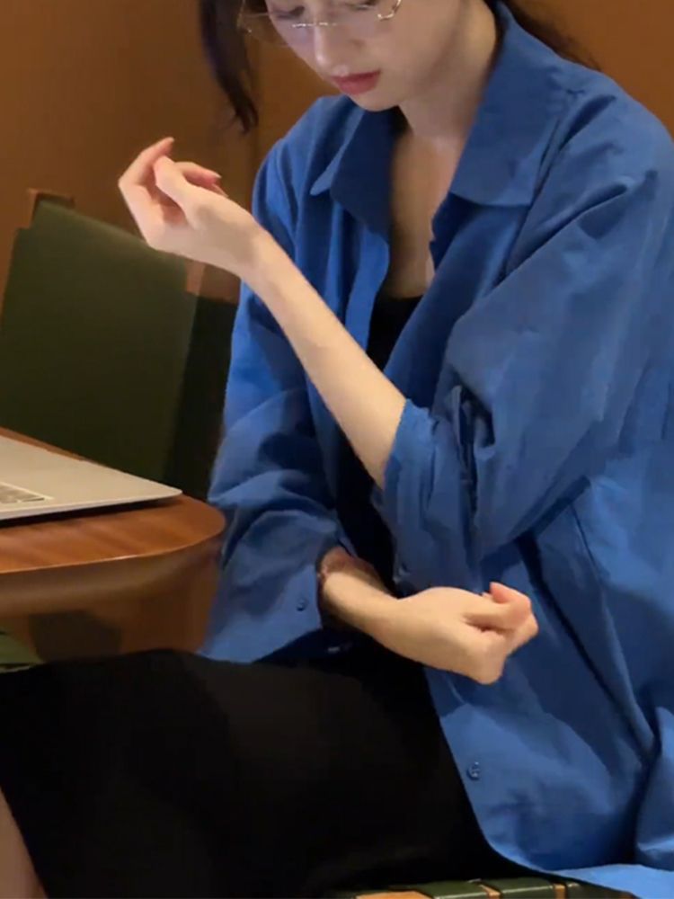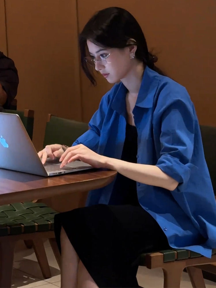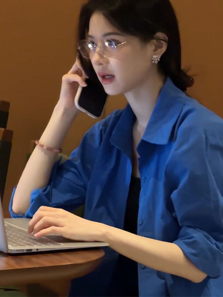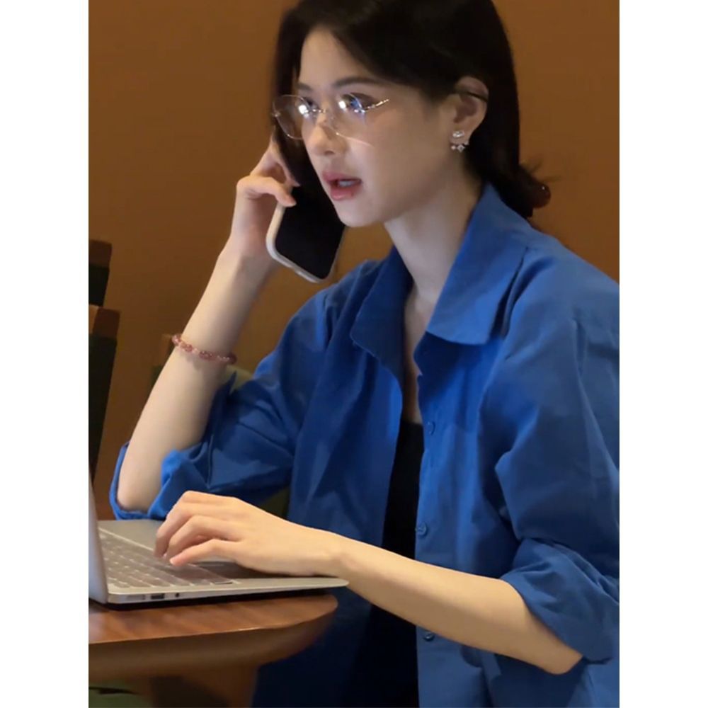 하이 엔드 클라인 블루 셔츠 블라우스 2025 새로운 봄과 가을 프랑스 스타일 여성 내부 스태킹 아우터 셔츠스토어 가기