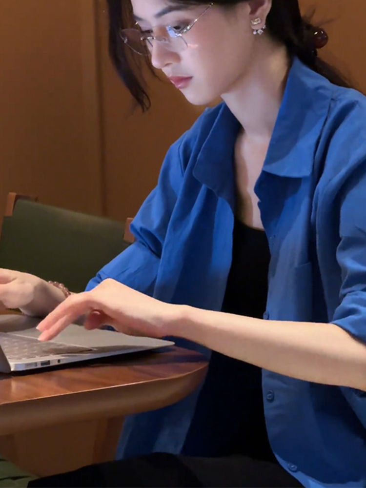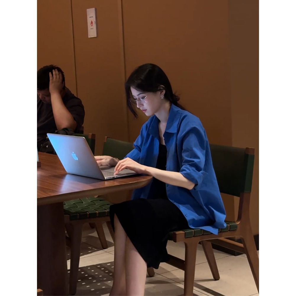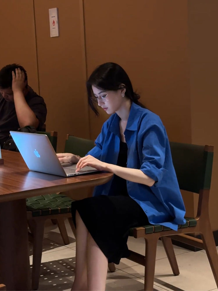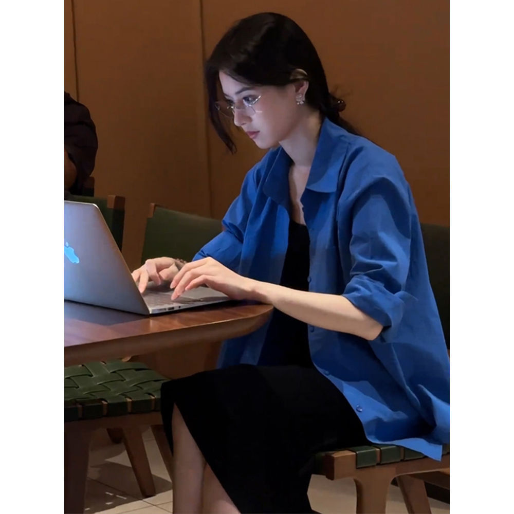 하이 엔드 클라인 블루 셔츠 블라우스 2025 새로운 봄과 가을 프랑스 스타일 여성 내부 스태킹 아우터 셔츠스토어 가기