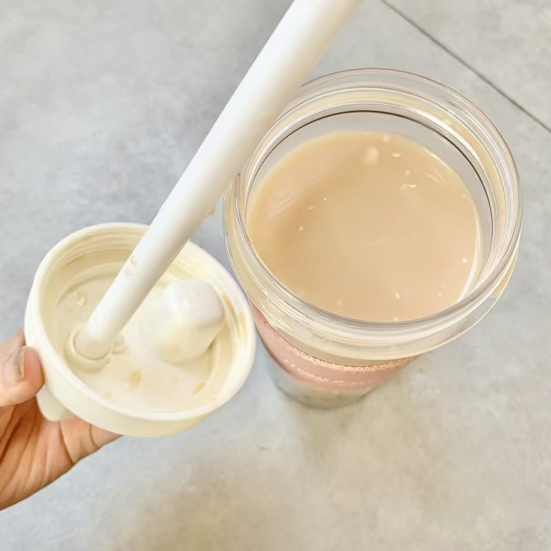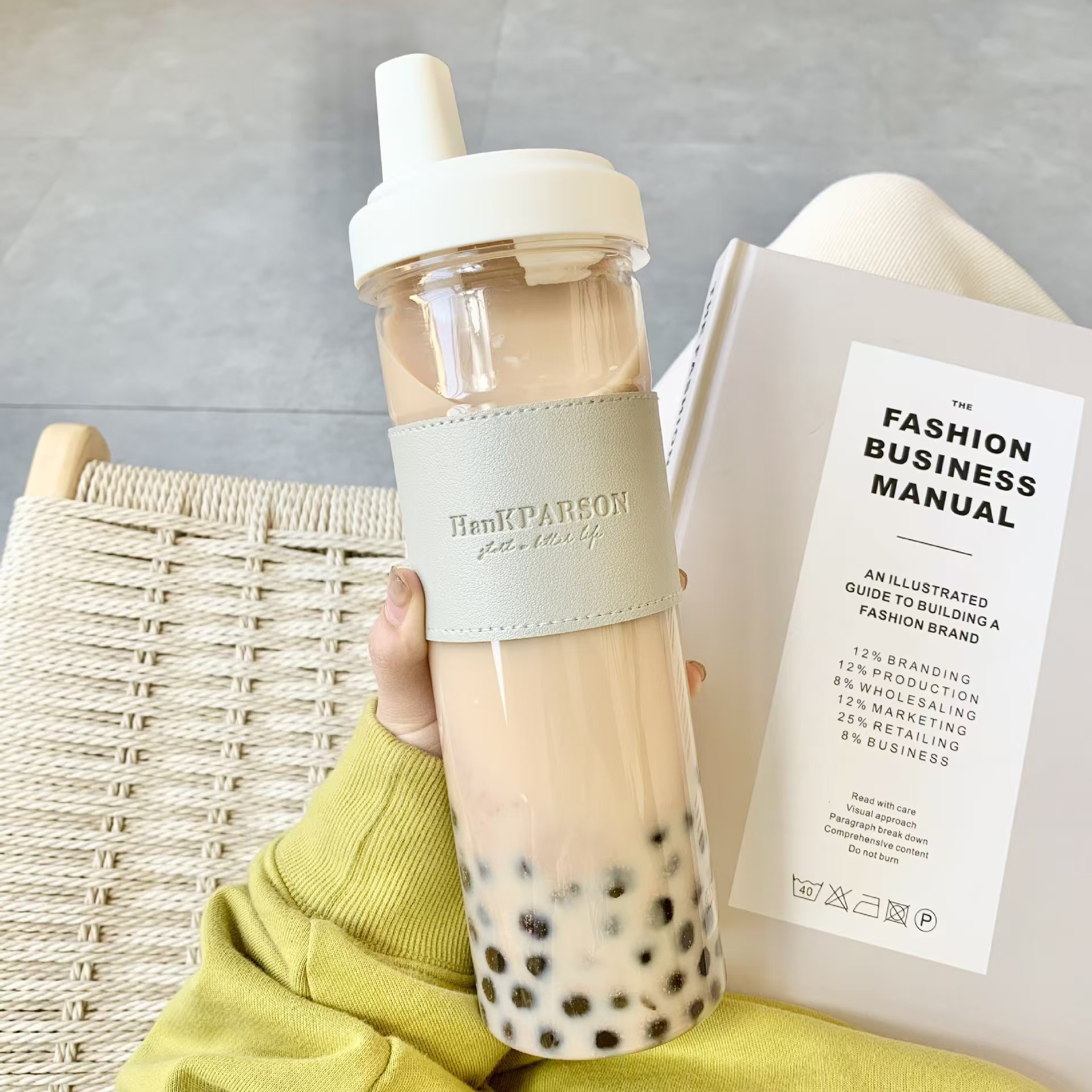빨대가 달린 밀크티 컵, 간편하고 휴대성이 뛰어나며 진주 흡입, 큰 입자, 고급스러운 대용량 컵, 단열재 및 가죽 커버