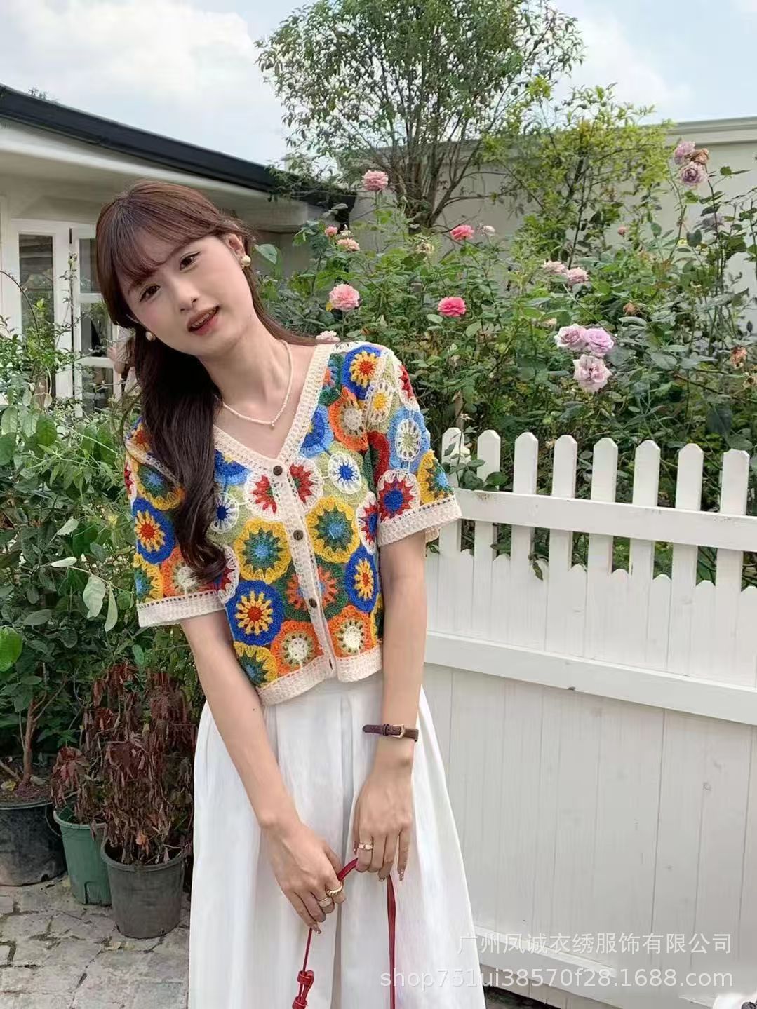 여름 여성을 위한 프렌치 레트로 중공 크로셰 반팔 스웨터 새로운 스타일의 브이넥 디자인 틈새 시크 스웨터 트렌디스토어 가기