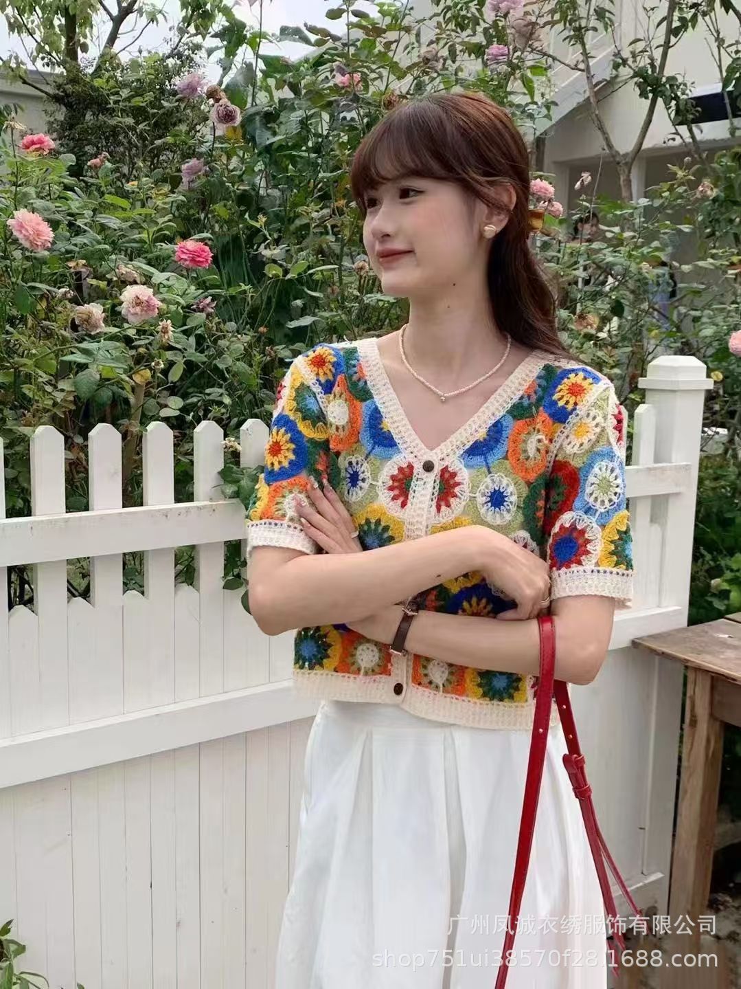 여름 여성을 위한 프렌치 레트로 중공 크로셰 반팔 스웨터 새로운 스타일의 브이넥 디자인 틈새 시크 스웨터 트렌디