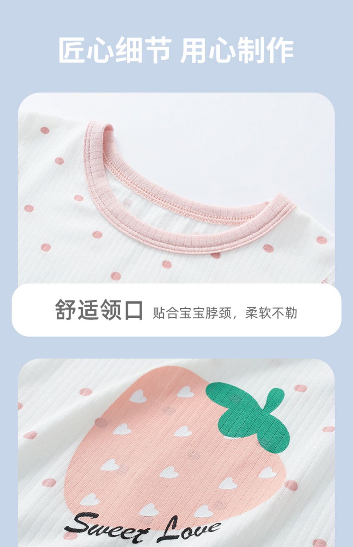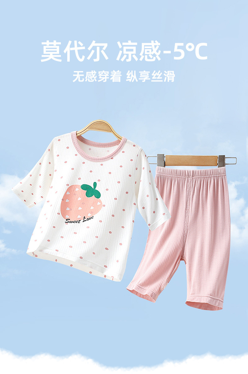 베이비 모달 잠옷, 아이스 실크 슈트, 7부 반팔 여름 베이비 얇은 홈웨어, 여아 스플릿 여름 드레스