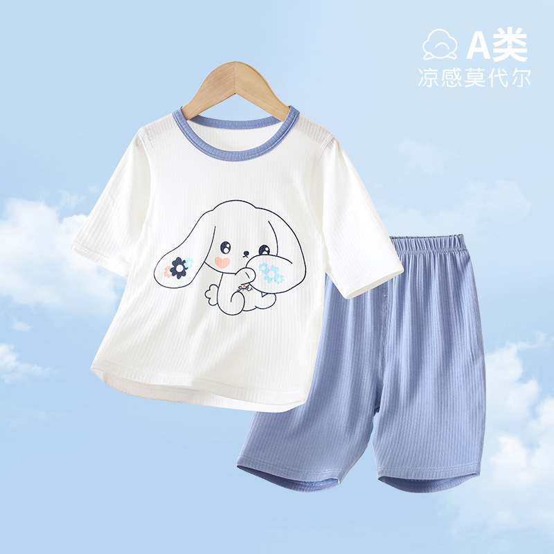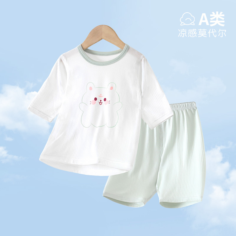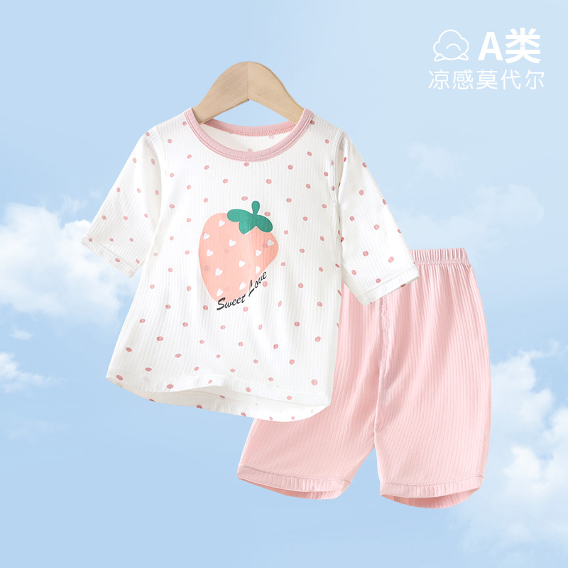 베이비 모달 잠옷, 아이스 실크 슈트, 7부 반팔 여름 베이비 얇은 홈웨어, 여아 스플릿 여름 드레스스토어 가기