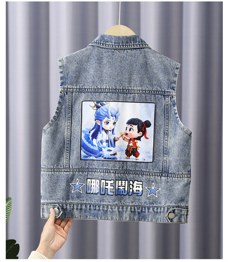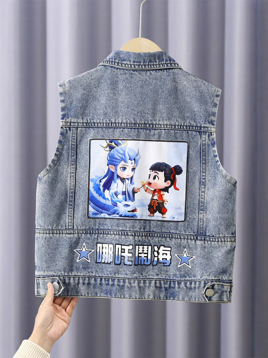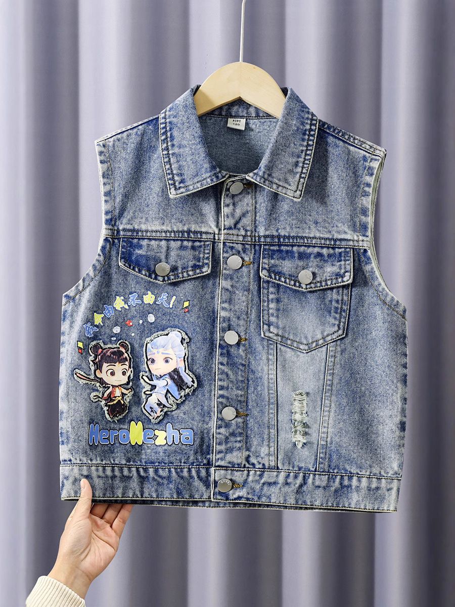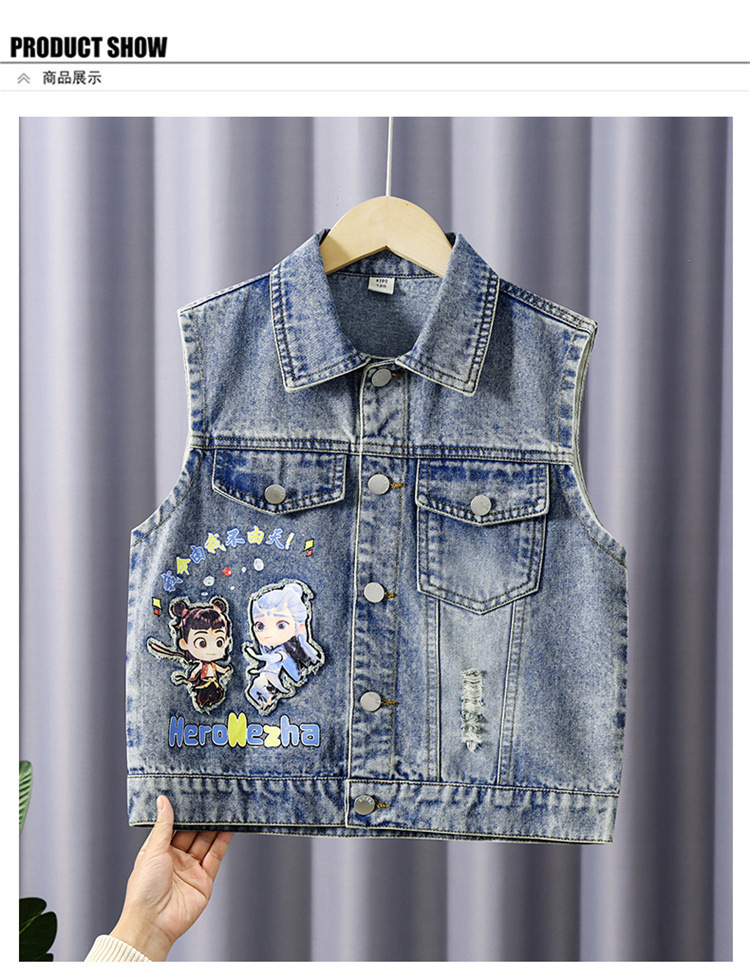 소년 데님 조끼 2025 새로운 Nezha 한국 스타일 외국 스타일 아동복 봄, 가을 Nezha Haoma 조끼 조끼 겉옷