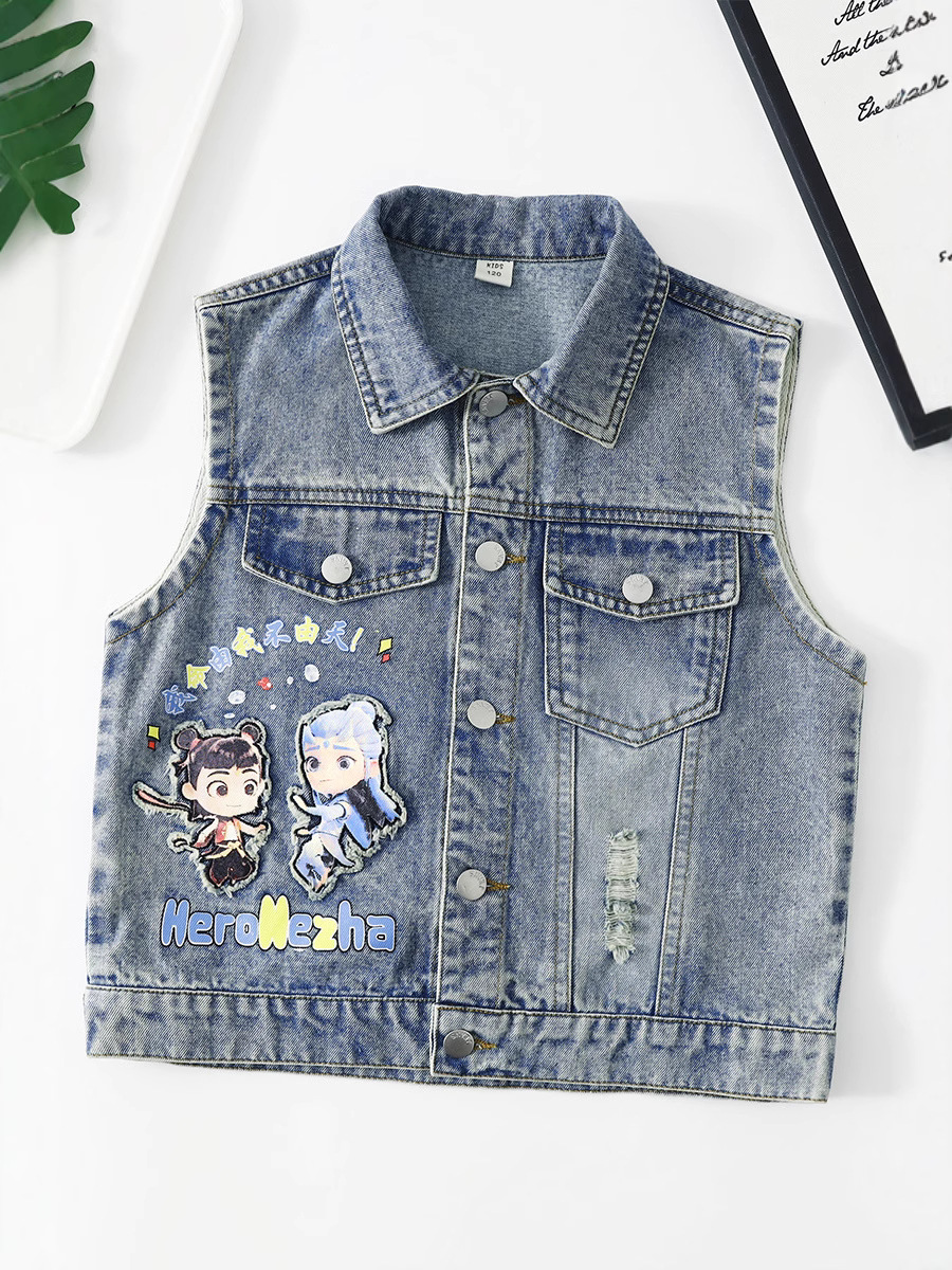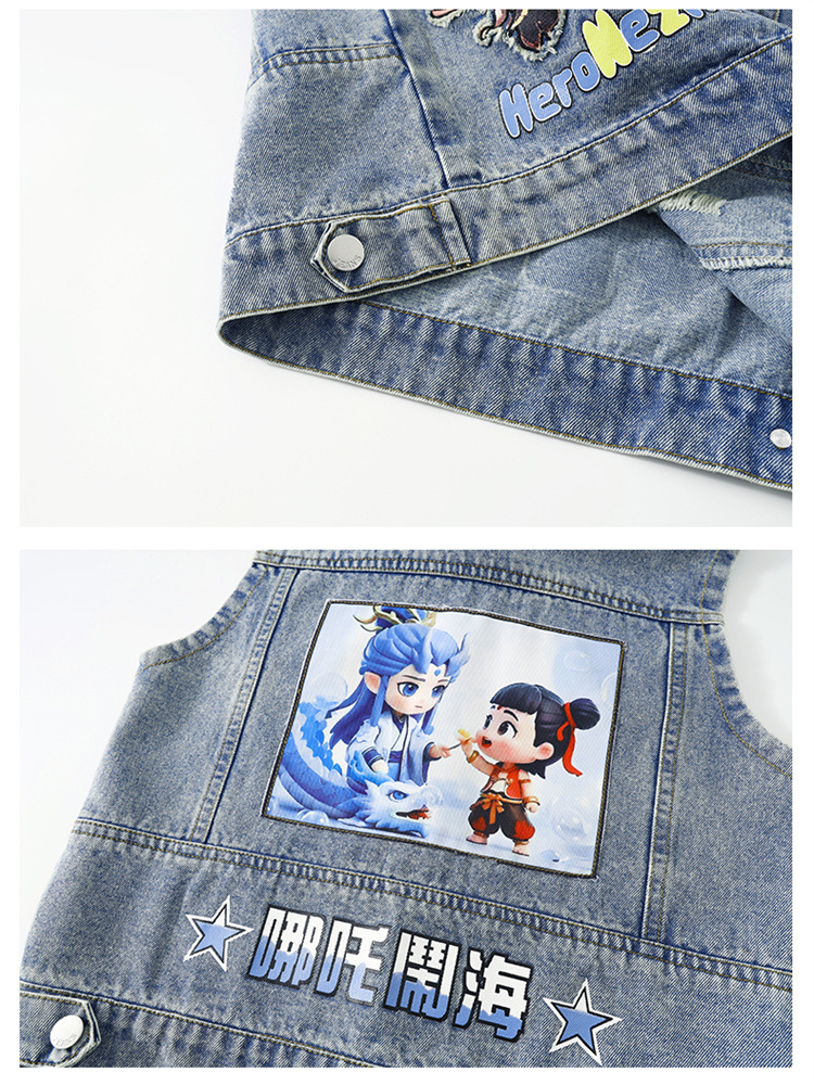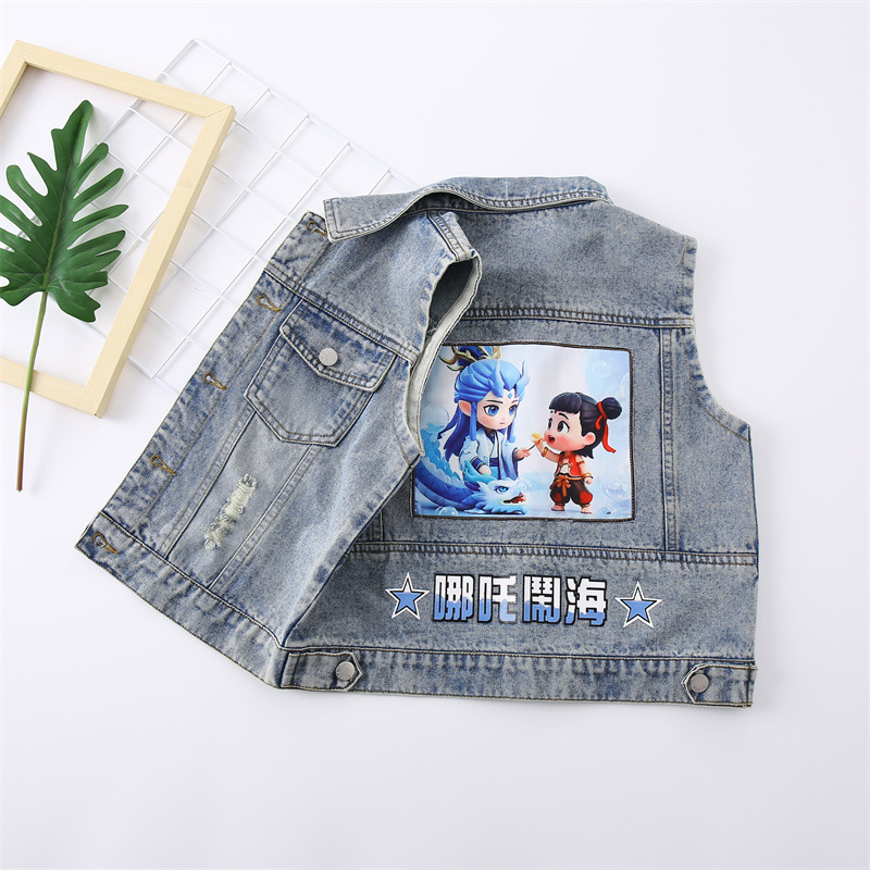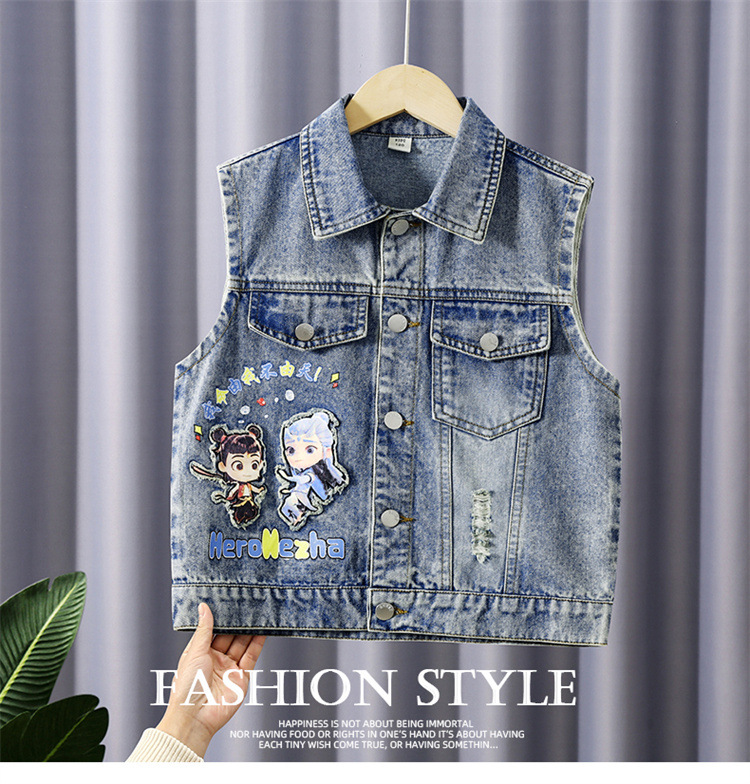 소년 데님 조끼 2025 새로운 Nezha 한국 스타일 외국 스타일 아동복 봄, 가을 Nezha Haoma 조끼 조끼 겉옷