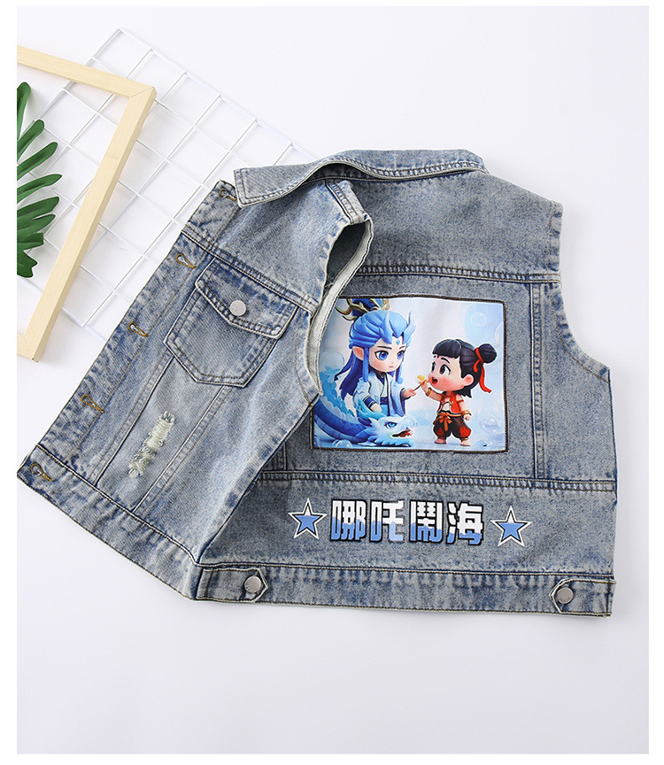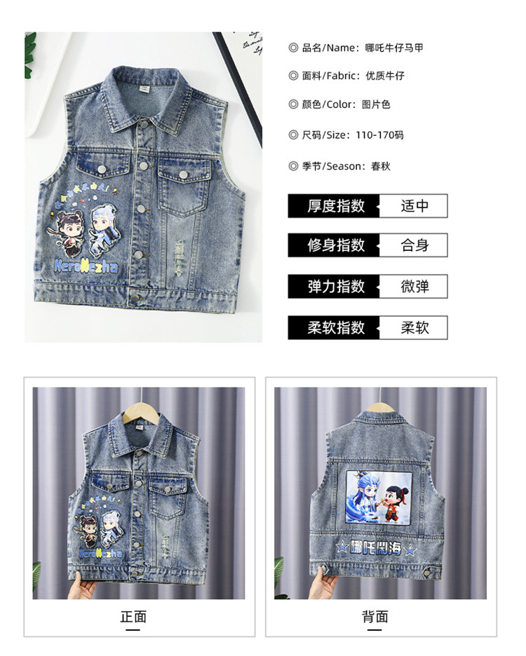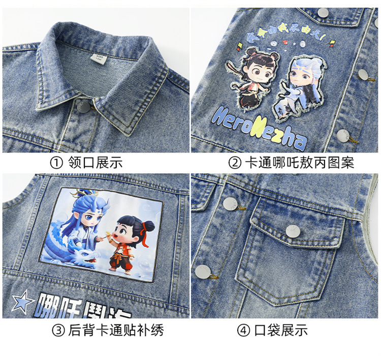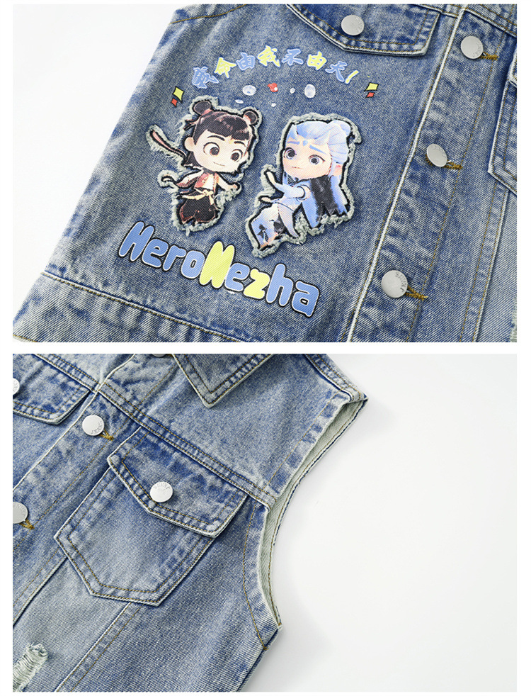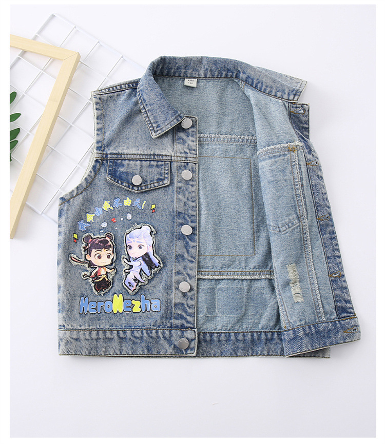 소년 데님 조끼 2025 새로운 Nezha 한국 스타일 외국 스타일 아동복 봄, 가을 Nezha Haoma 조끼 조끼 겉옷스토어 가기