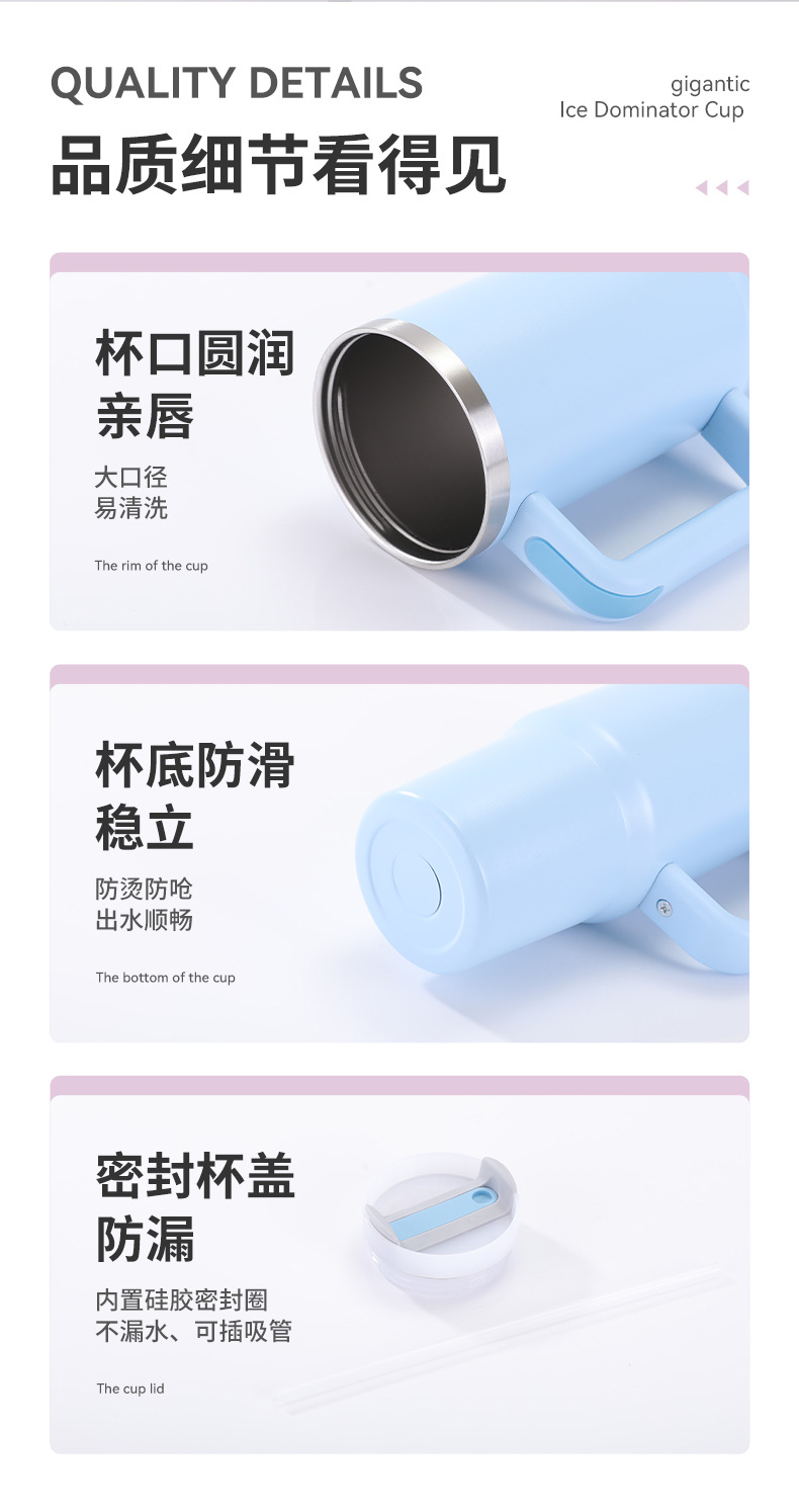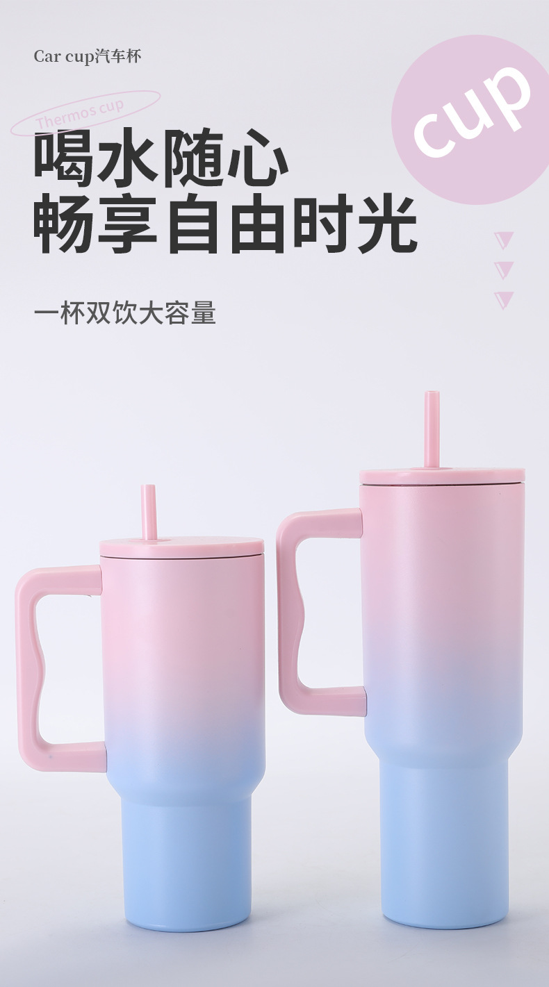 국경 간 3 세대 40oz 스테인레스 스틸 보온병 컵 핸들 빨대 빅 맥 아이스 컵 야외 자동차 컵