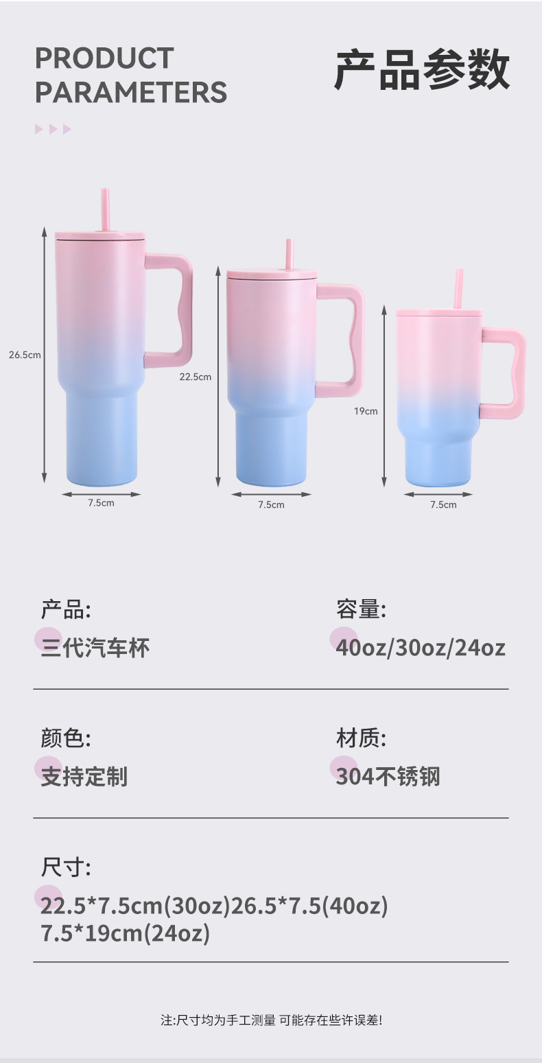 국경 간 3 세대 40oz 스테인레스 스틸 보온병 컵 핸들 빨대 빅 맥 아이스 컵 야외 자동차 컵스토어 가기