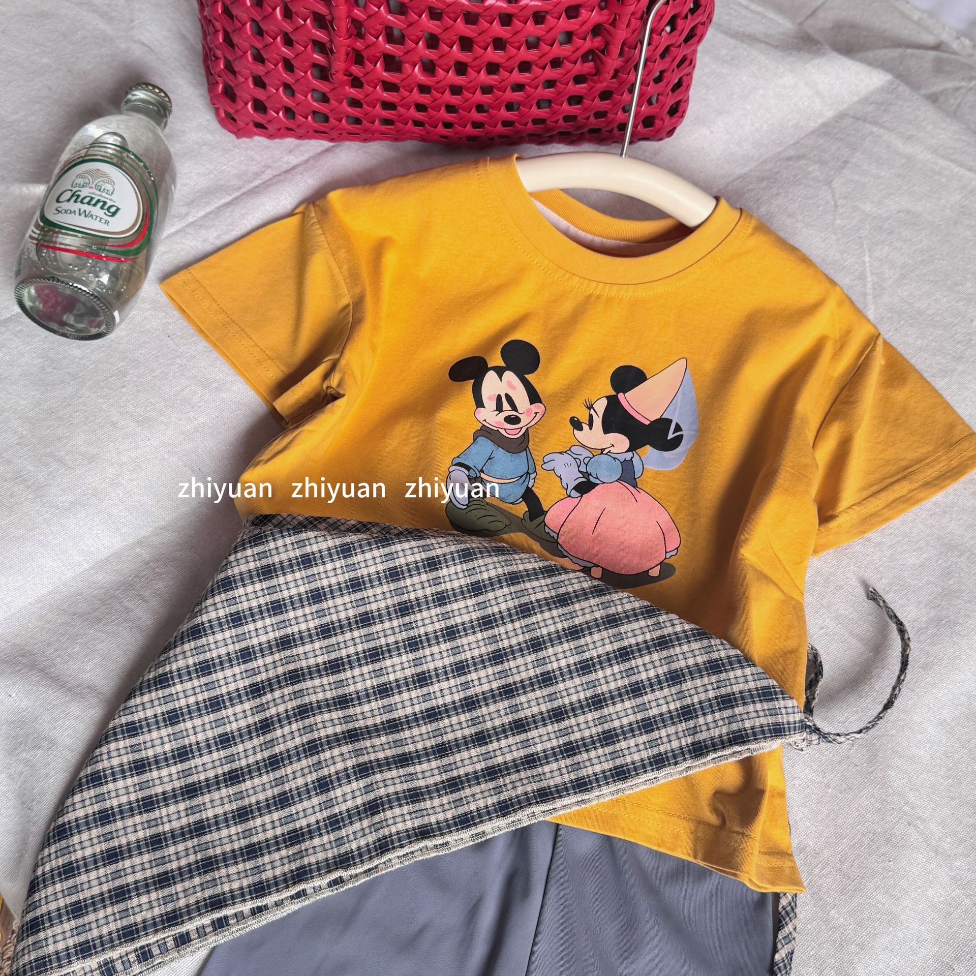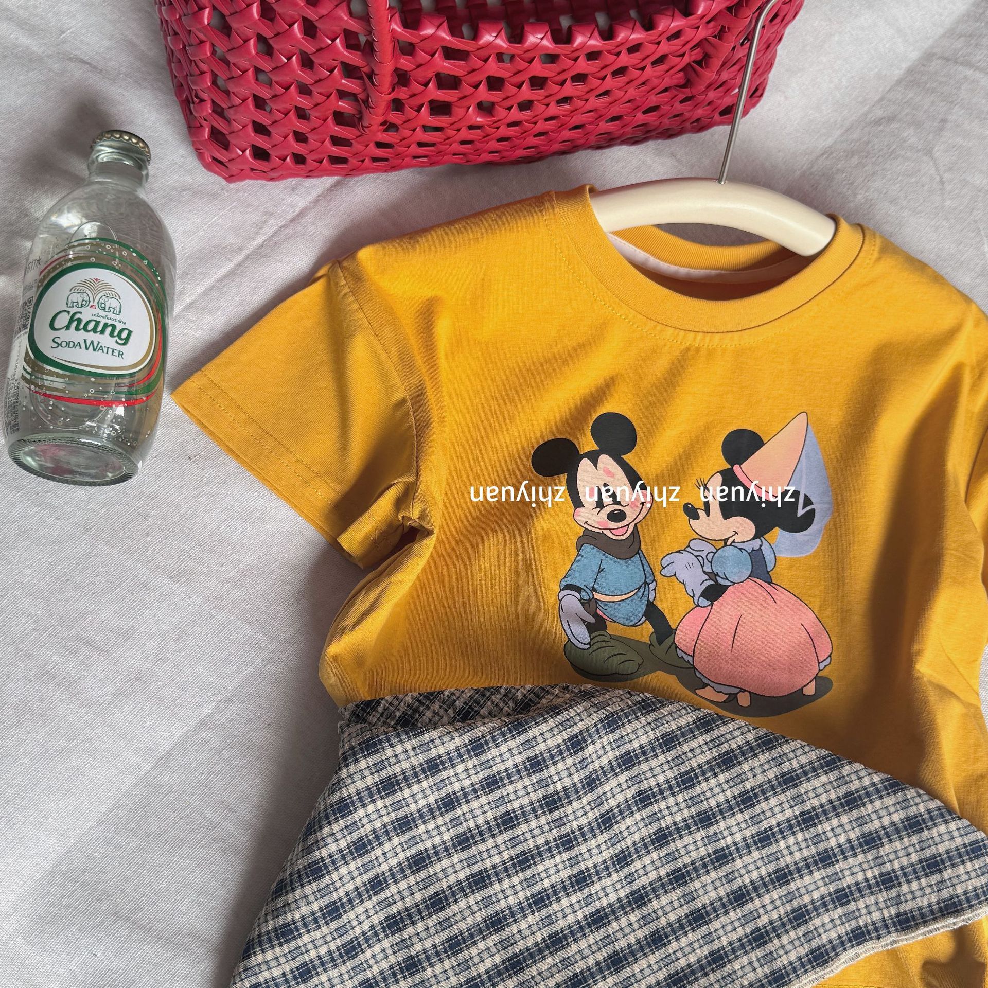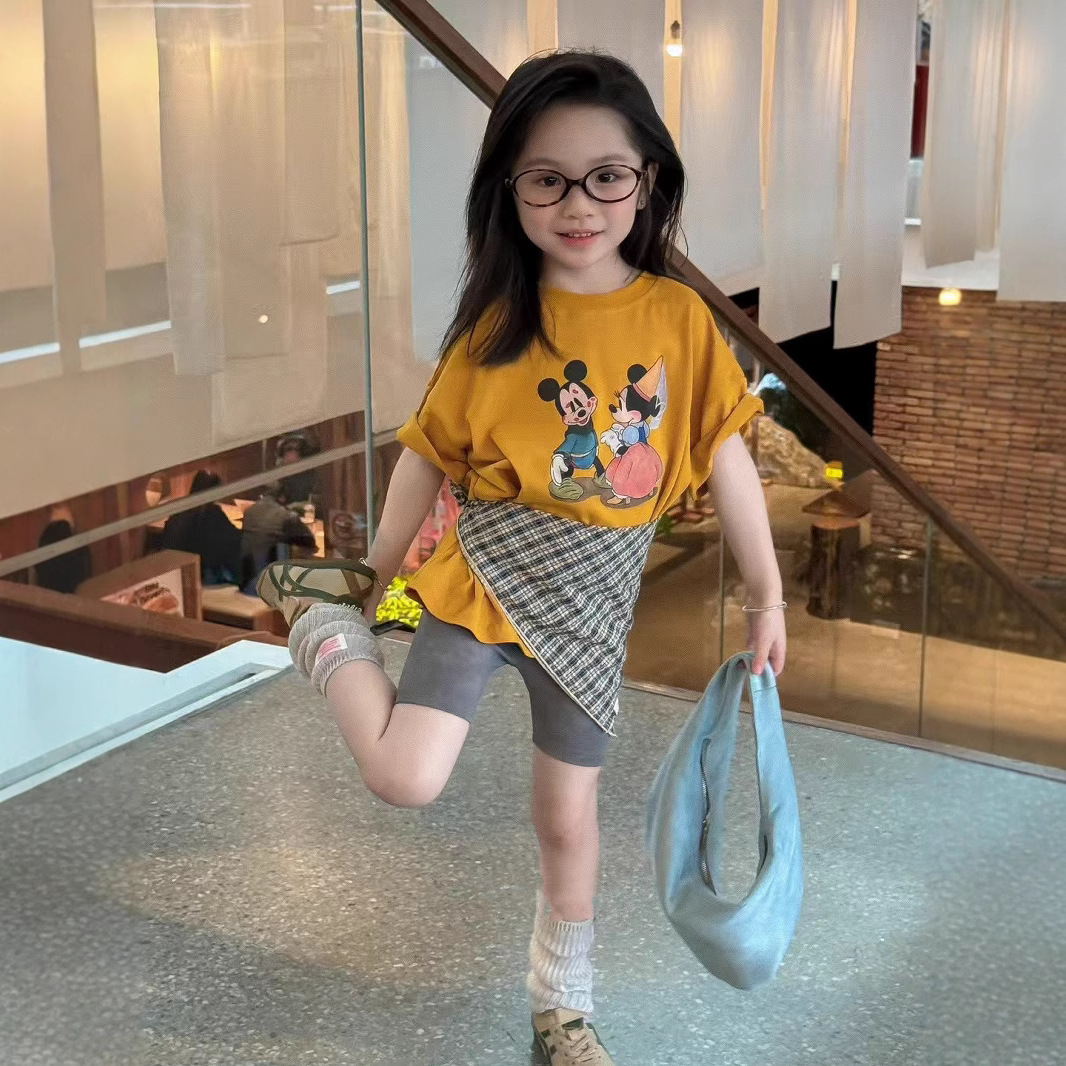 소녀 여름 원피스 만화 티셔츠 어린이 어린이 서양식 인쇄 둥근 목 면 반소매 반소매 아동복스토어 가기