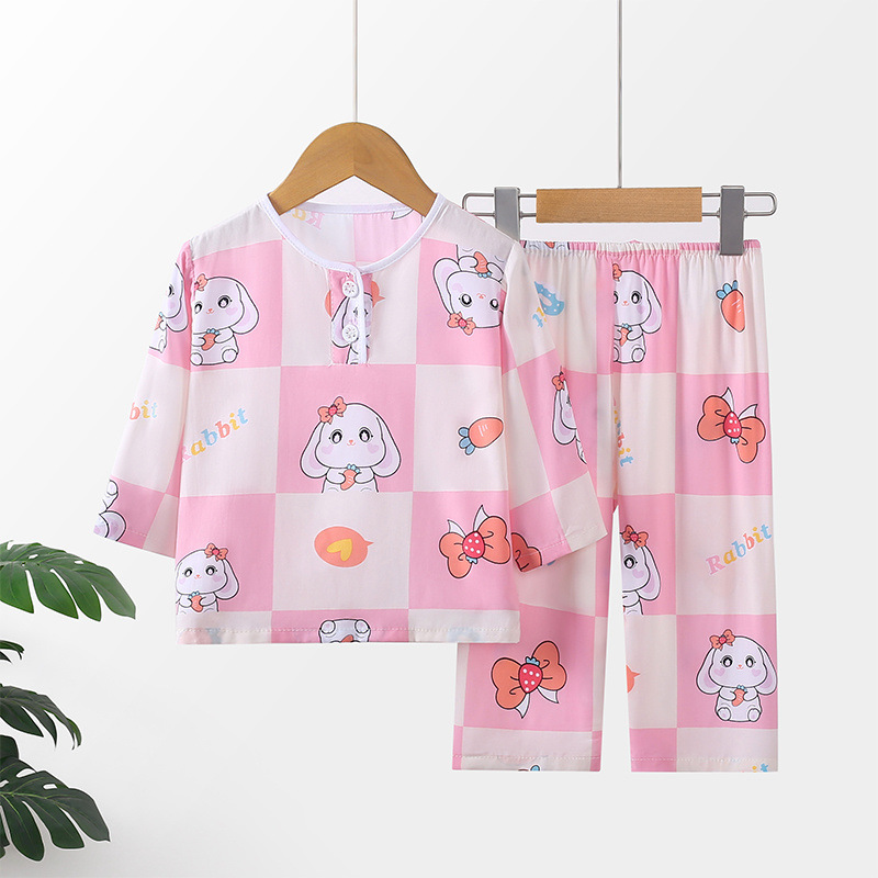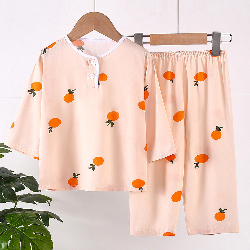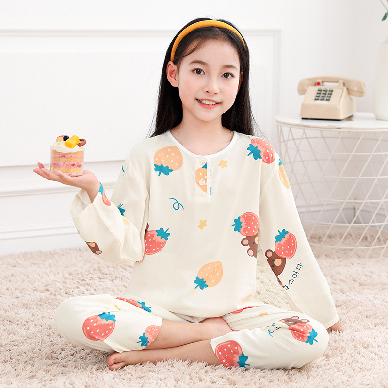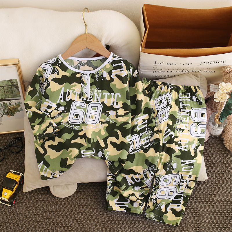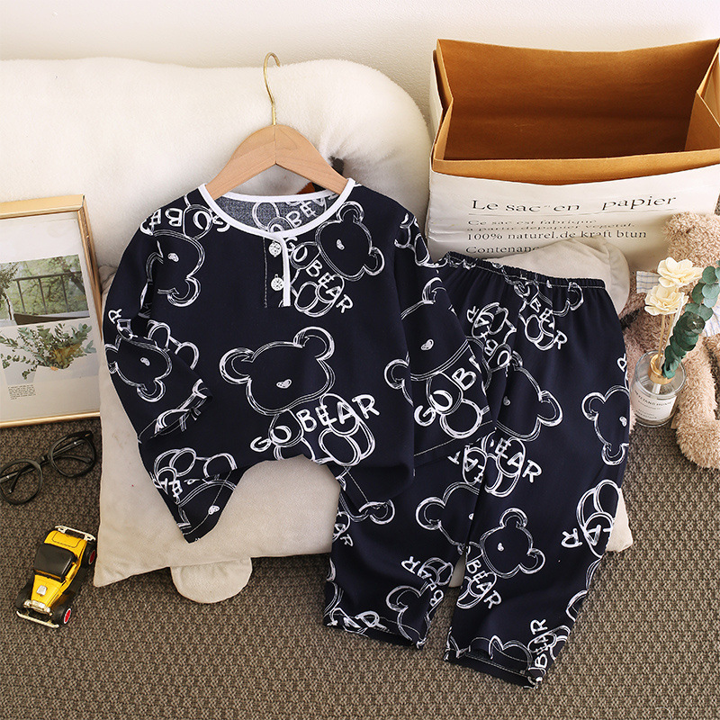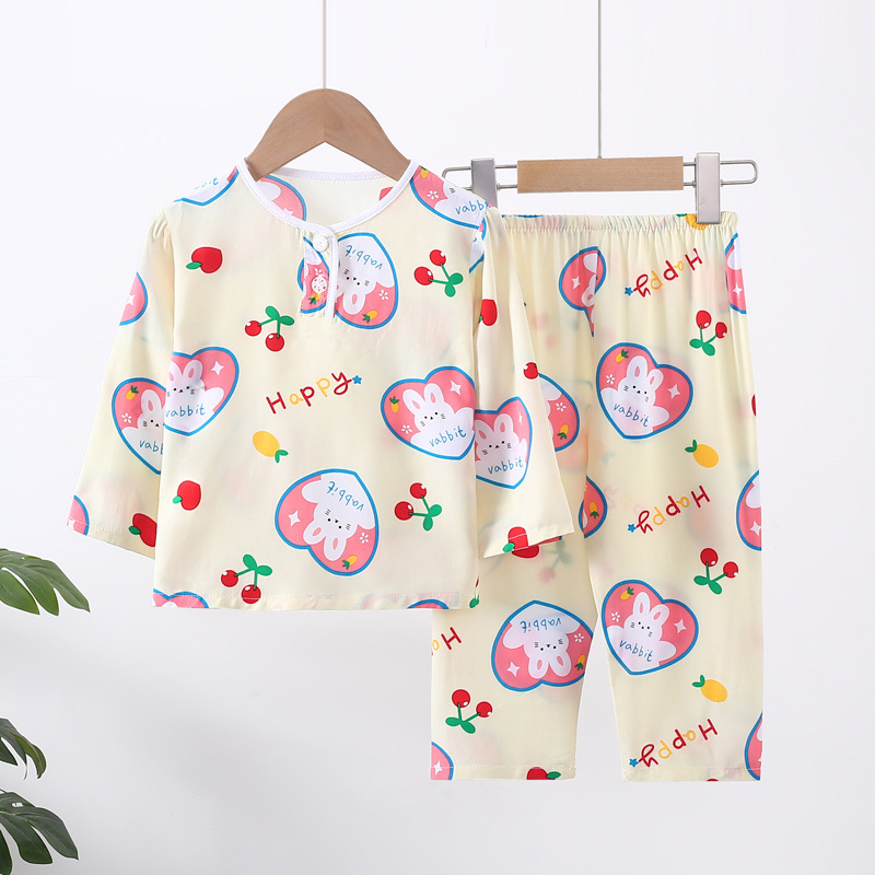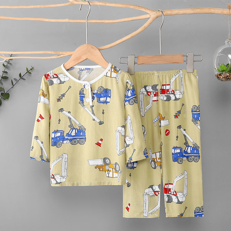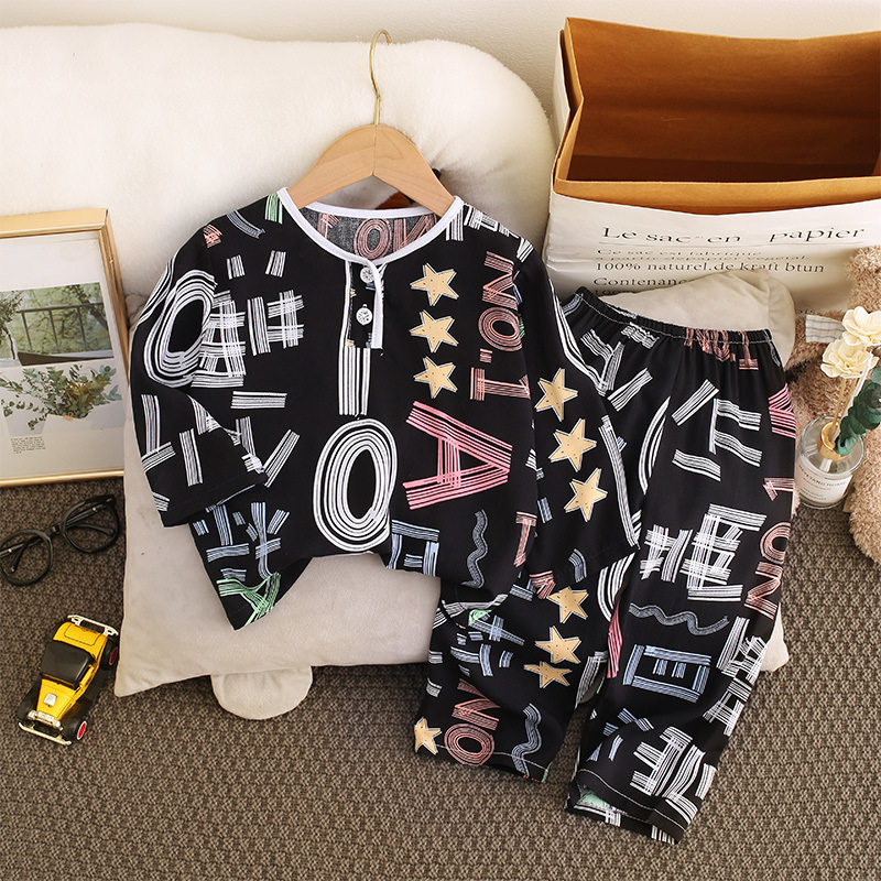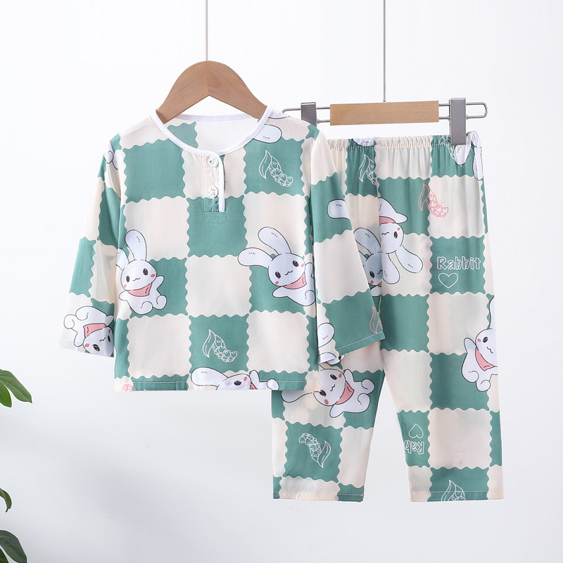 소년과 소녀를위한 여름 어린이 면화 실크 잠옷 아기 면화 실크 긴팔 여름 얇은 에어컨 옷 가정 의류 세트스토어 가기