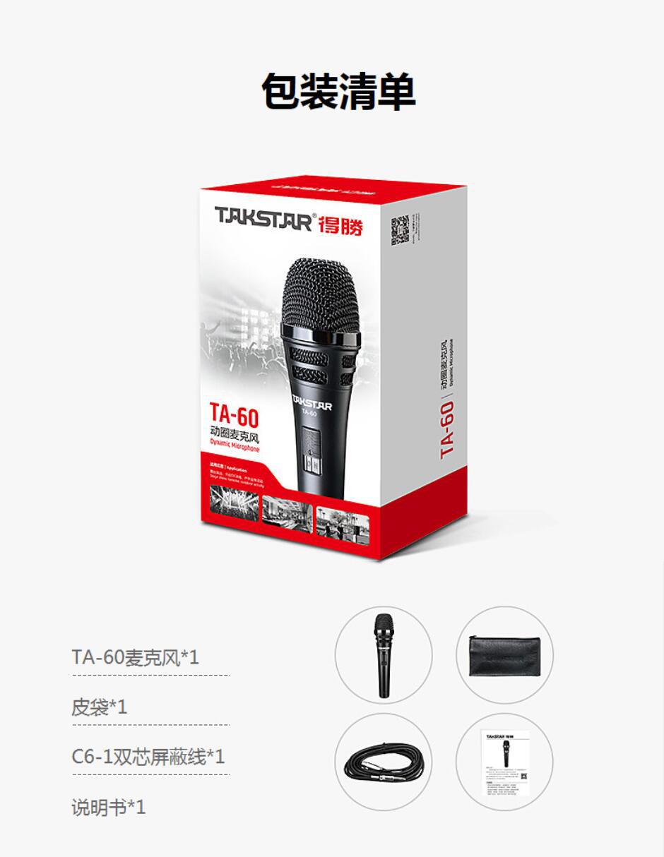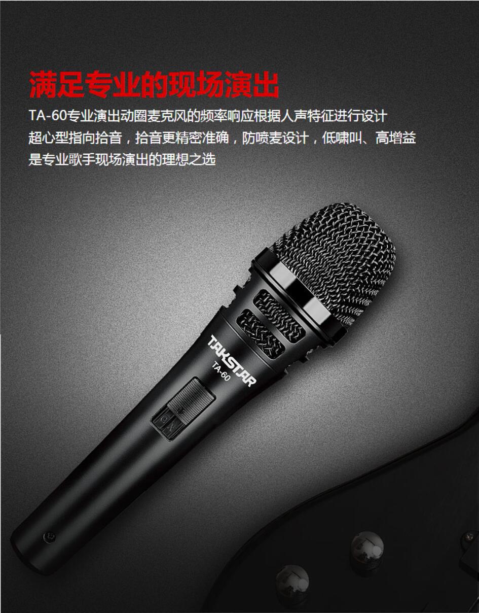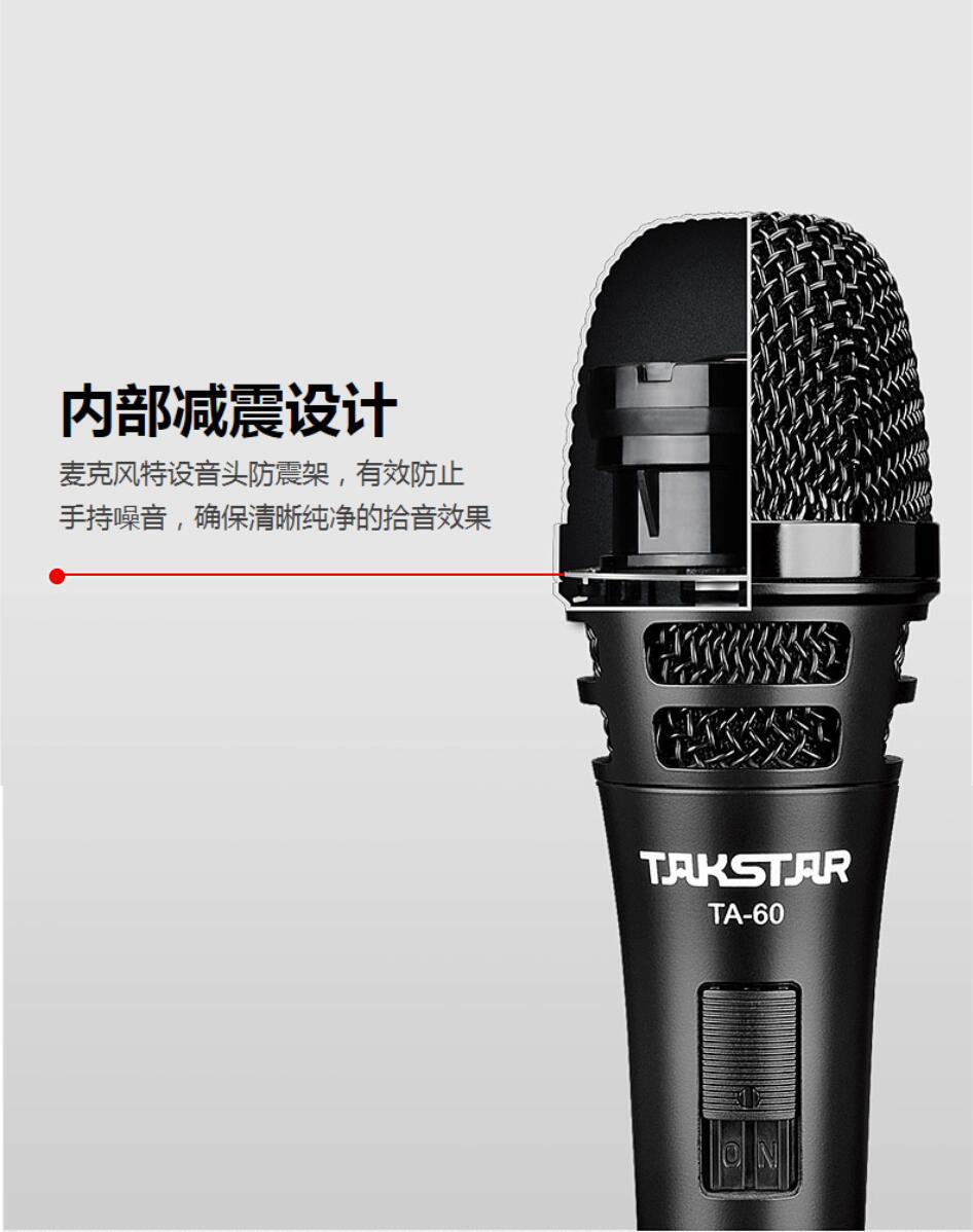Takstar TA-60 다이나믹 마이크 유선 마이크 휴대용 기타 연주 및 노래 전문 야외 라이브 사운드 카드
